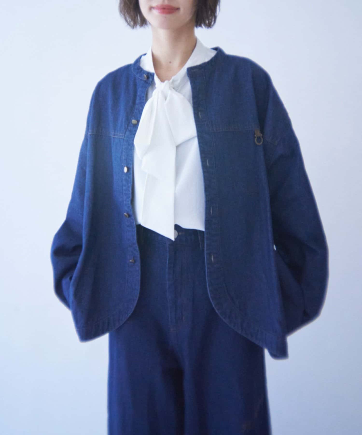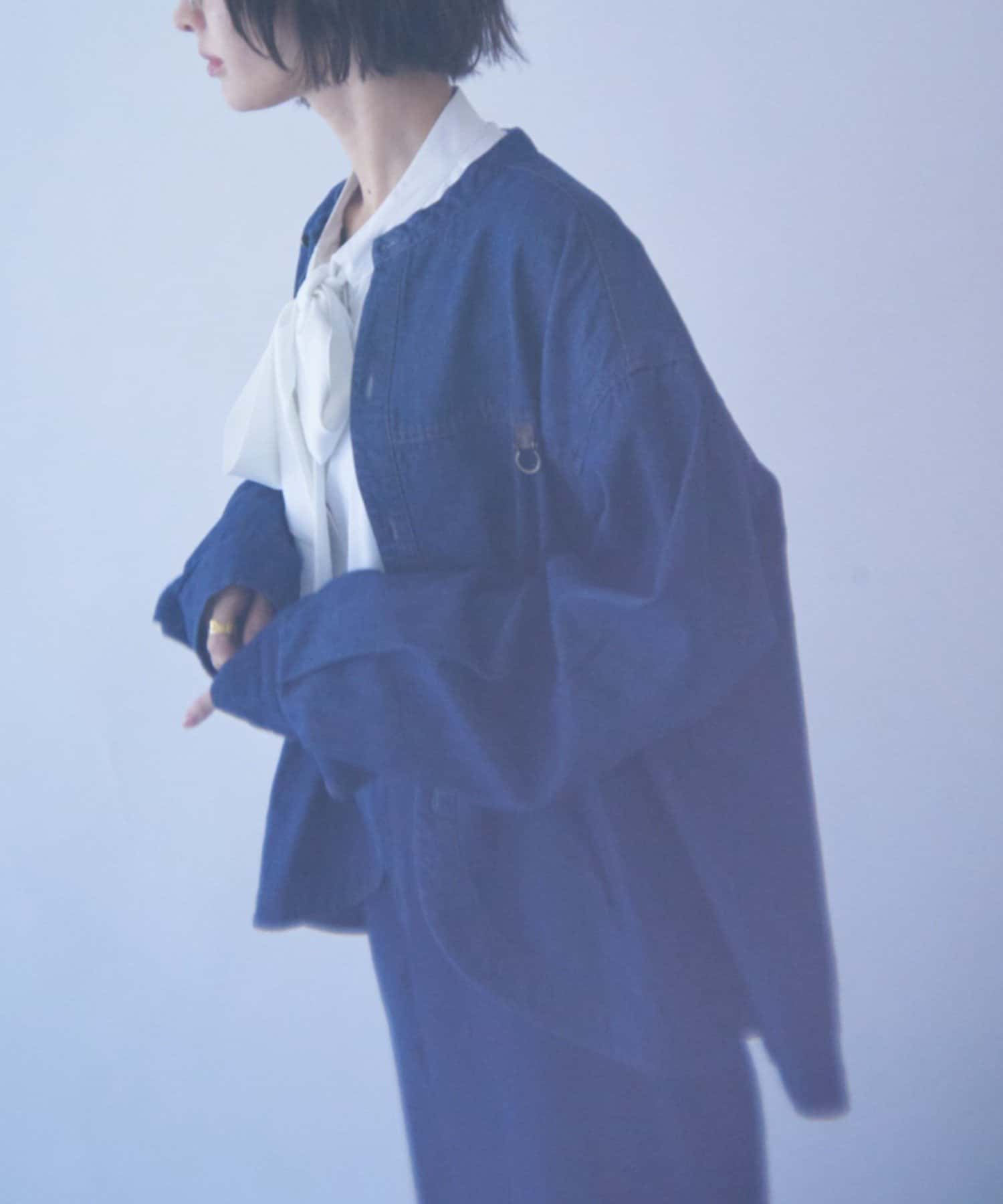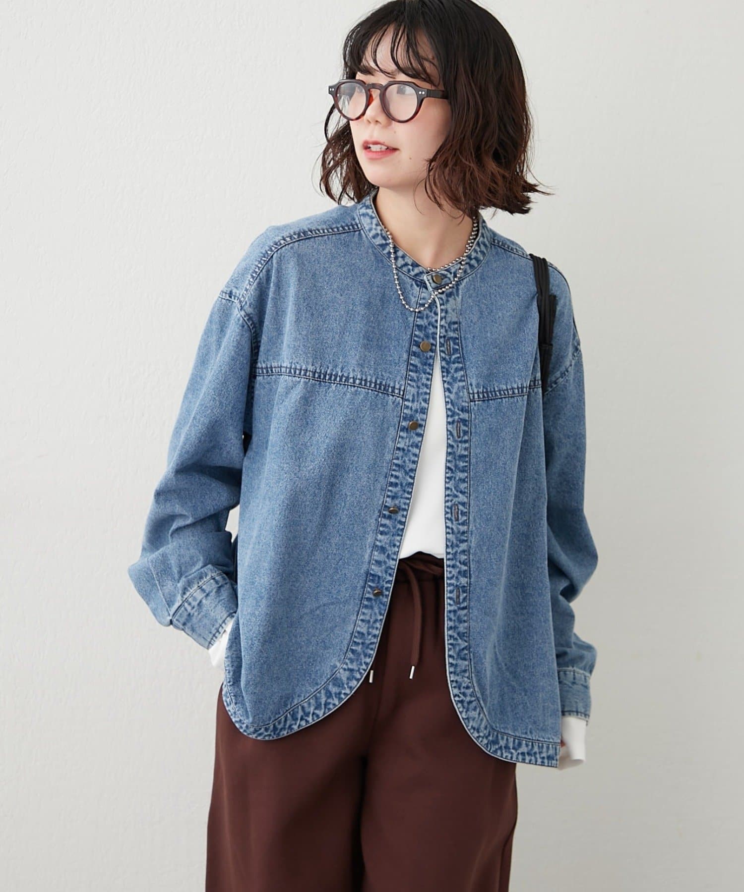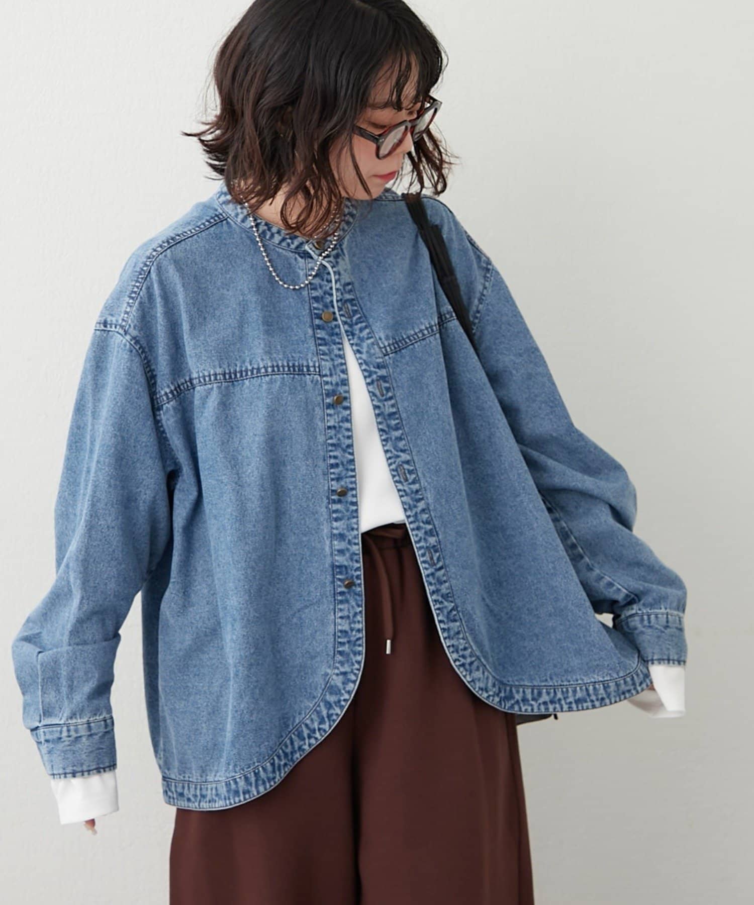 【NUNIFE】ノーカラーデニムシャツジャケット