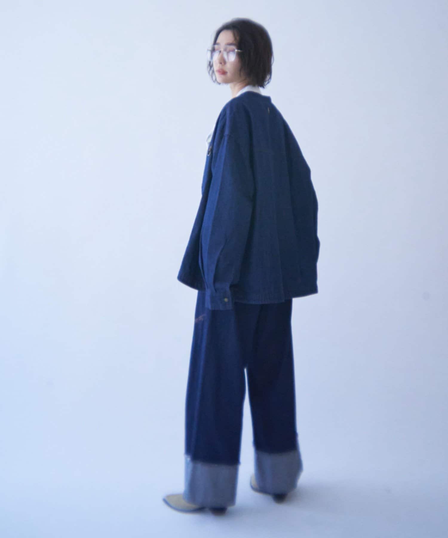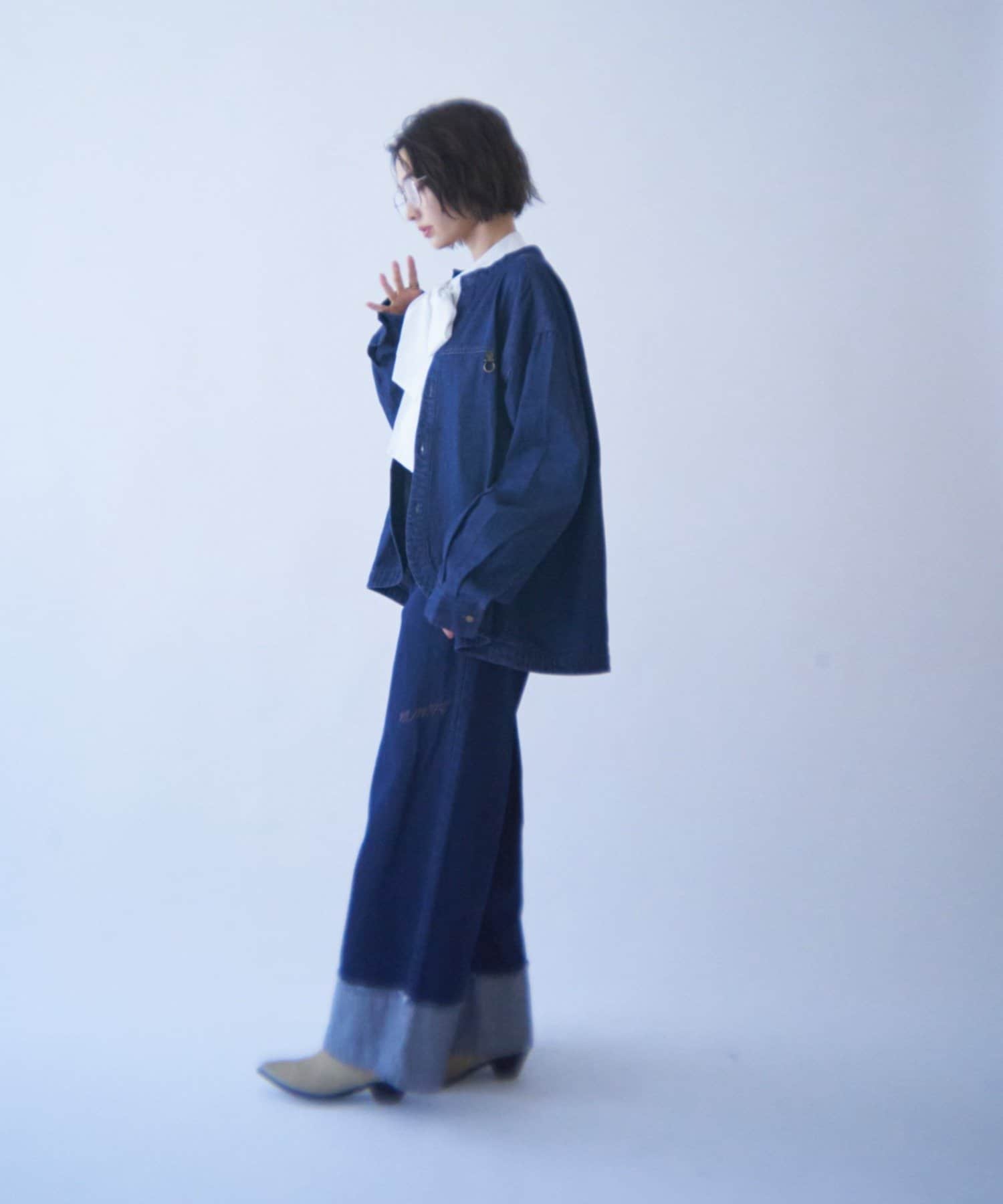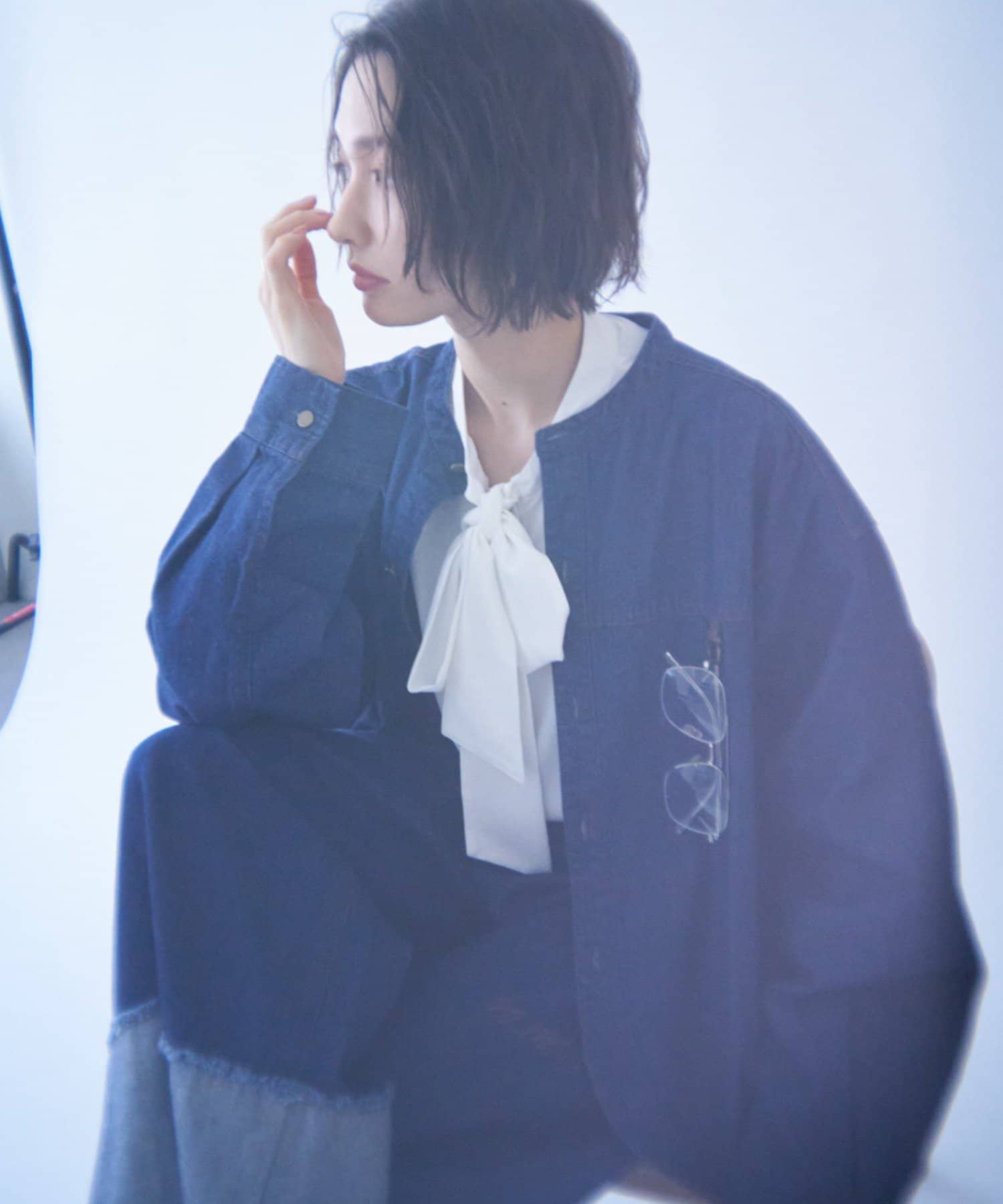 【NUNIFE】ノーカラーデニムシャツジャケット