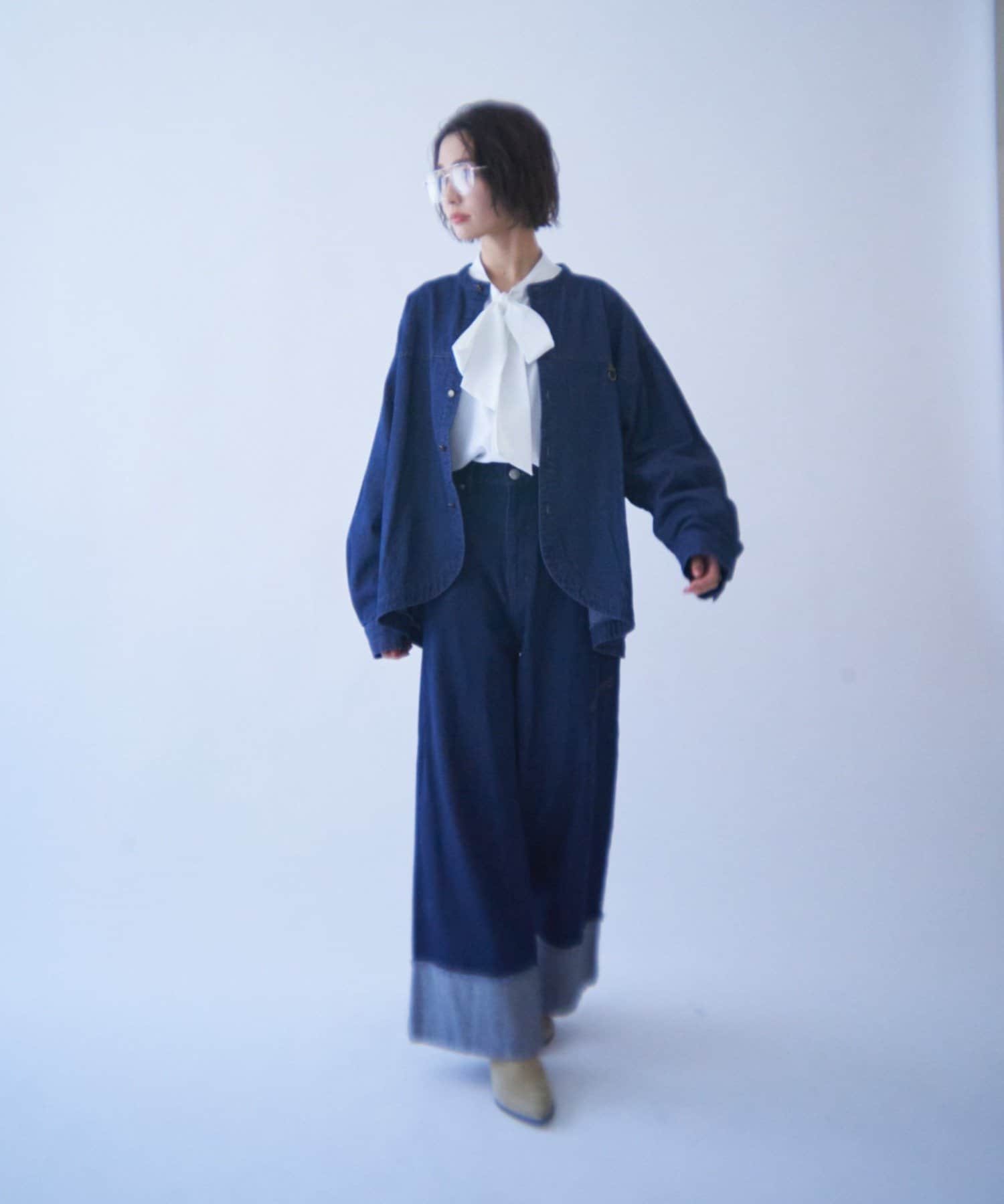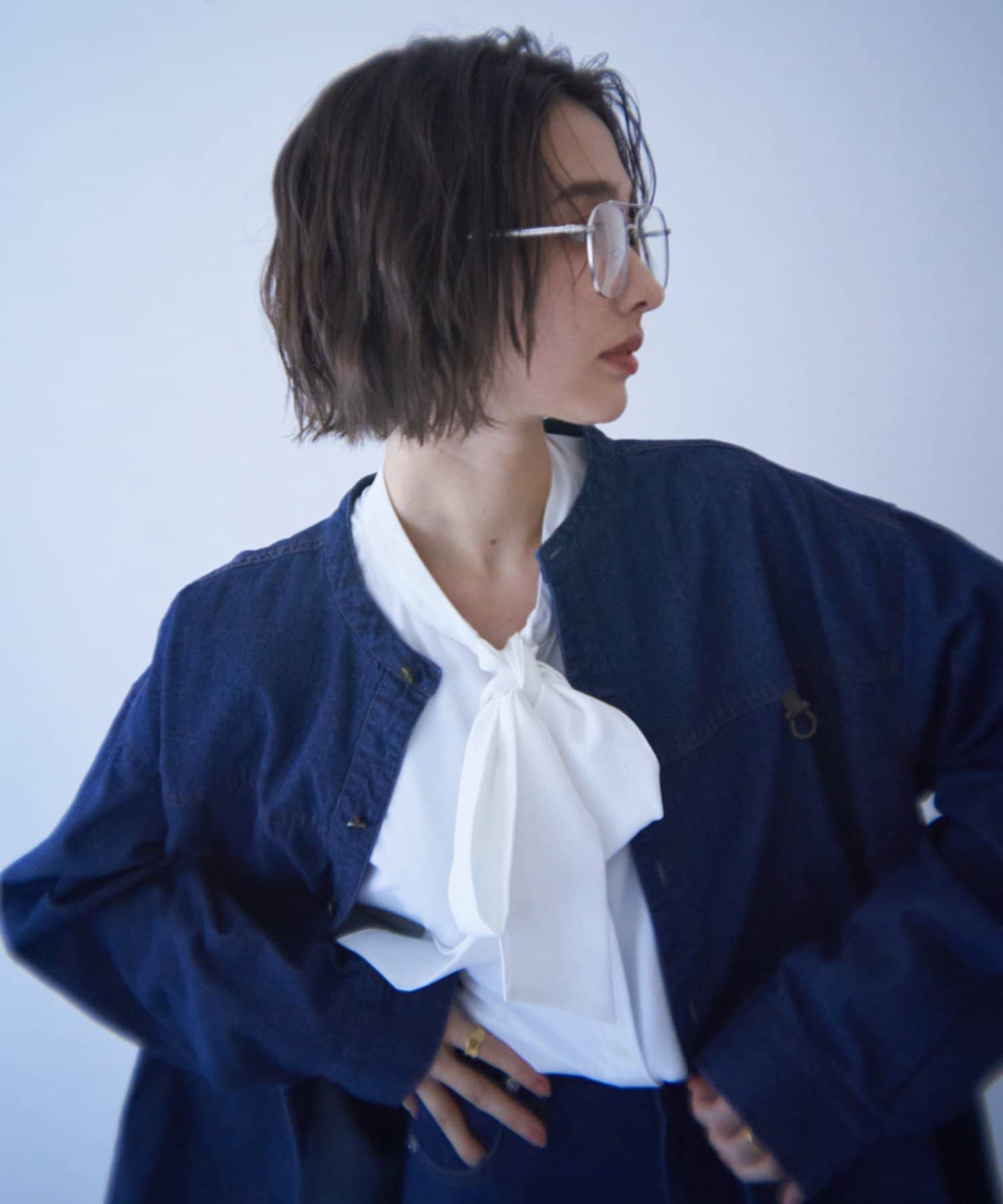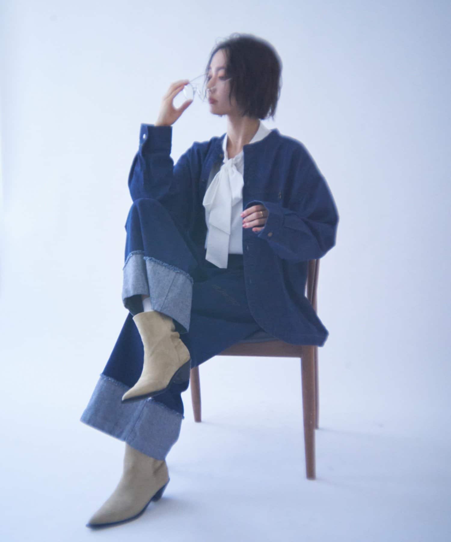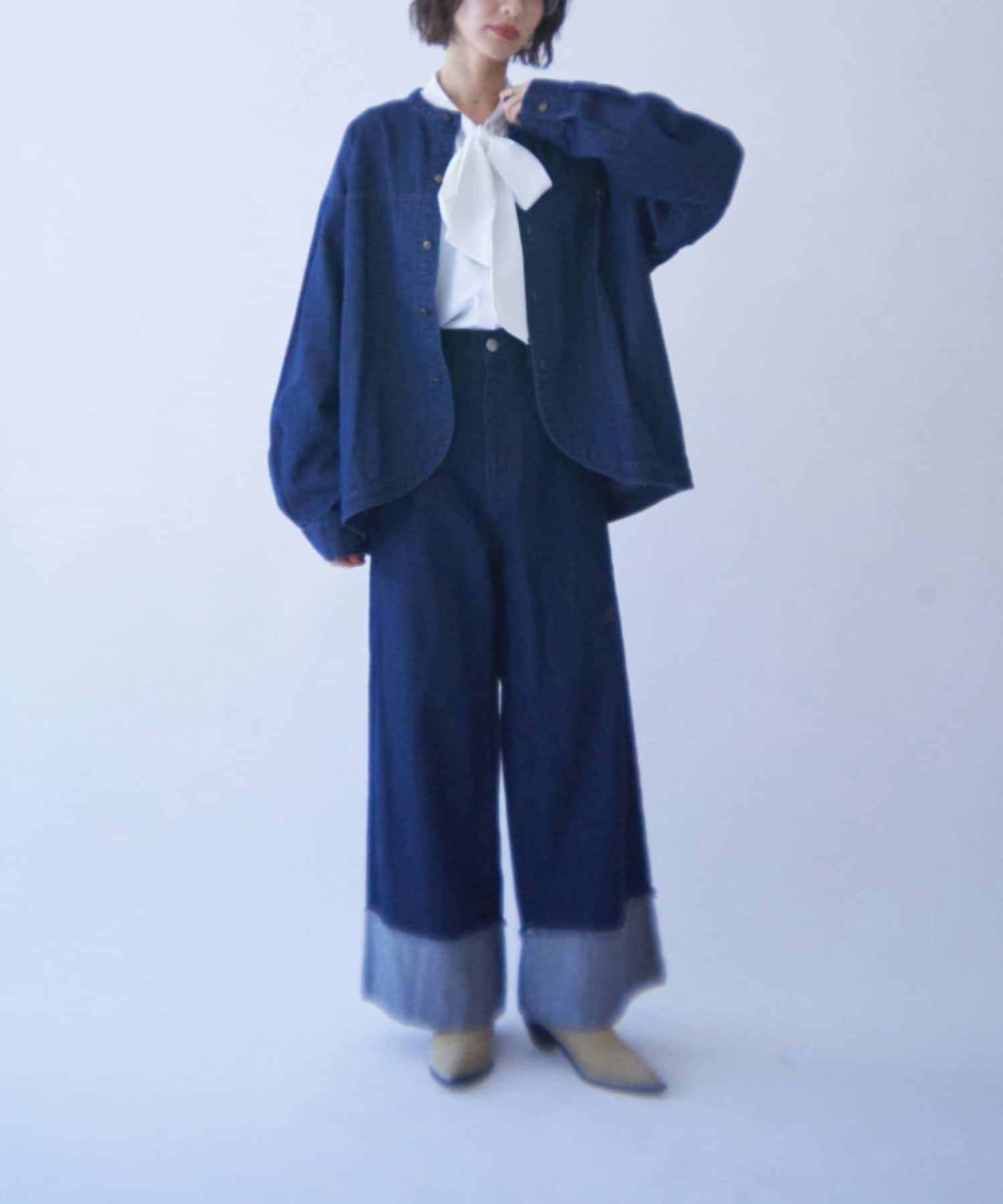 【NUNIFE】ノーカラーデニムシャツジャケット