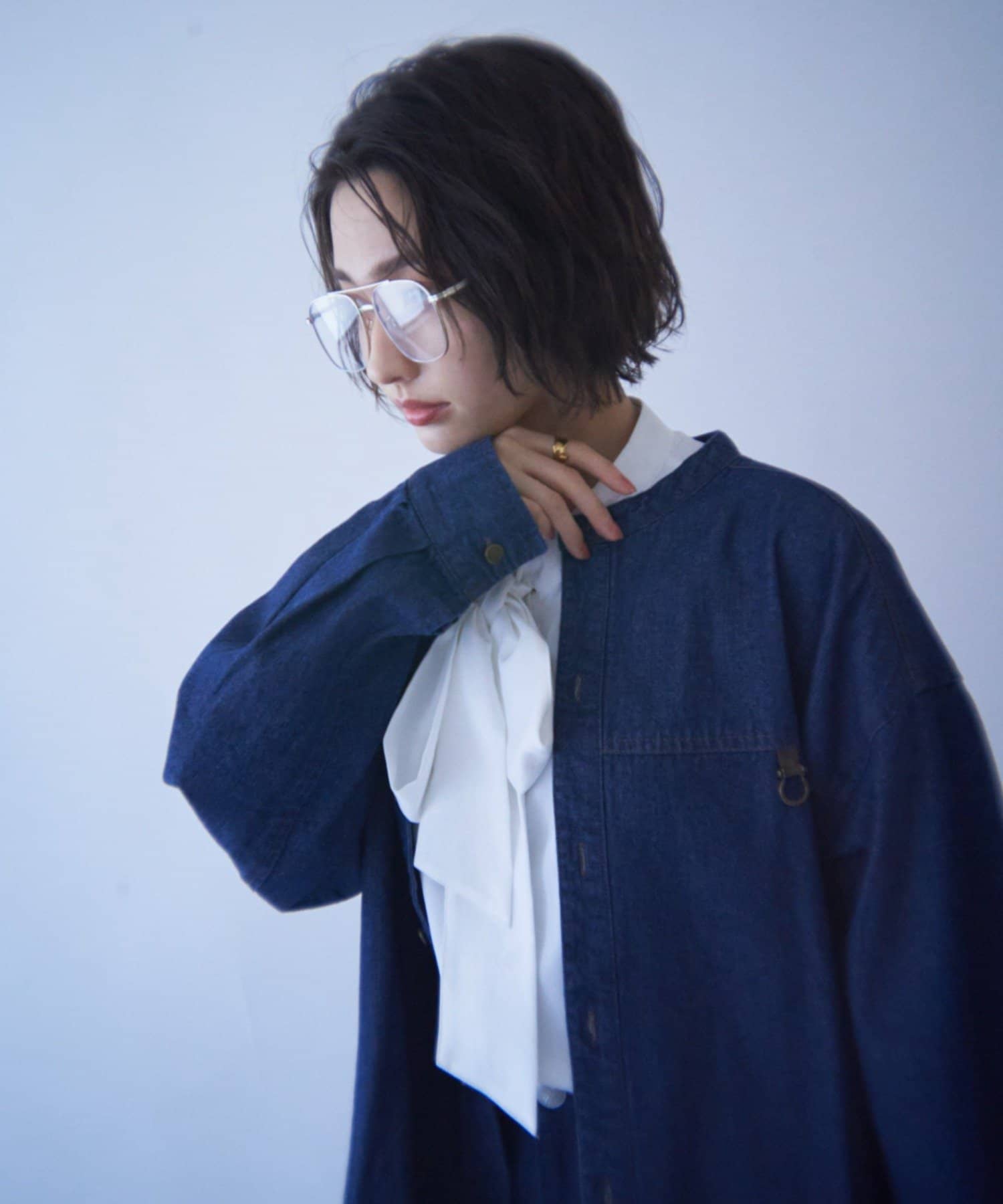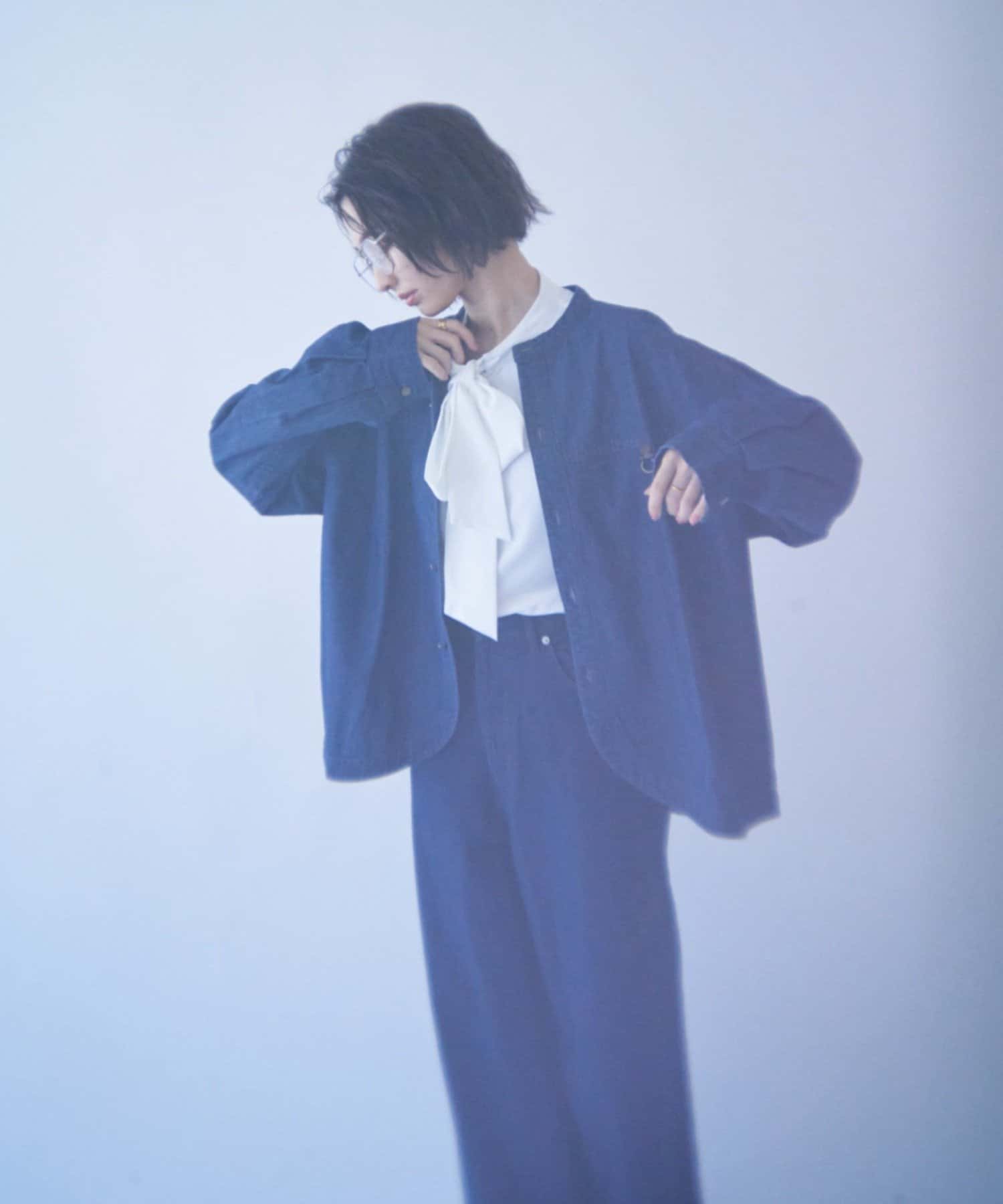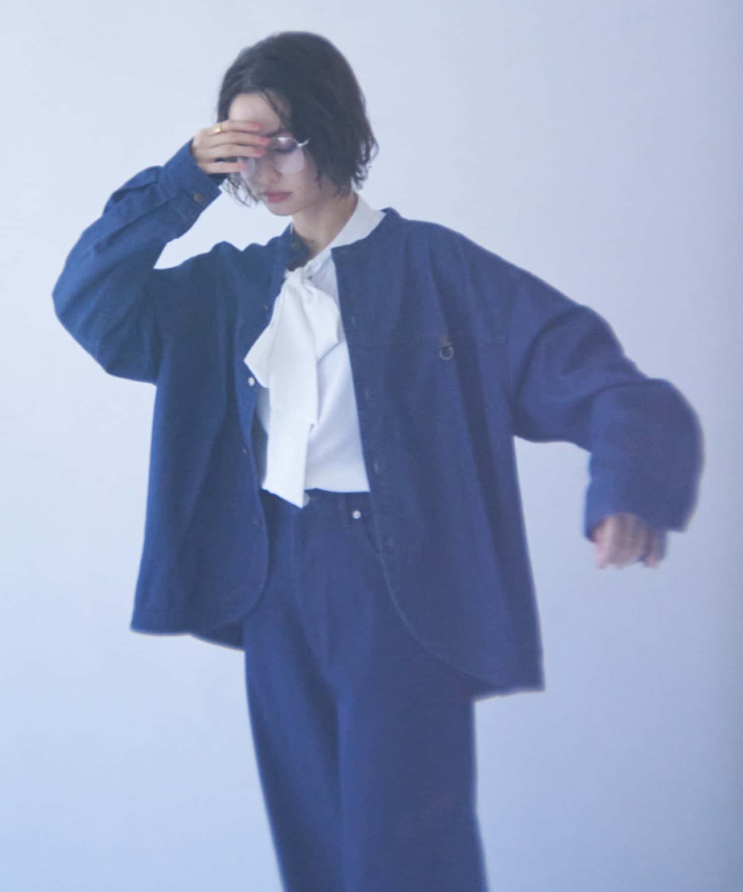 ・メンズライクなオーバーシルエットとバンドカラーがポイント