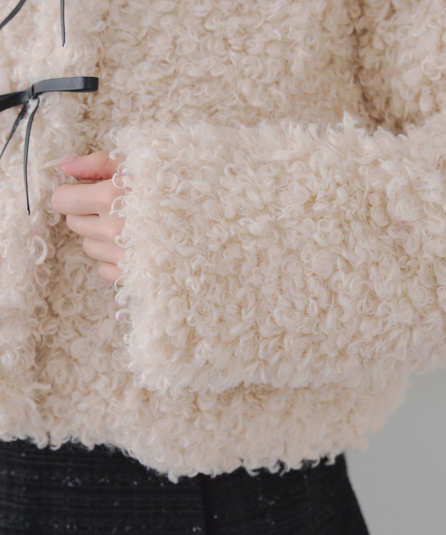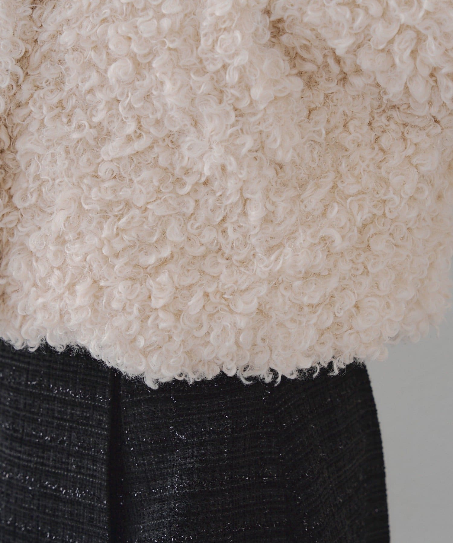 ・もこもこした立体感のある素材のプードルジャケット。