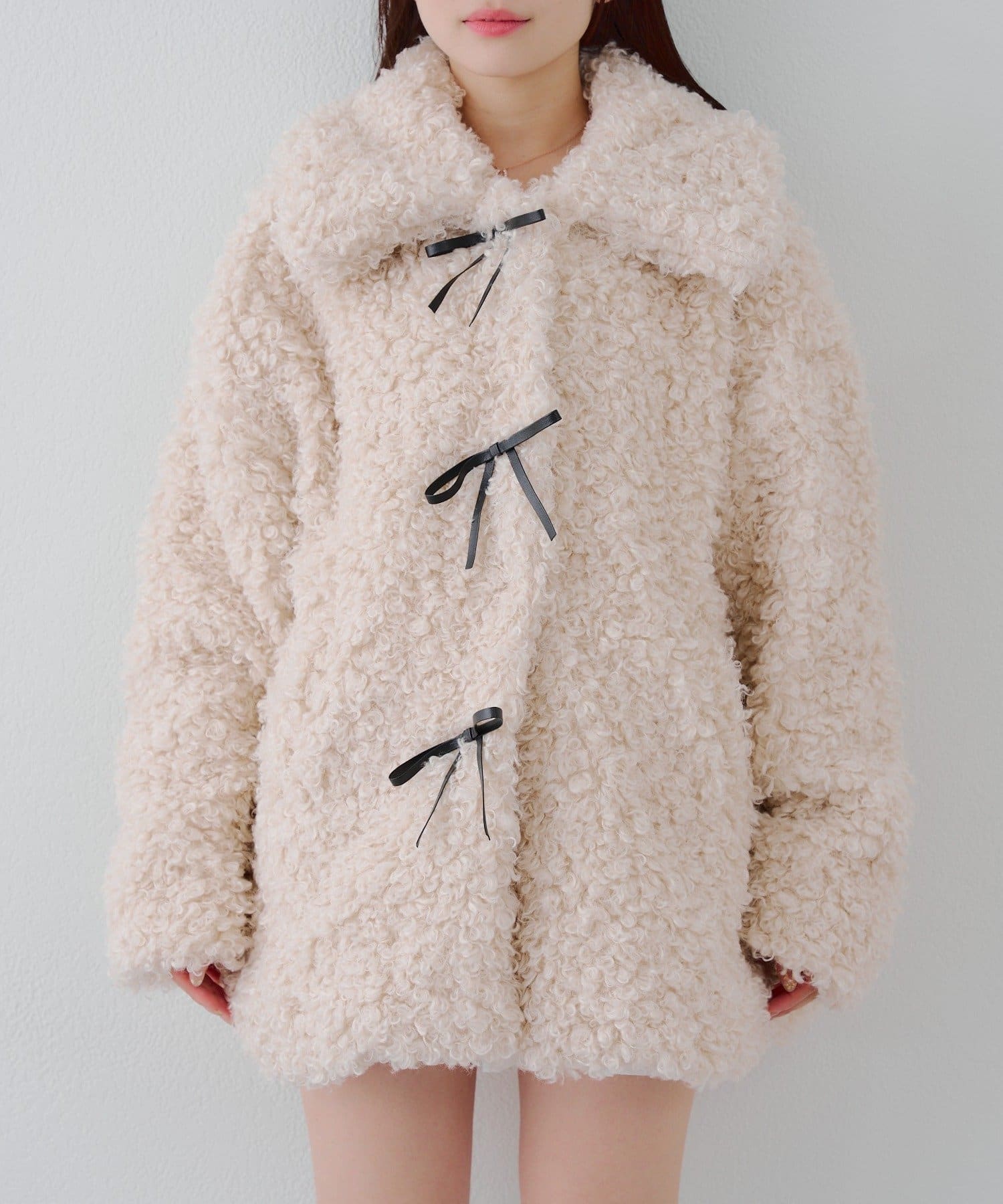 シーズンムードを高めてくれるリボン付プードルジャケットが丈違いの2サイズ展開。