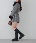 ・ミニボトム合わせでワンピ風に着こなすのがオススメ。足元はロングブーツでガーリーに♪
