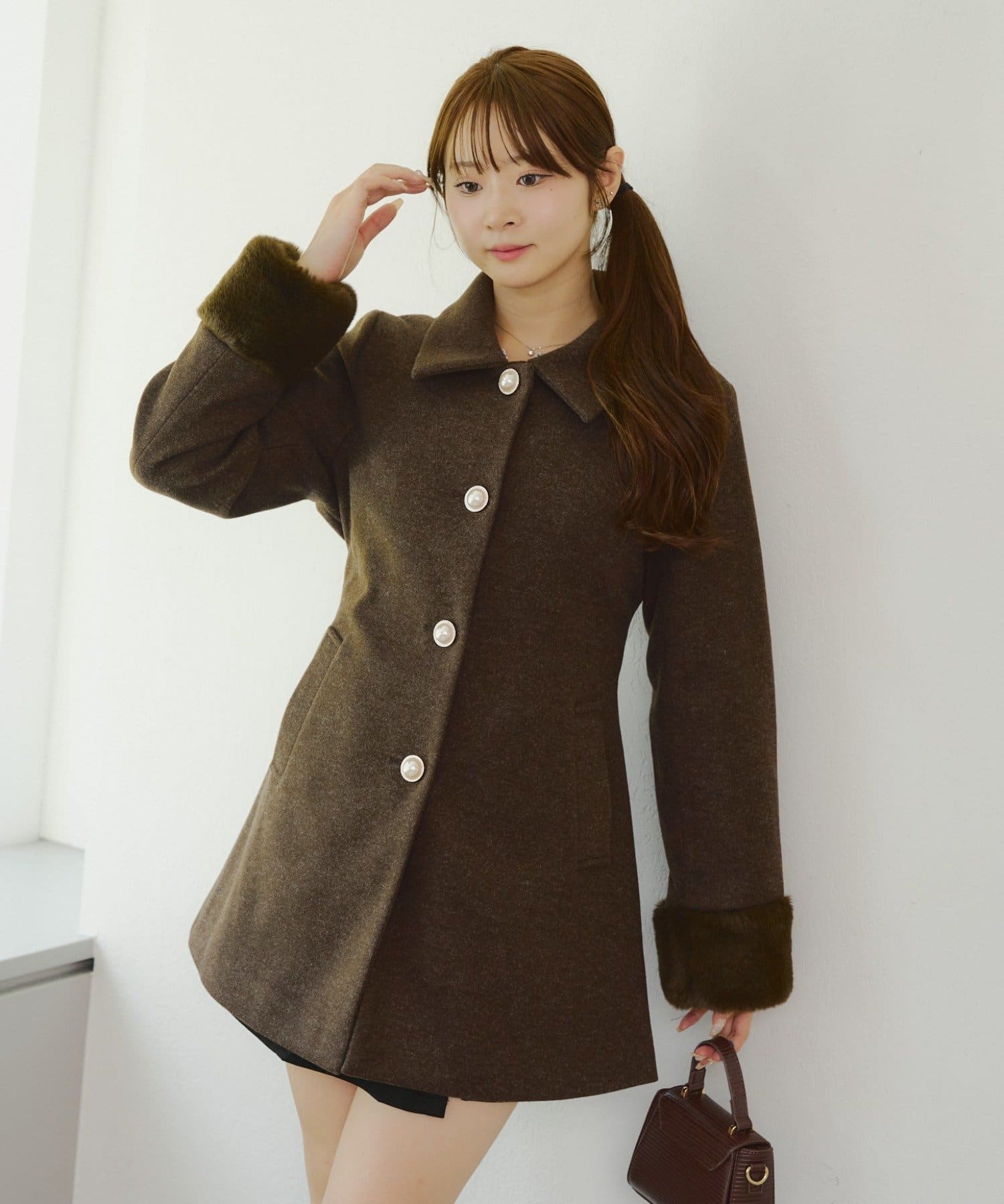 TOP > Remind me and forever > レディース > ジャケット/アウター > チェスターコート > 【お気に入り総選挙第1位!】【WEB先行予約】フェイクファー付ミドルコート