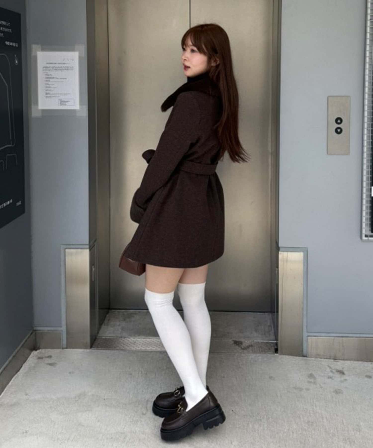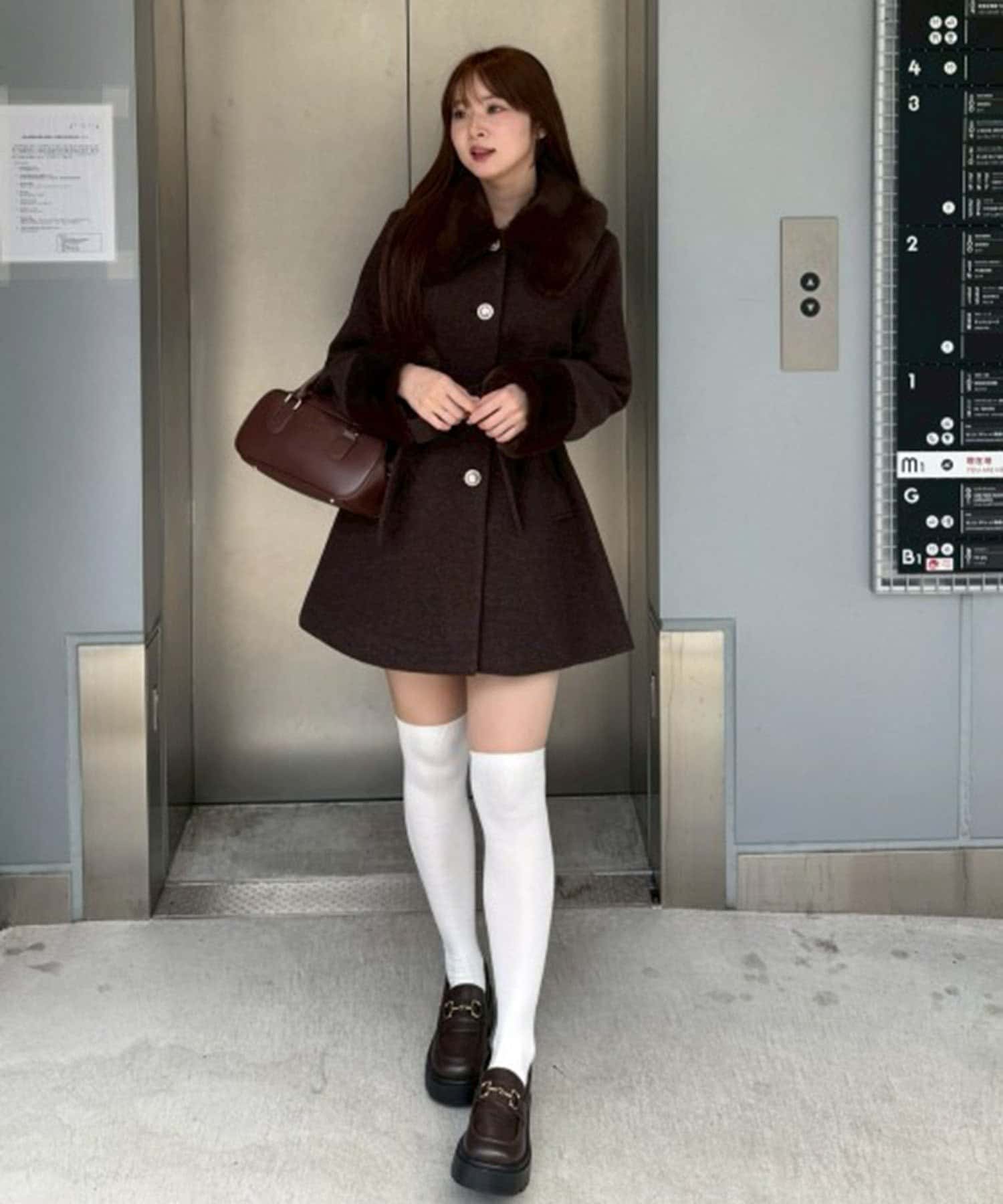 ・ファー付きで小顔効果&手元まで可愛い一枚です