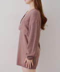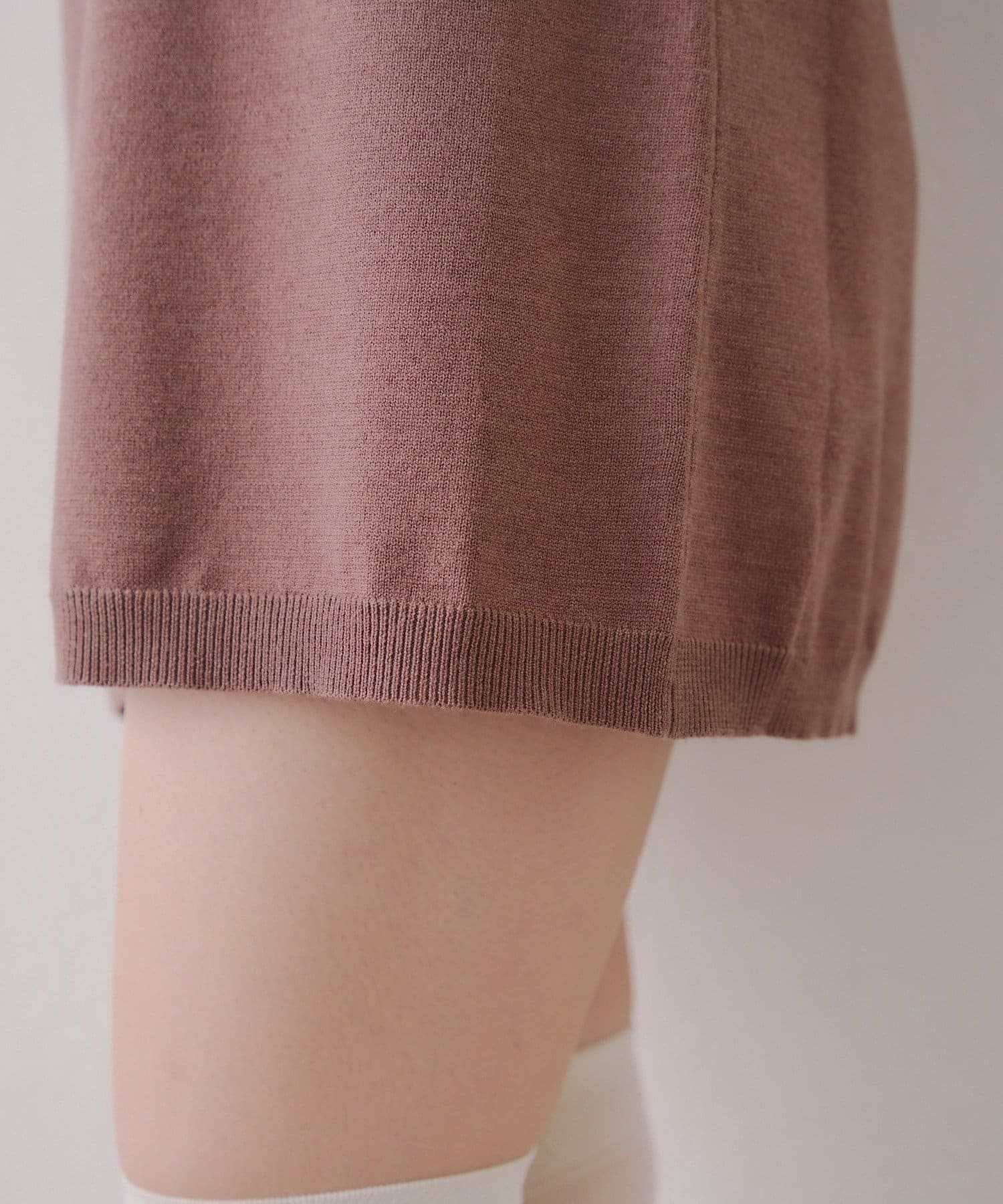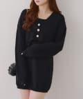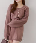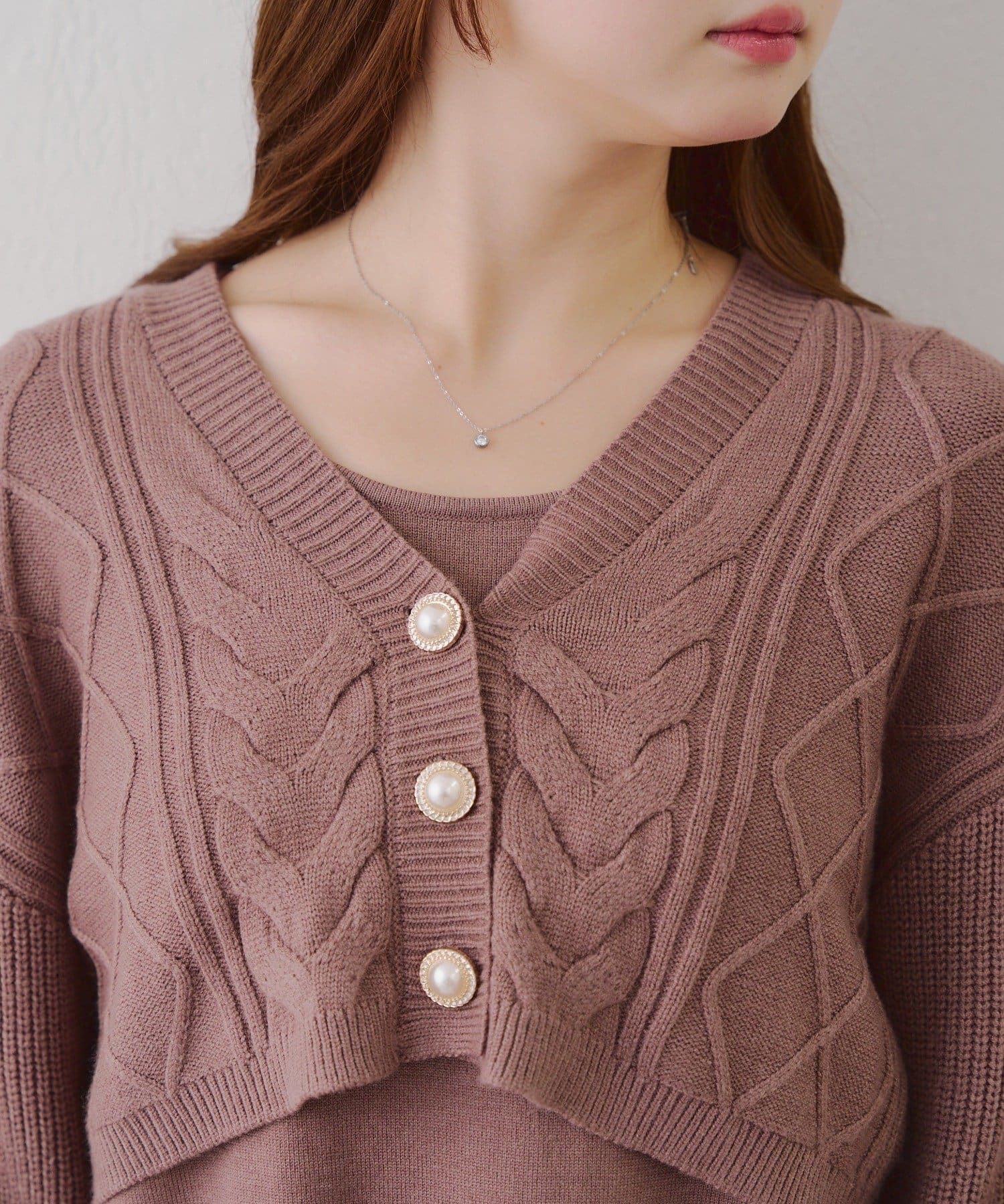 ・カーディガンはパールボタンが上品な印象を与えます。