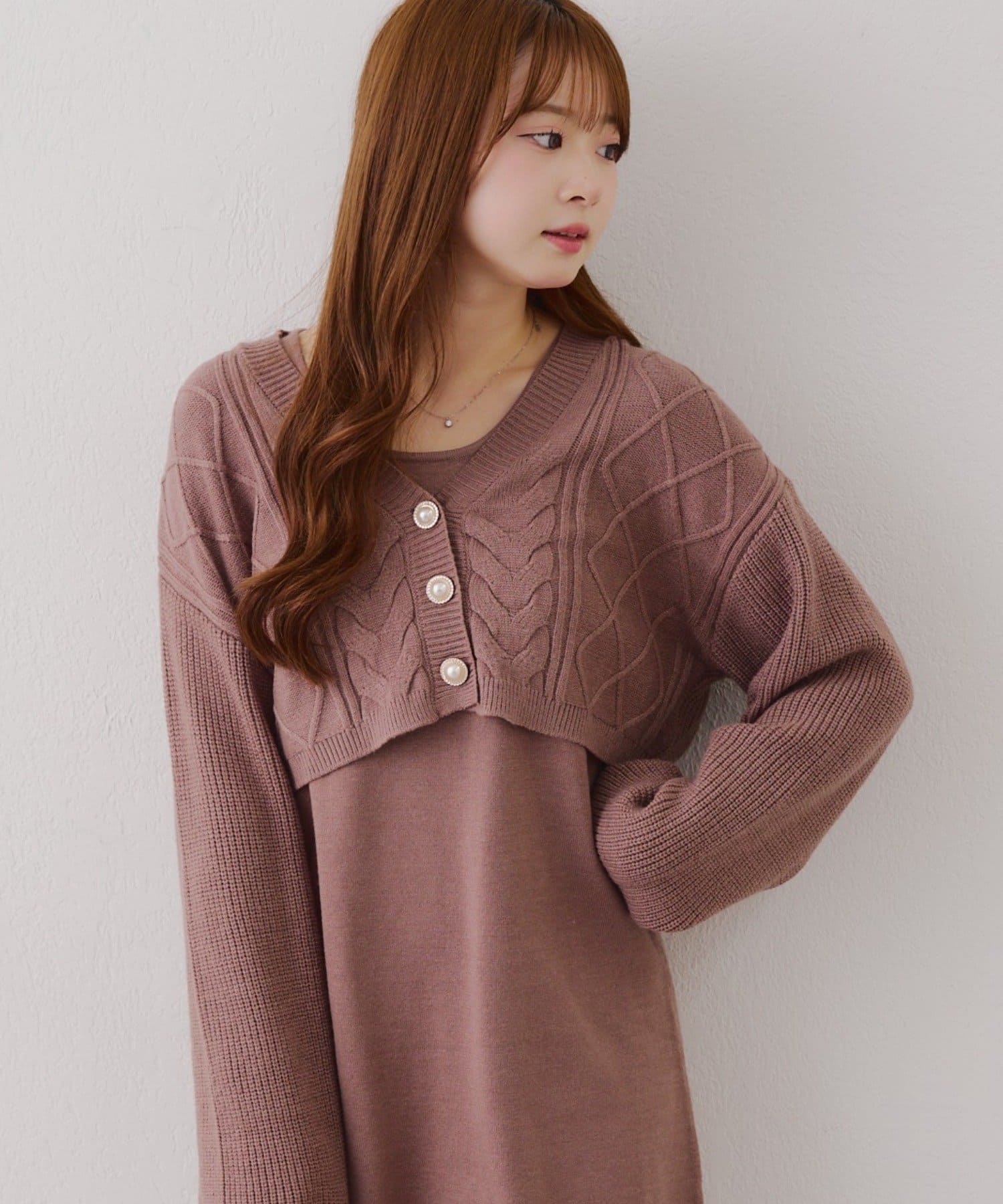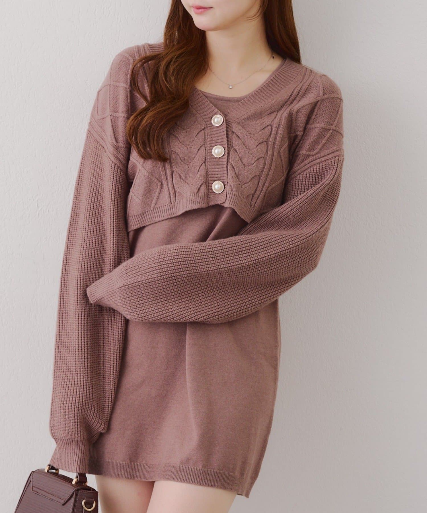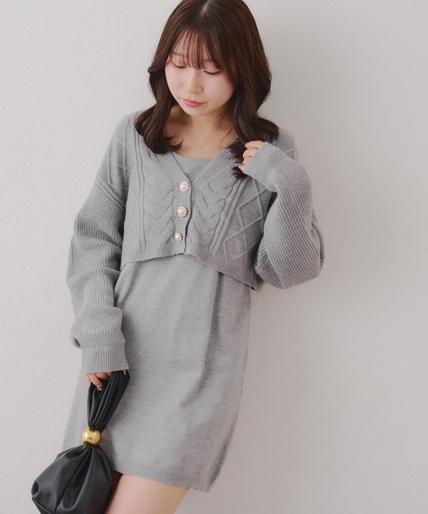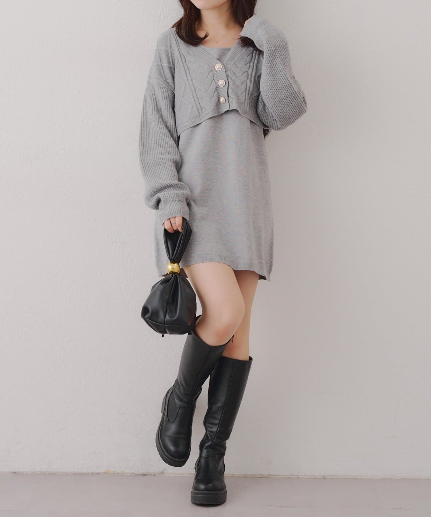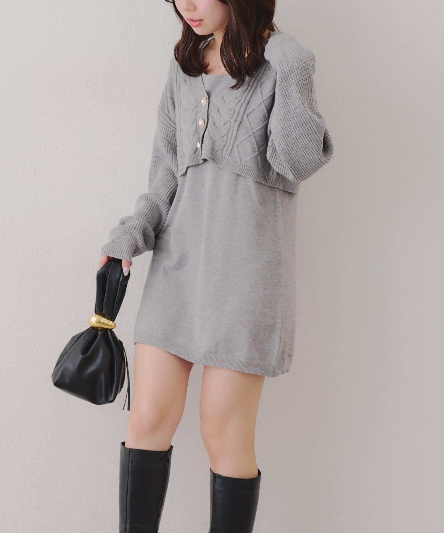 ・ケーブル編みのカーディガンとミニニットワンピースのセットアイテムです。