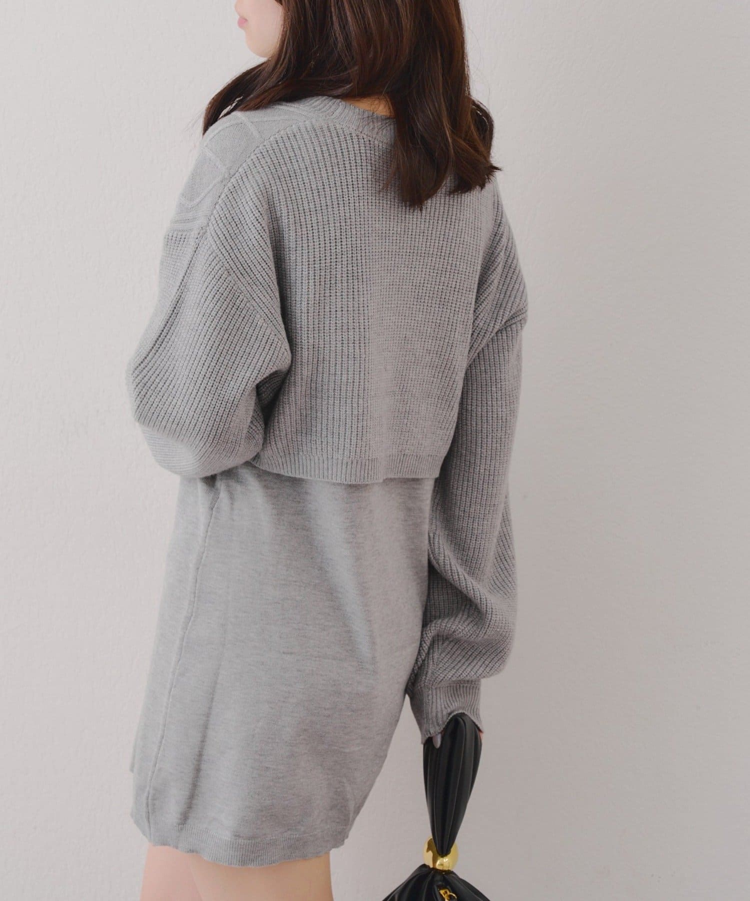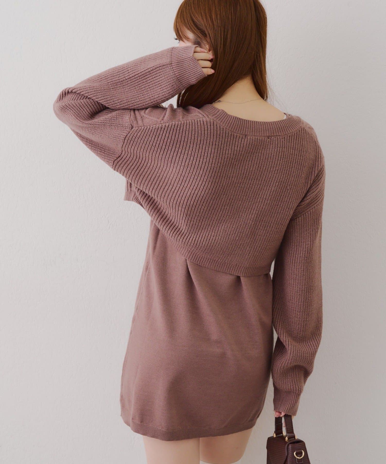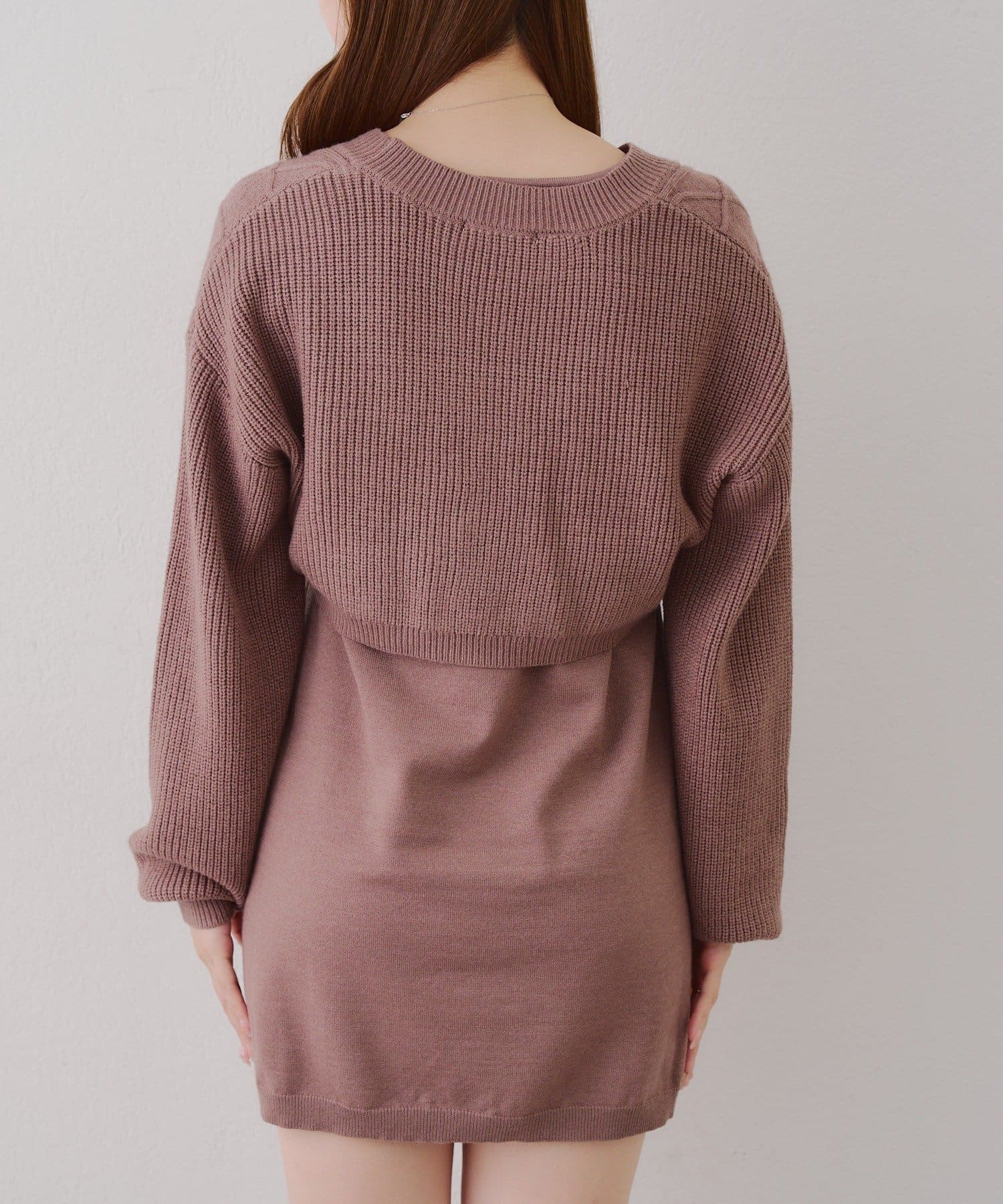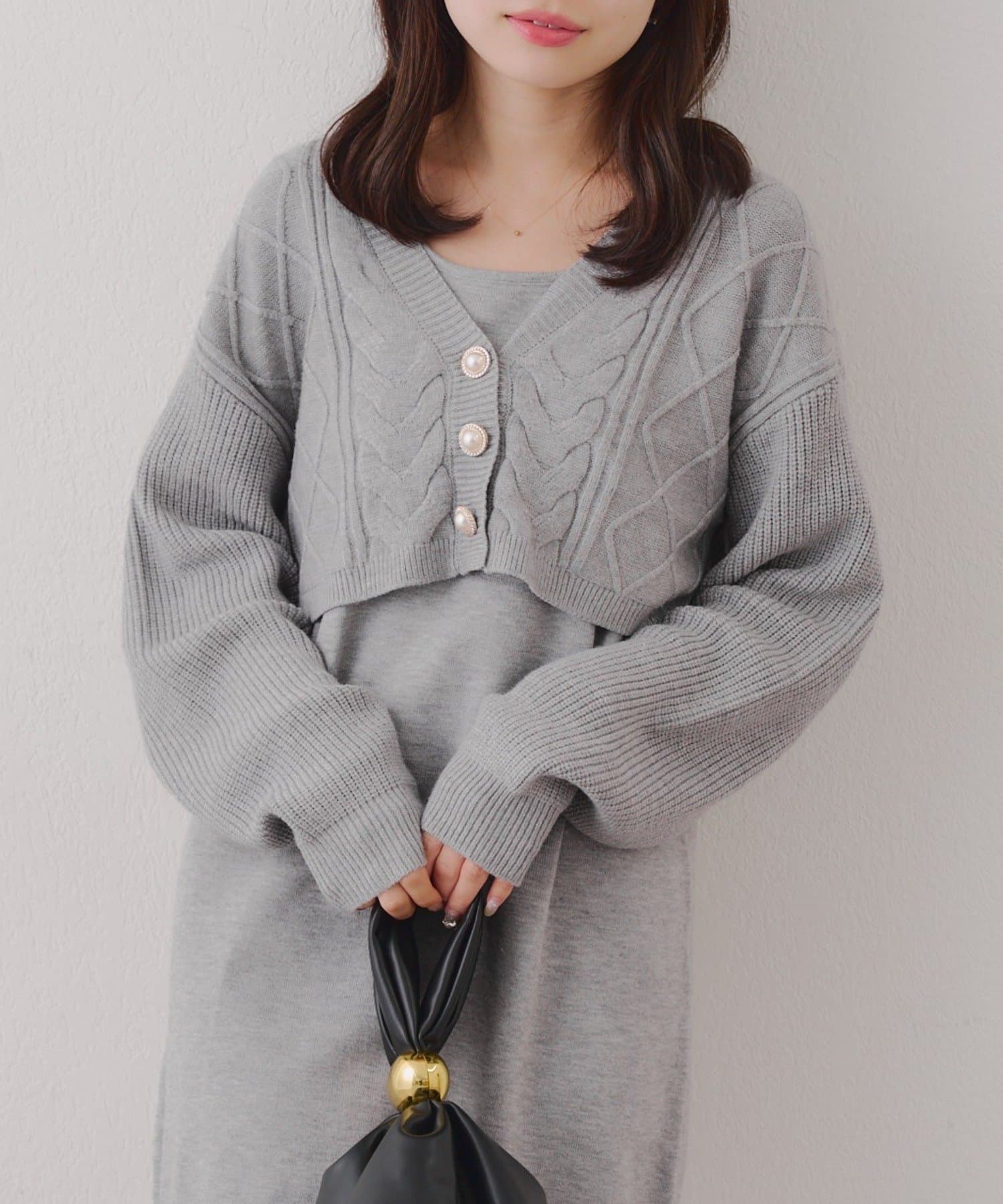 ・ケーブル編みのカーディガンとミニニットワンピースのセットアイテムです。