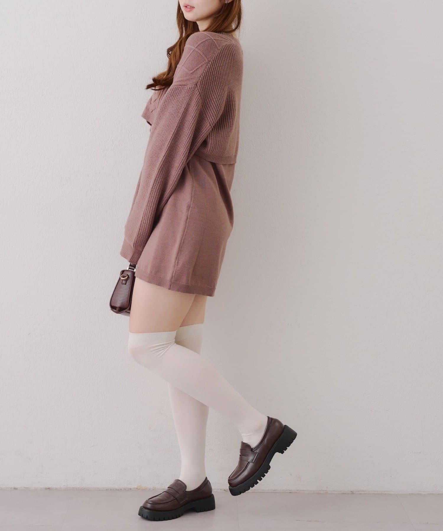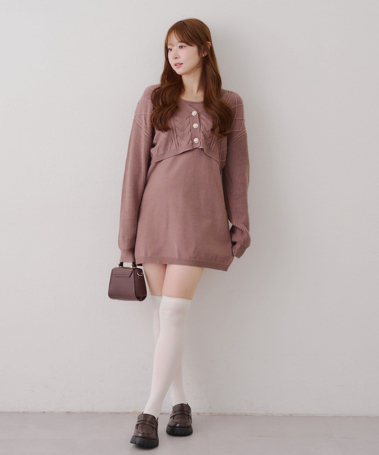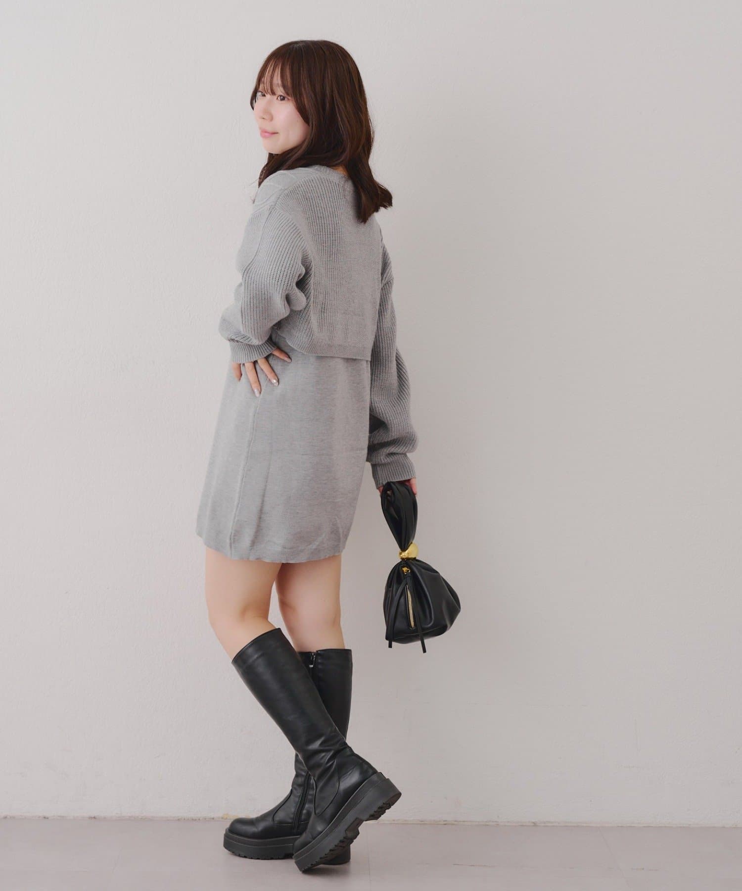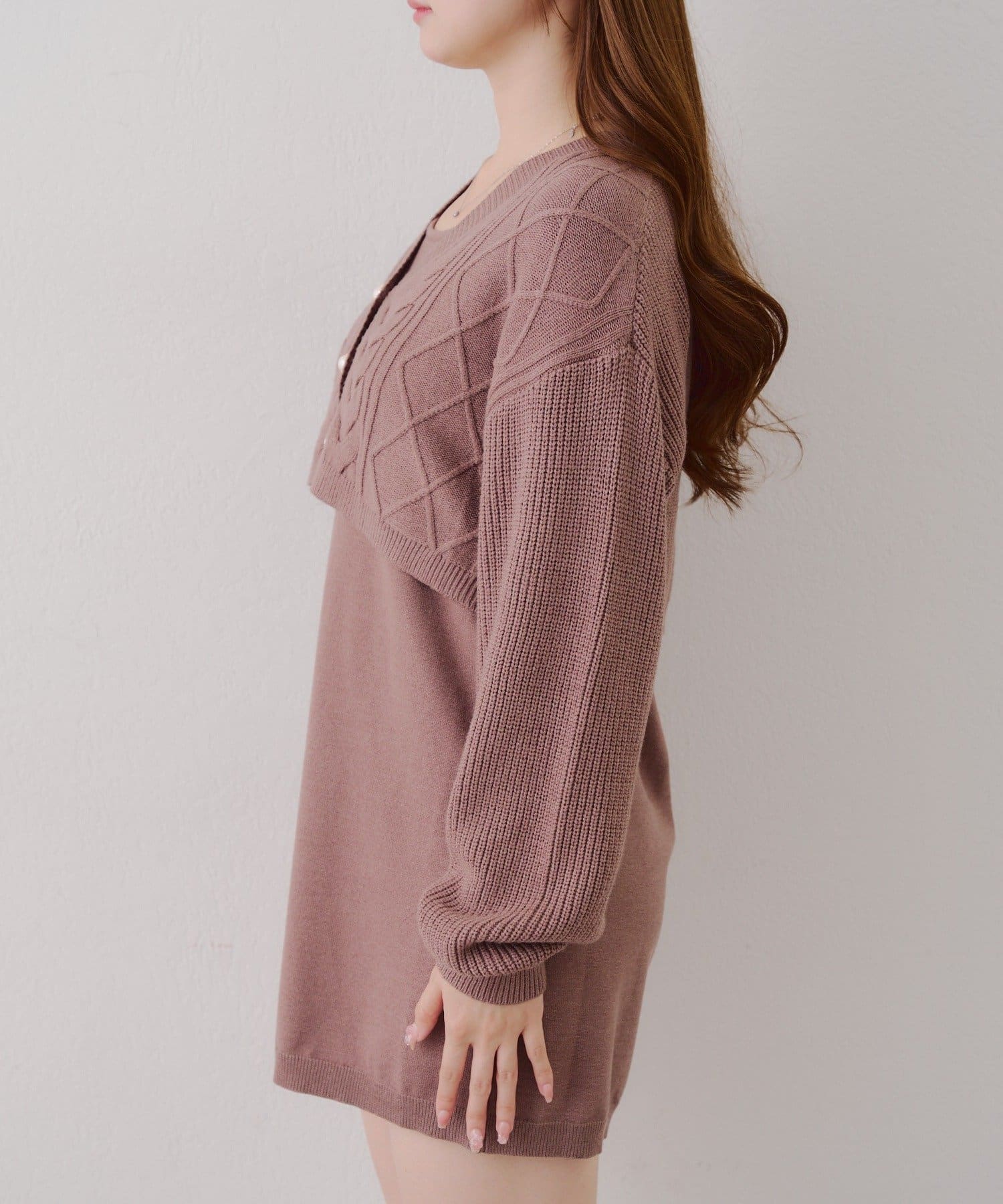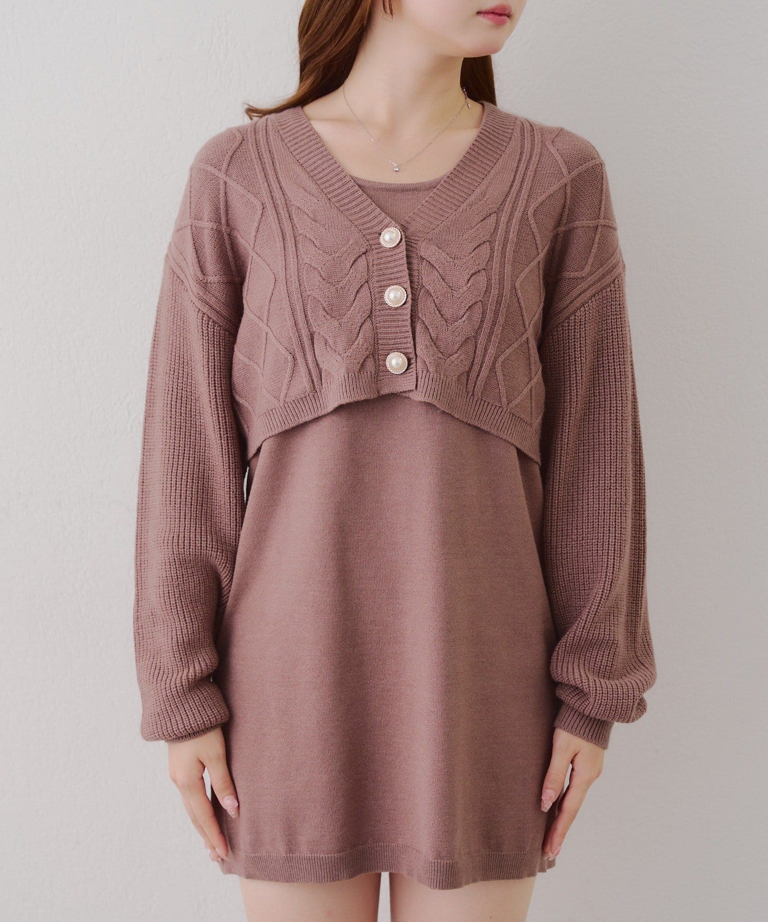 ・ケーブル編みのカーディガンとミニニットワンピースのセットアイテムです。