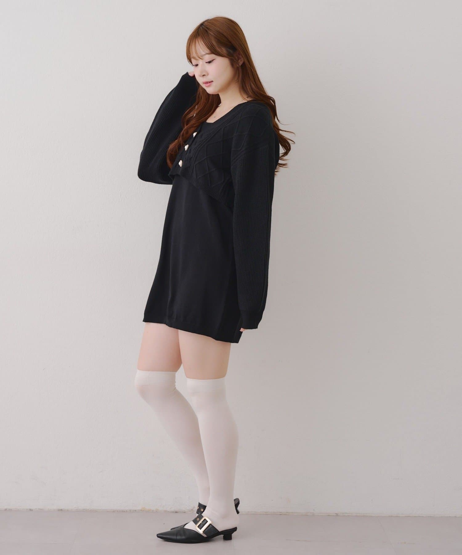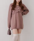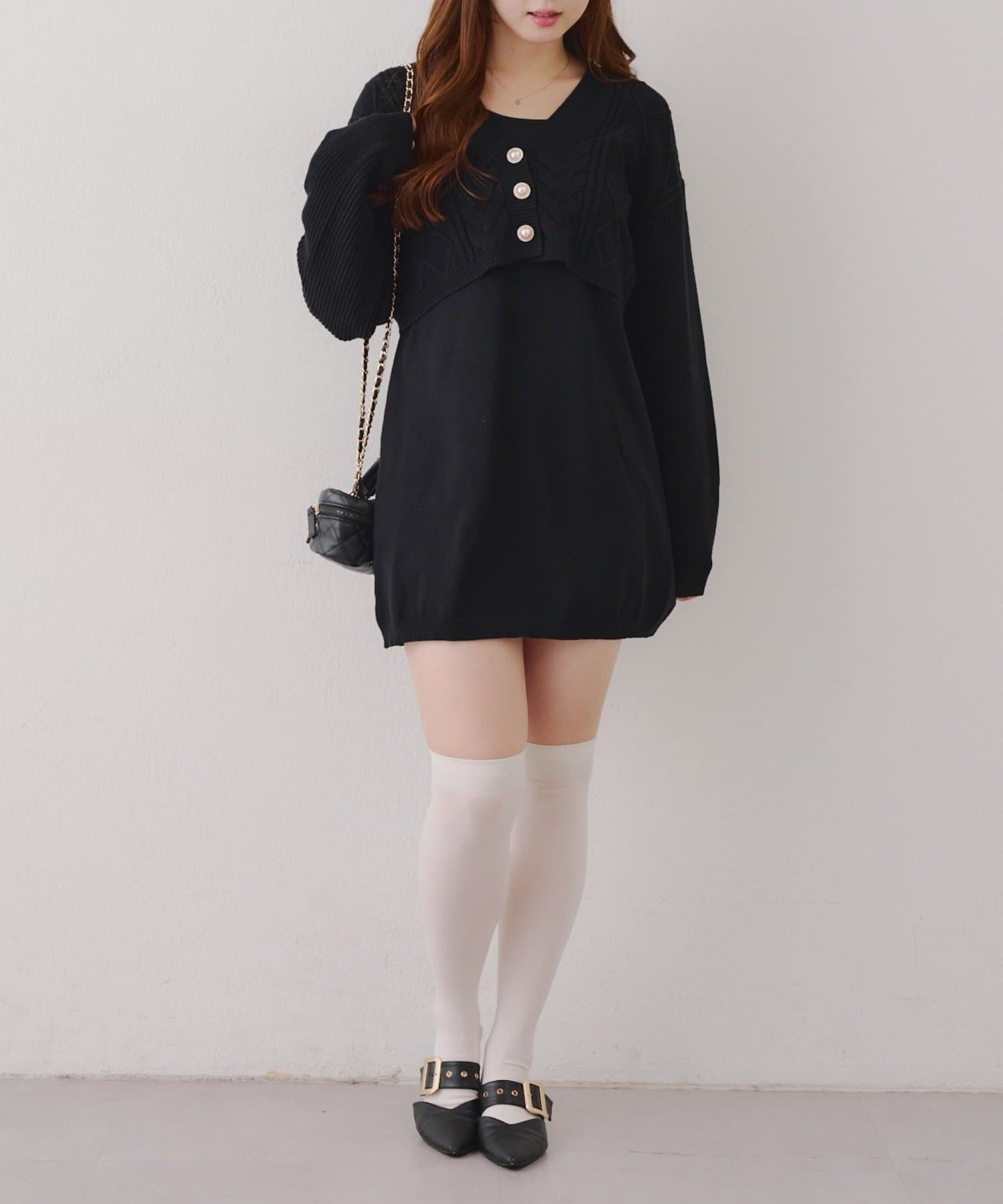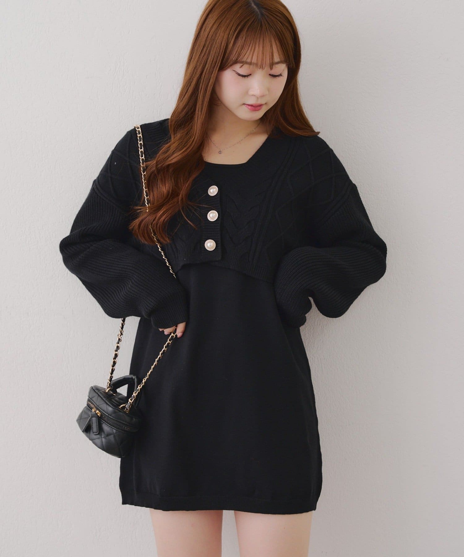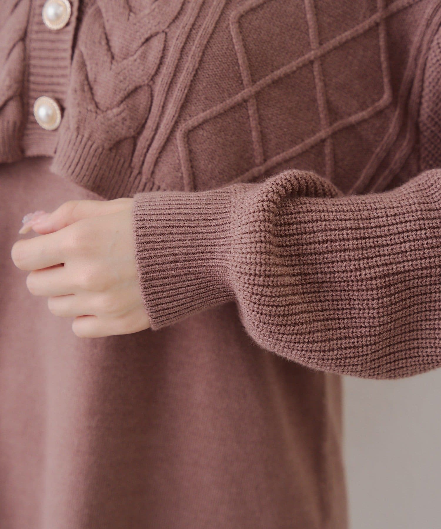 ・ケーブル編みのカーディガンとミニニットワンピースのセットアイテムです。