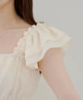 ・肩部分はボリュームを持たせ、腰位置が高く見えるようなシャーリング切り替えが施されているのでスタイルアップ♪