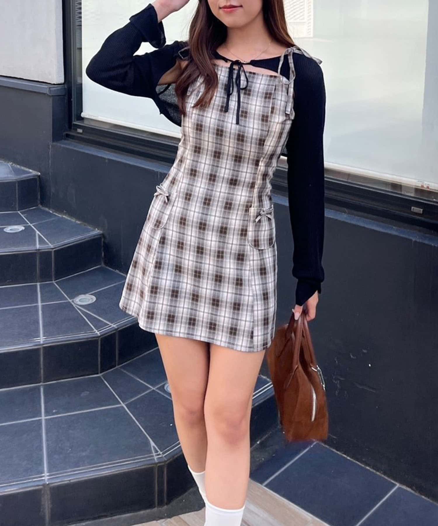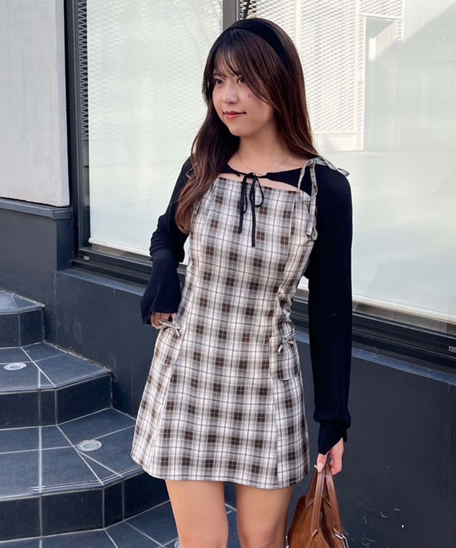 ・肩のリボンは自分で結べて調整できるので、幅広い身長の方に着ていただけます!