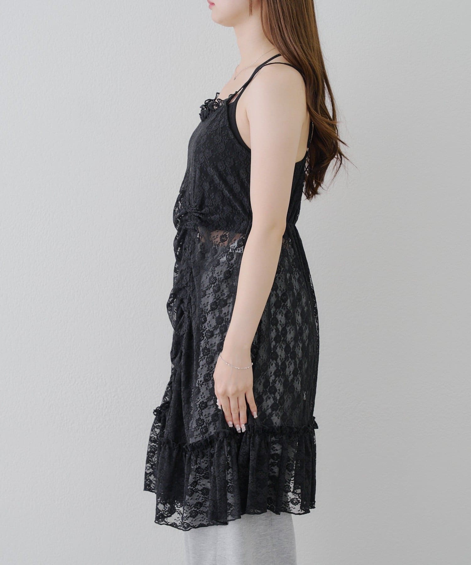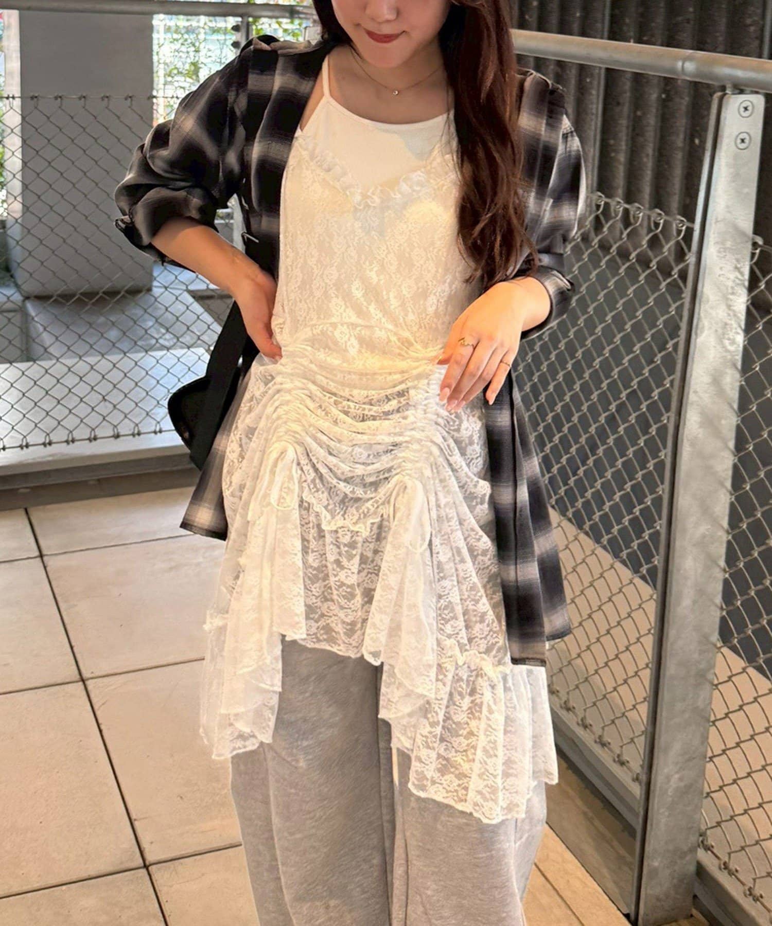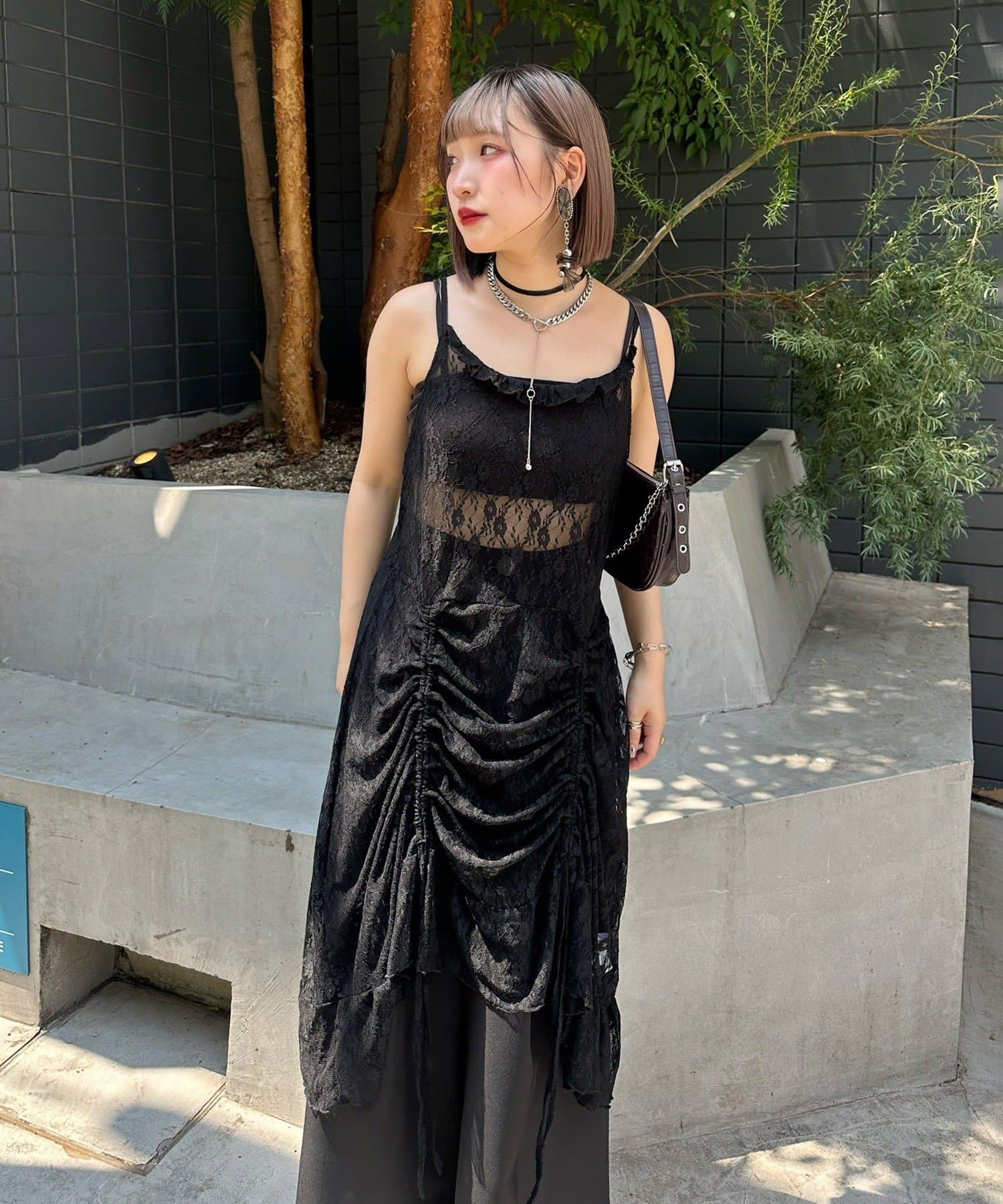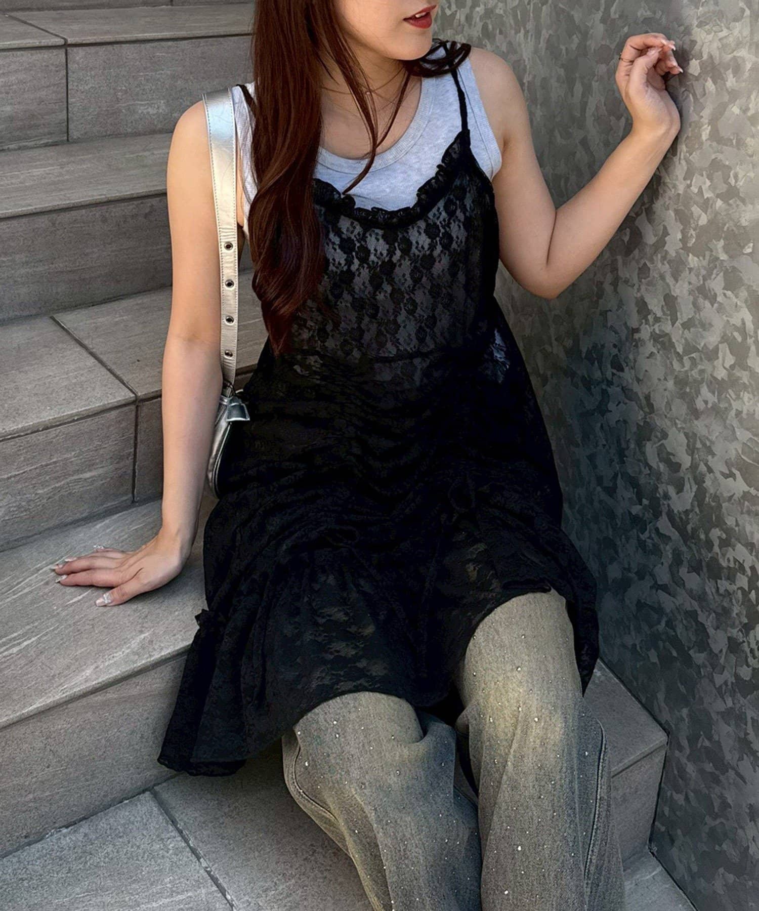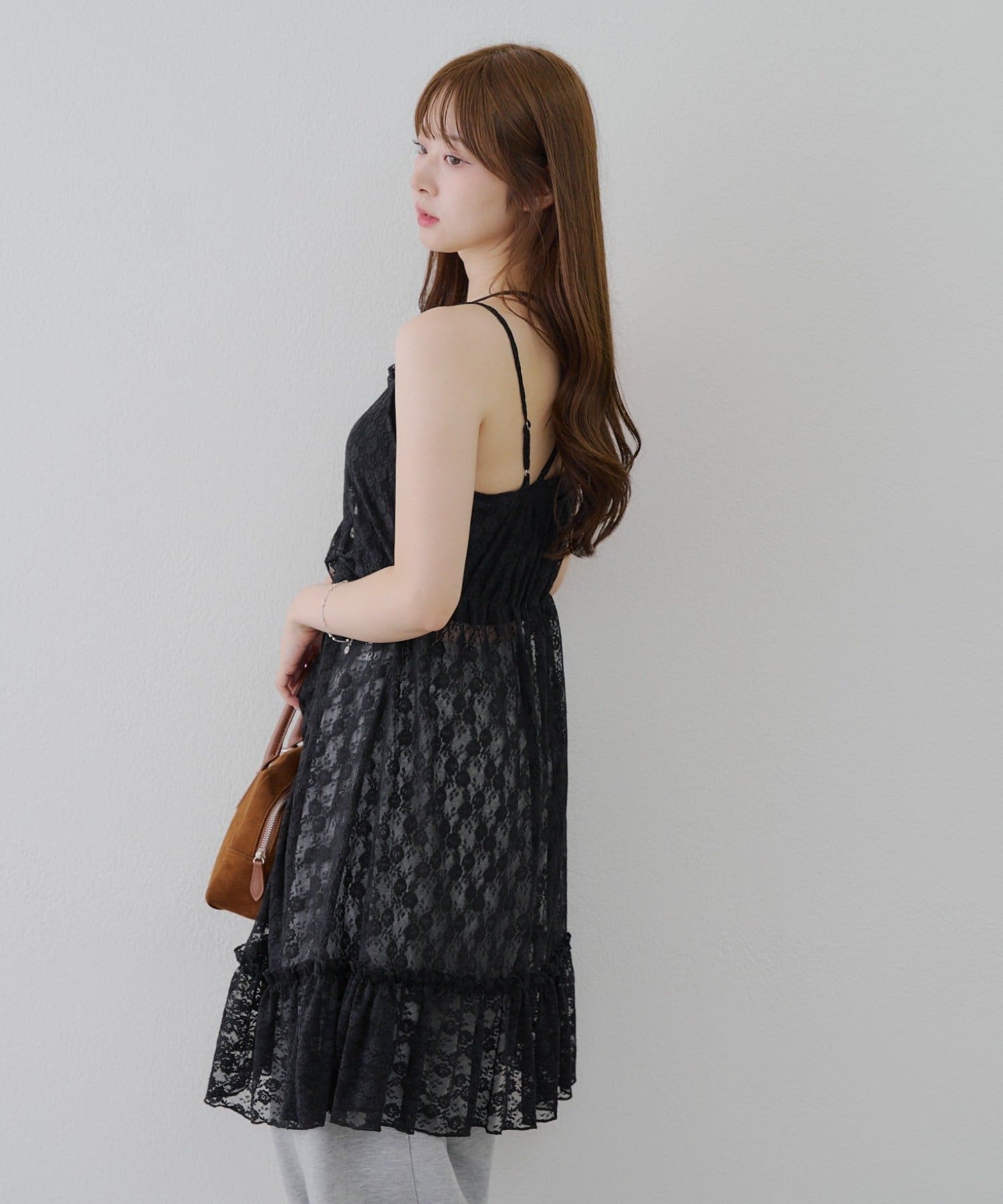 【レイヤードを楽しむならコレ!】レースドロストキャミワンピース