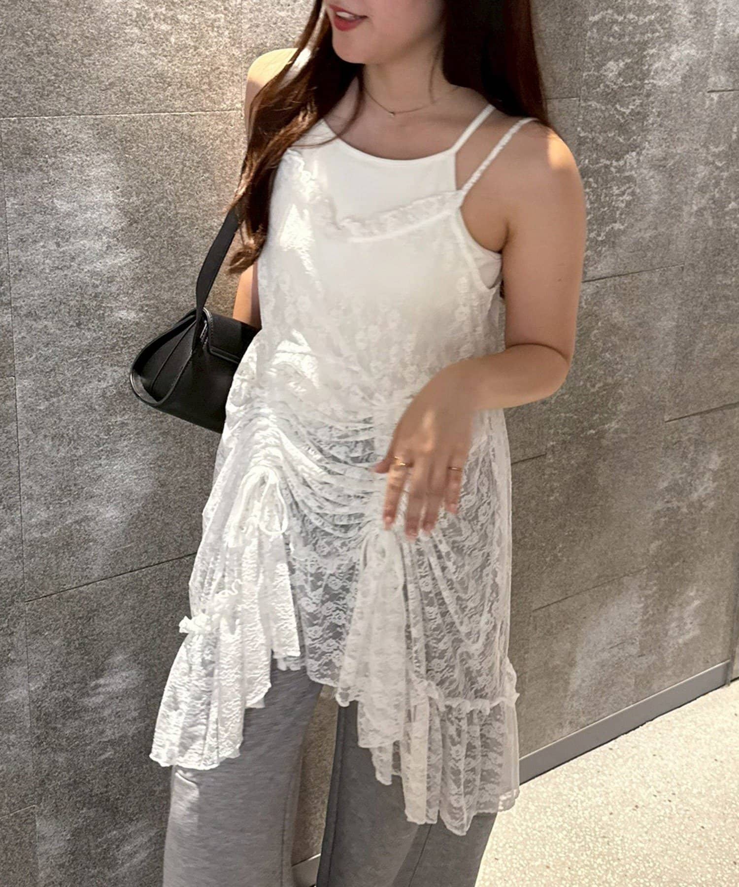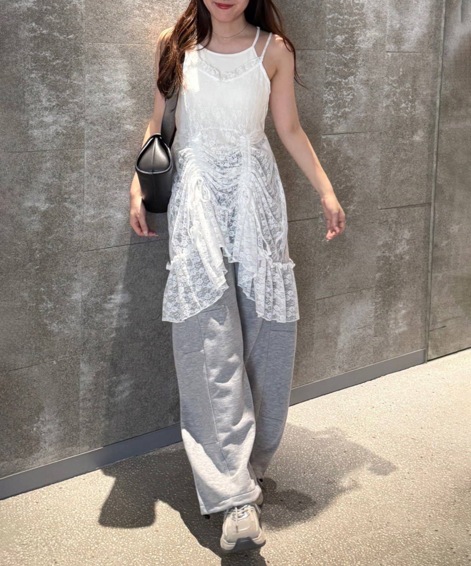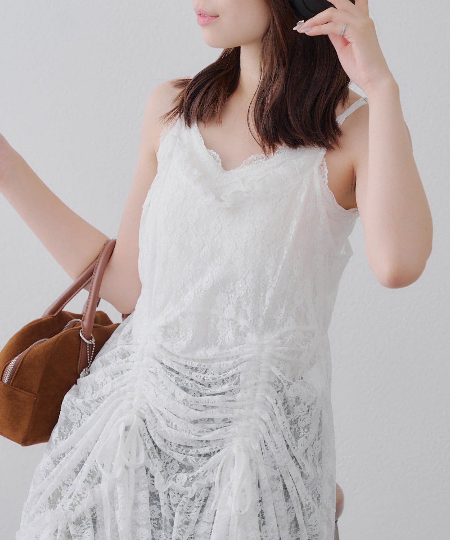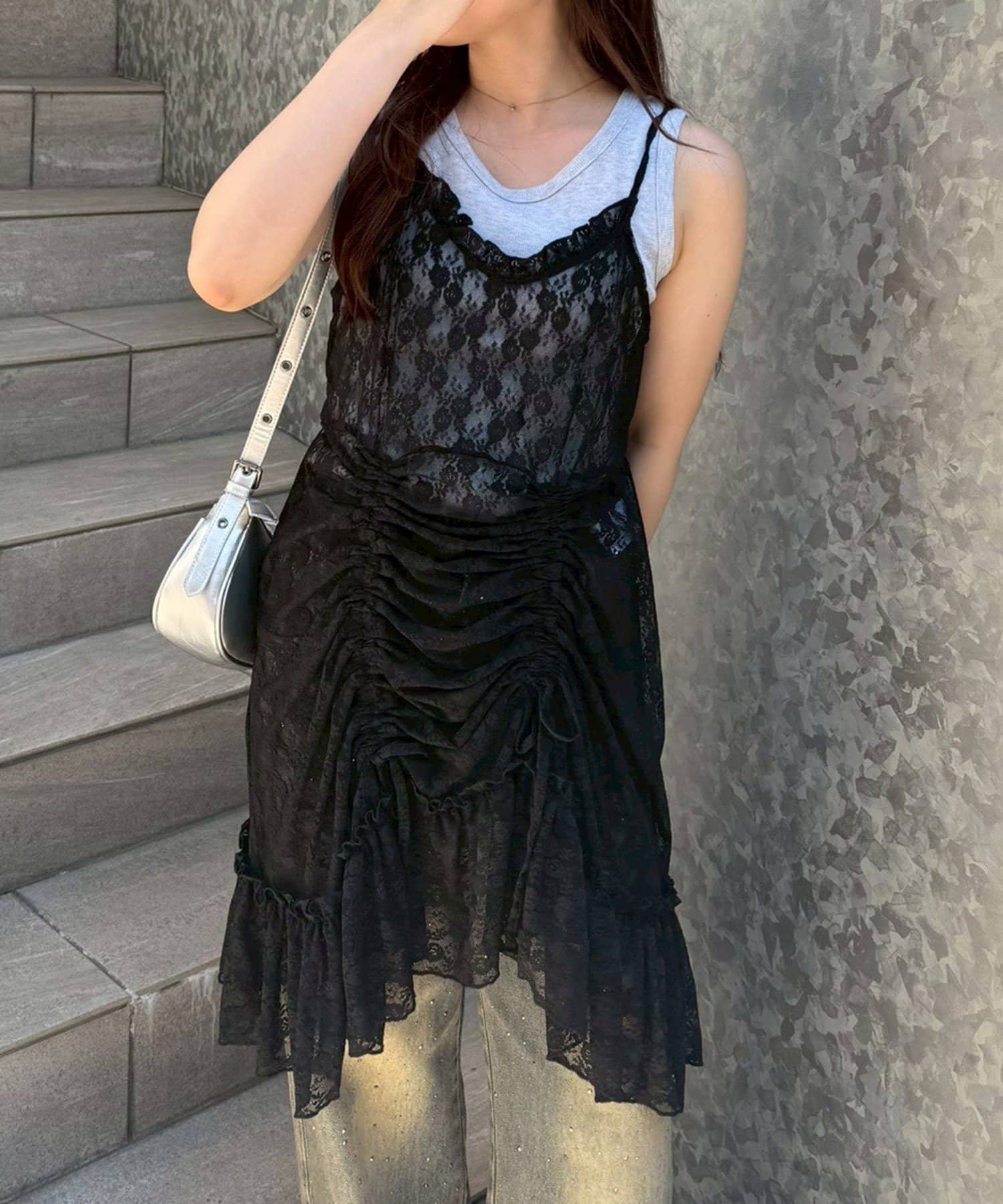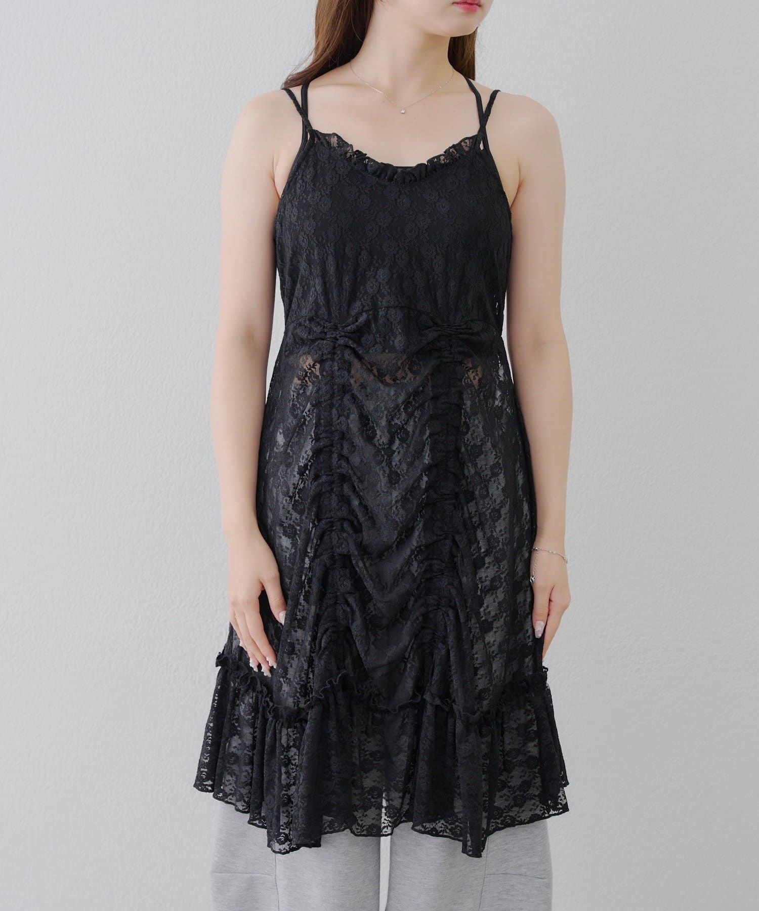 【レイヤードを楽しむならコレ!】レースドロストキャミワンピース