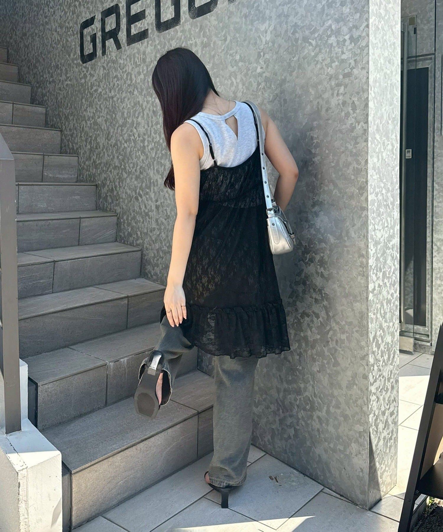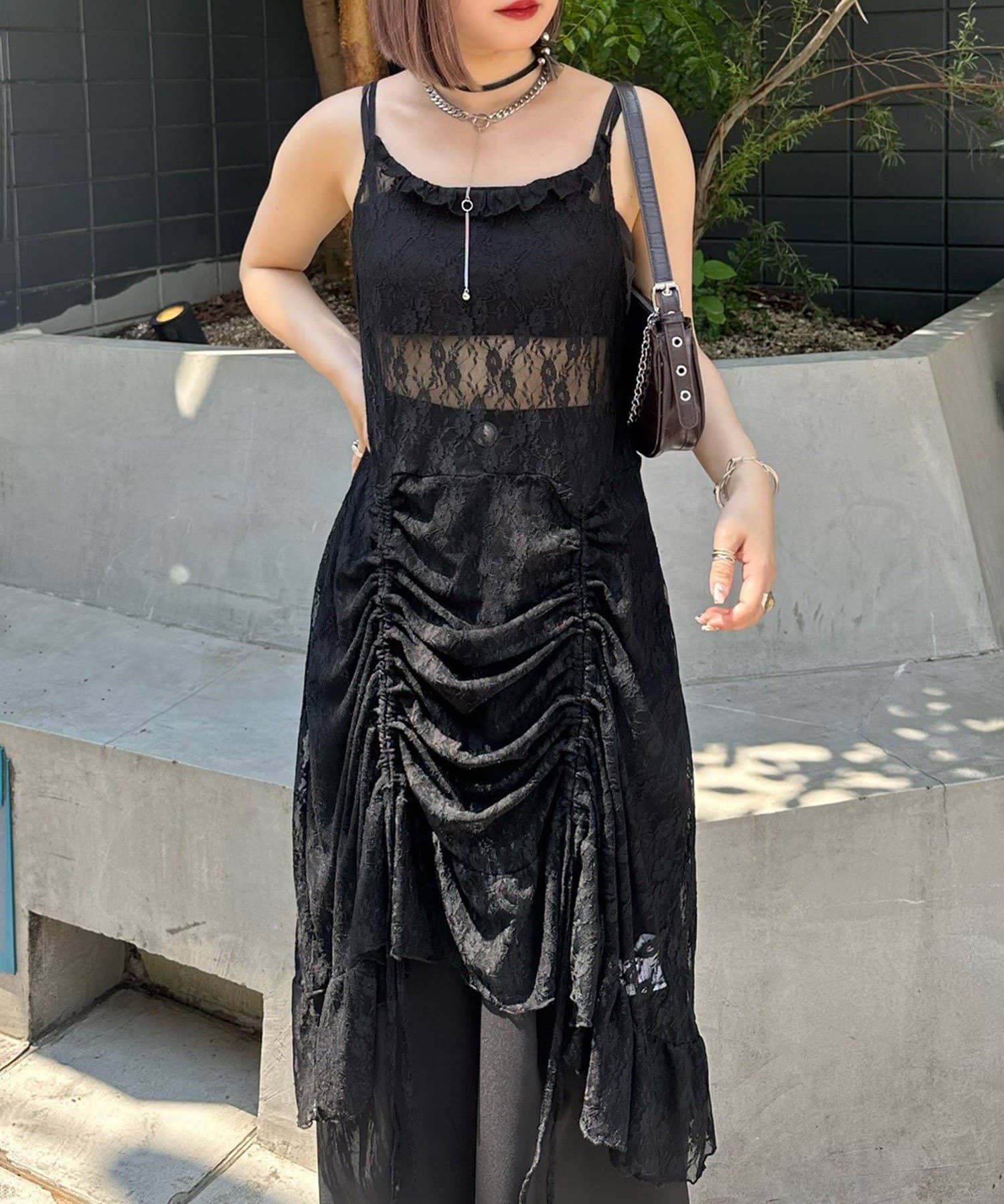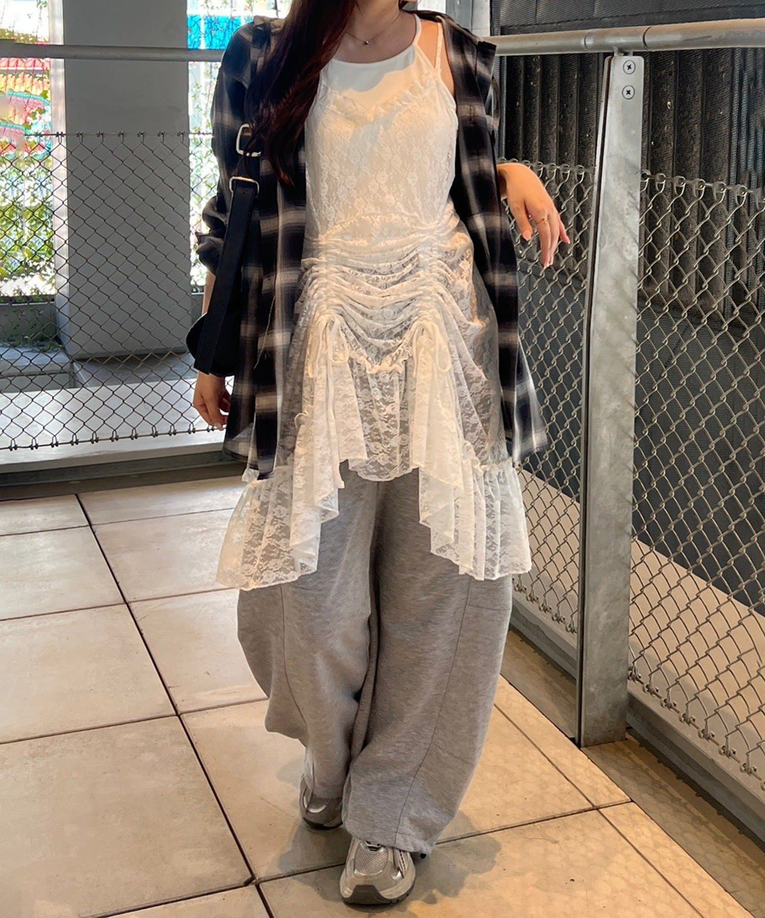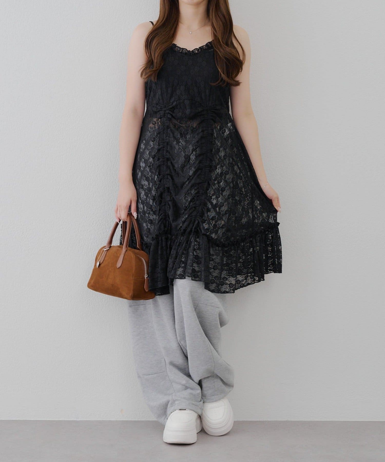 【レイヤードを楽しむならコレ!】レースドロストキャミワンピース