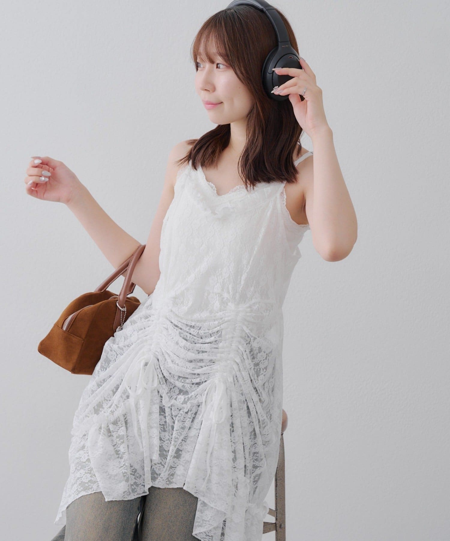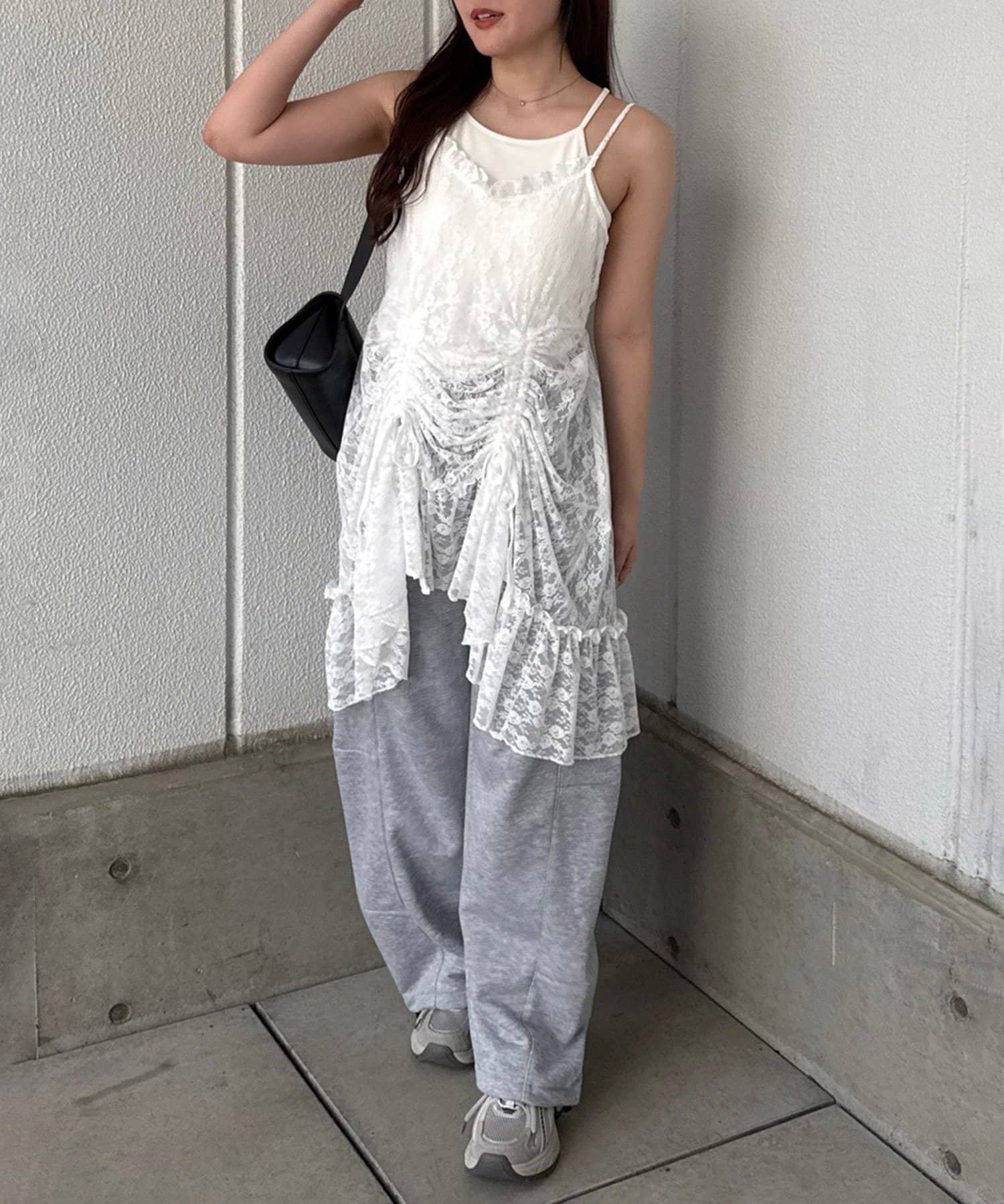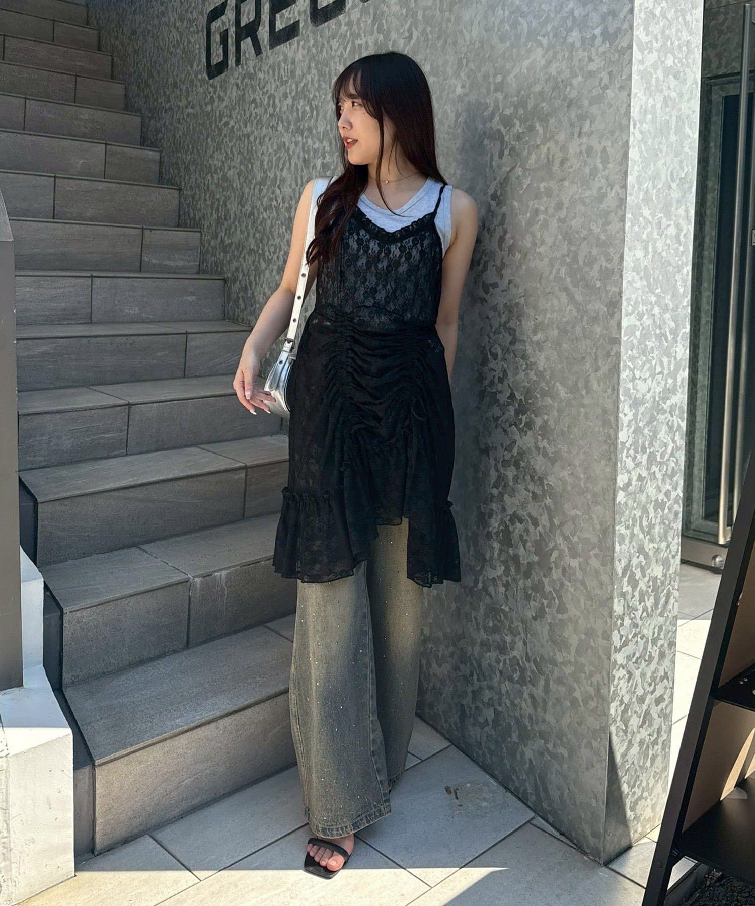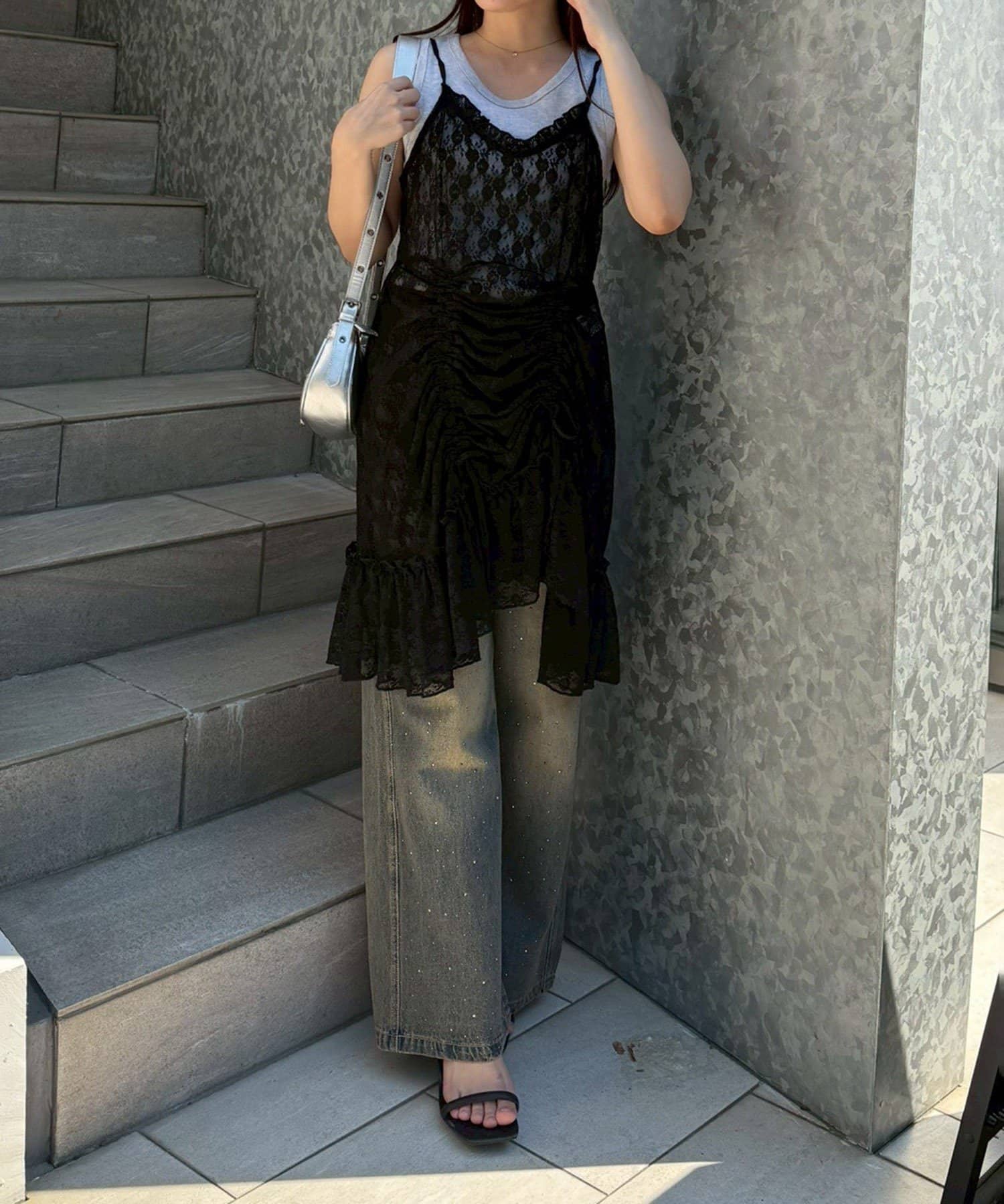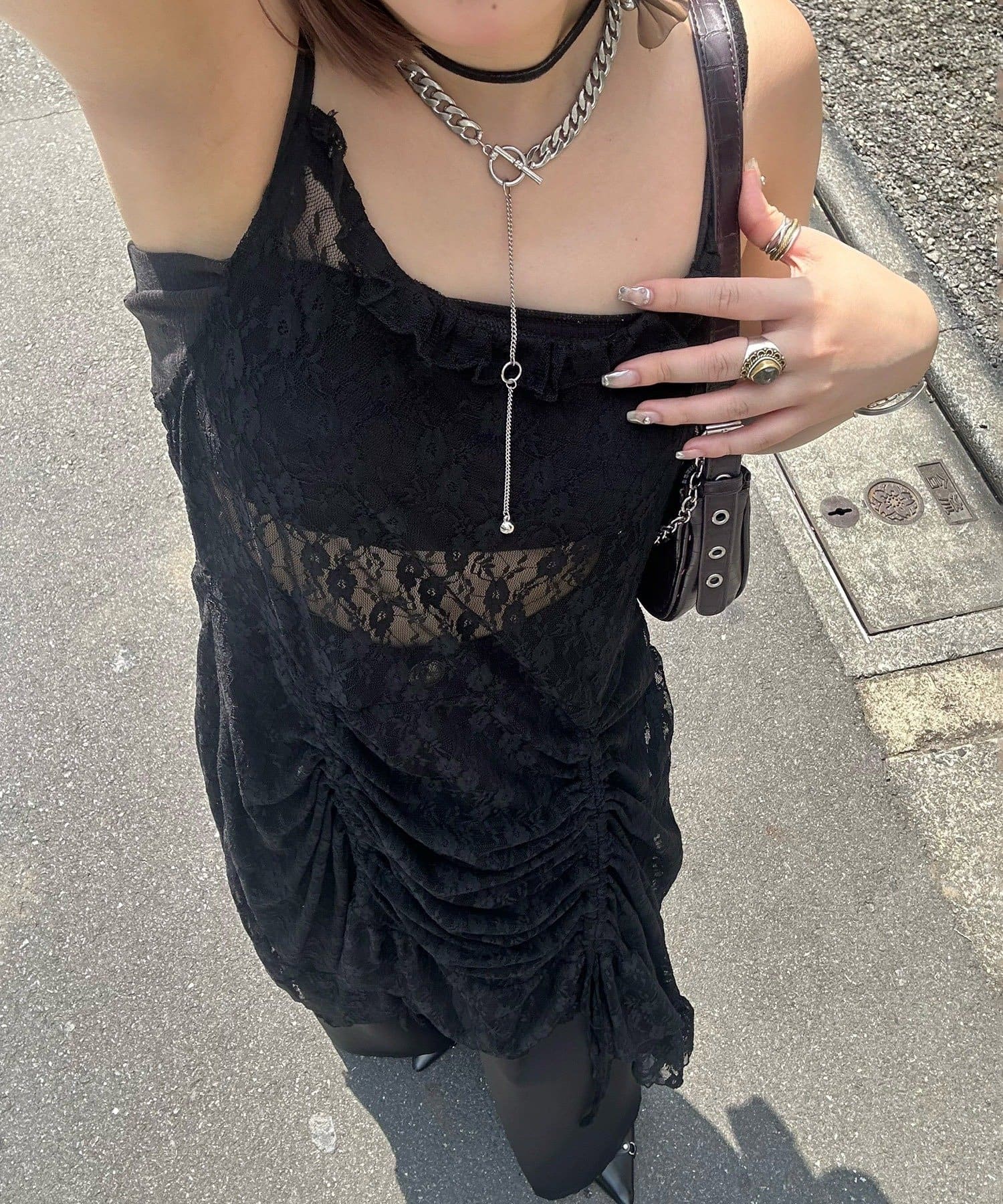 【レイヤードを楽しむならコレ!】レースドロストキャミワンピース