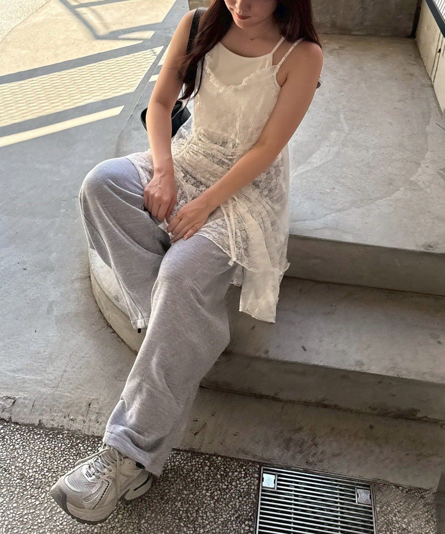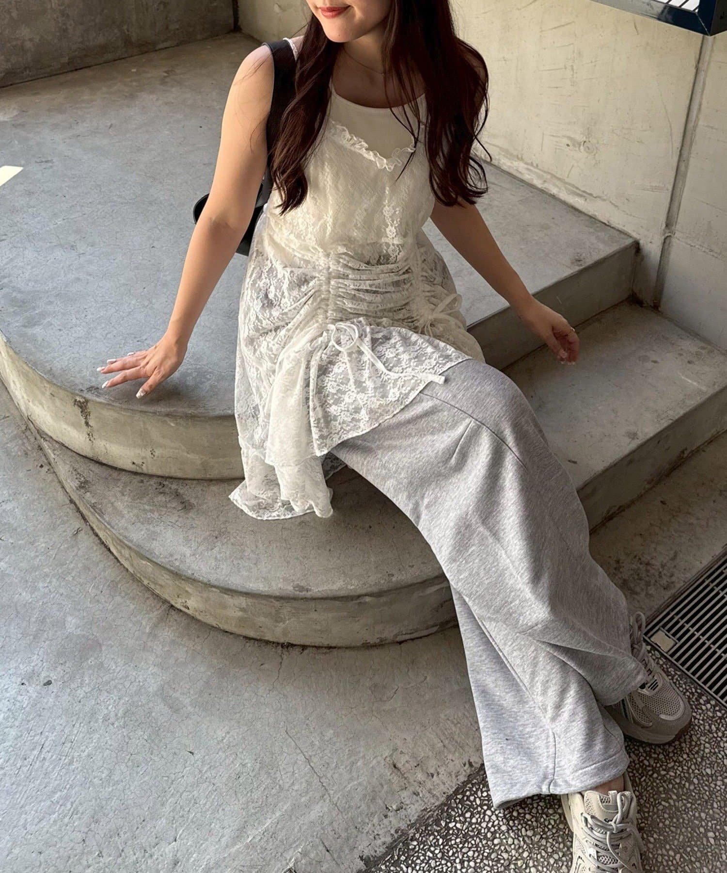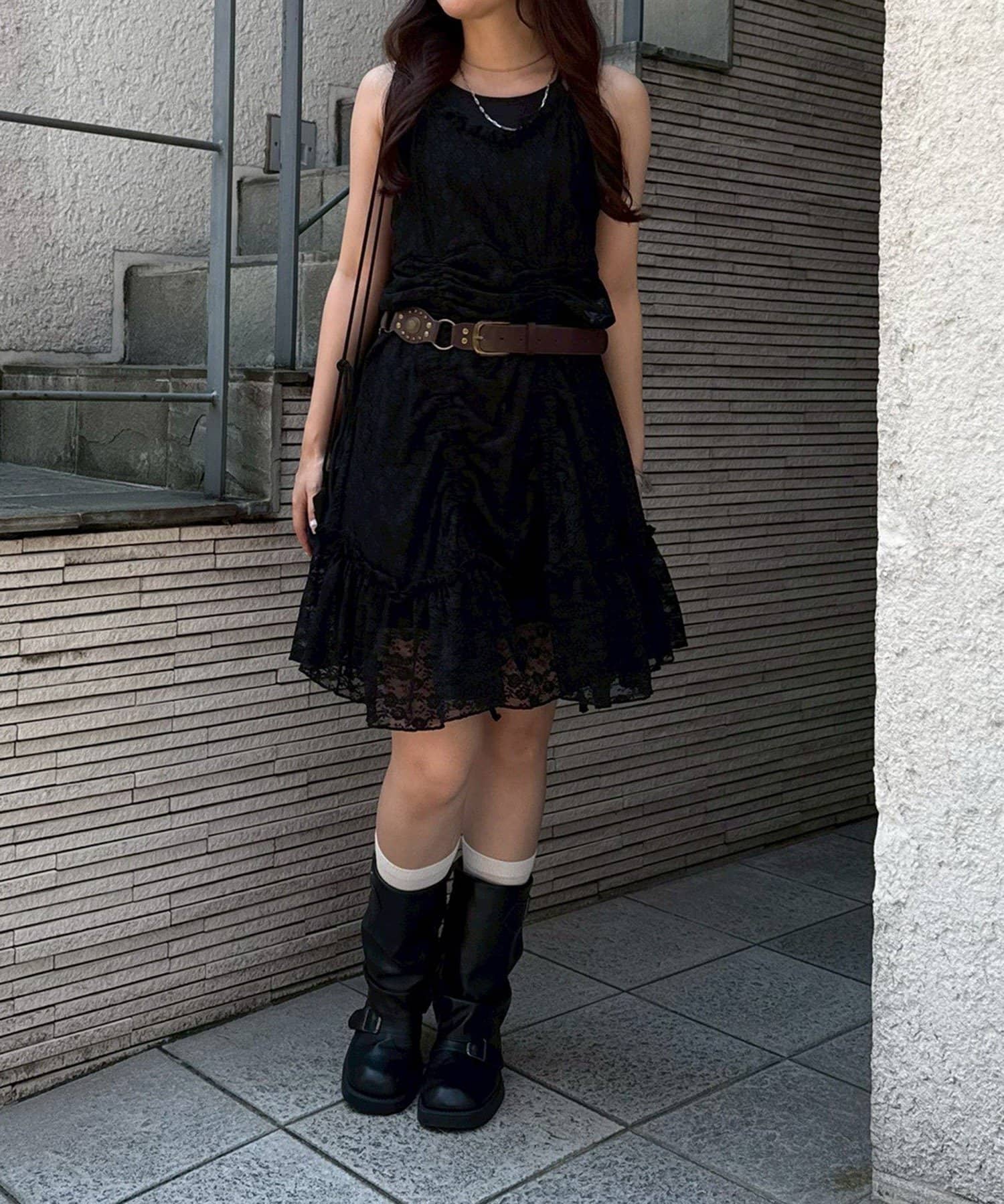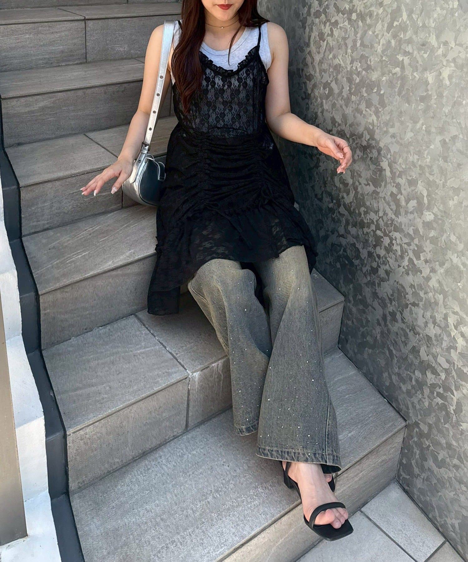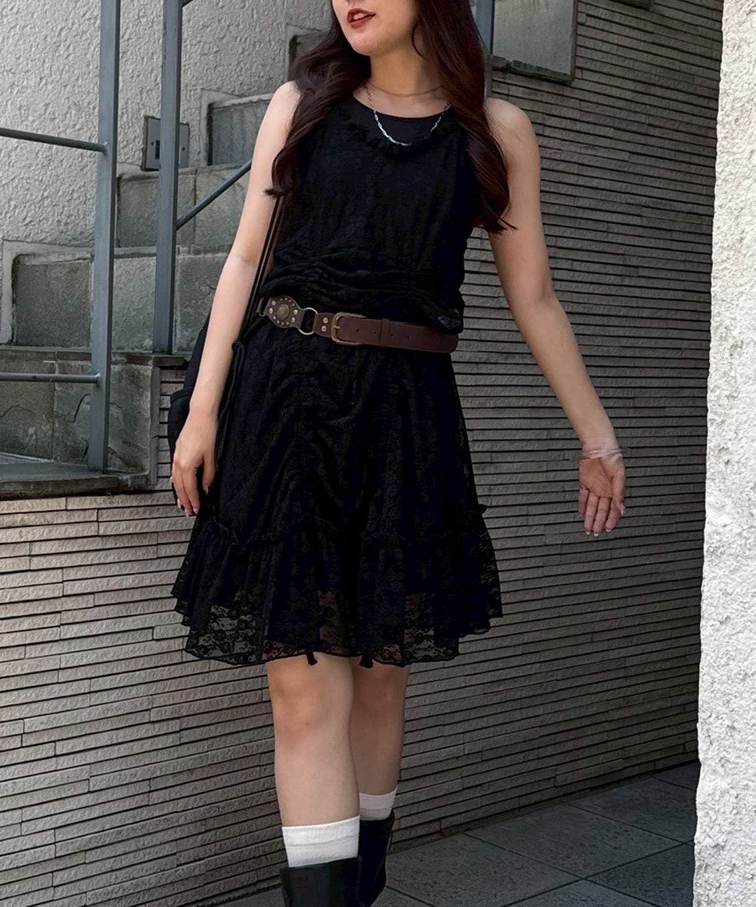 【レイヤードを楽しむならコレ!】レースドロストキャミワンピース