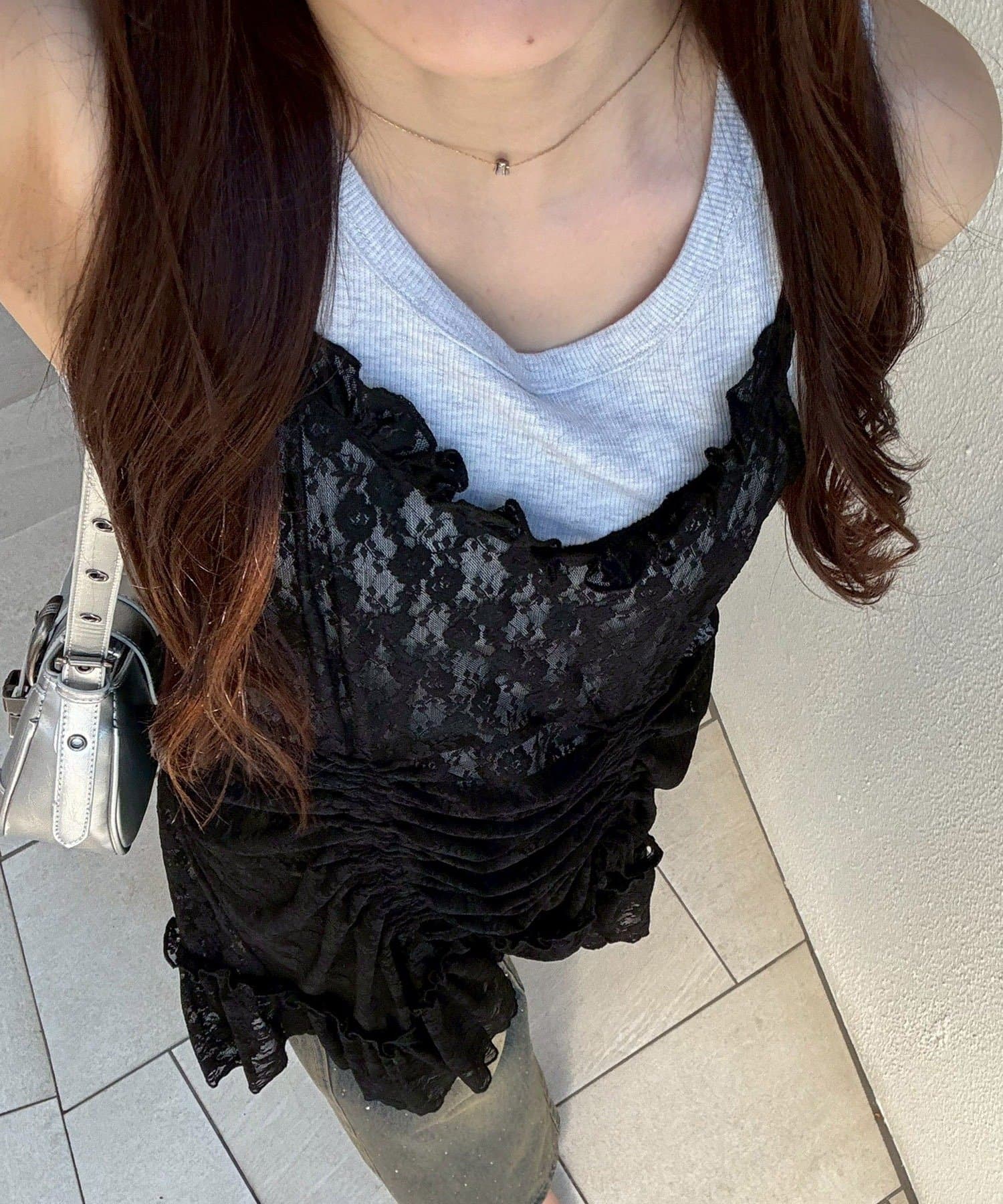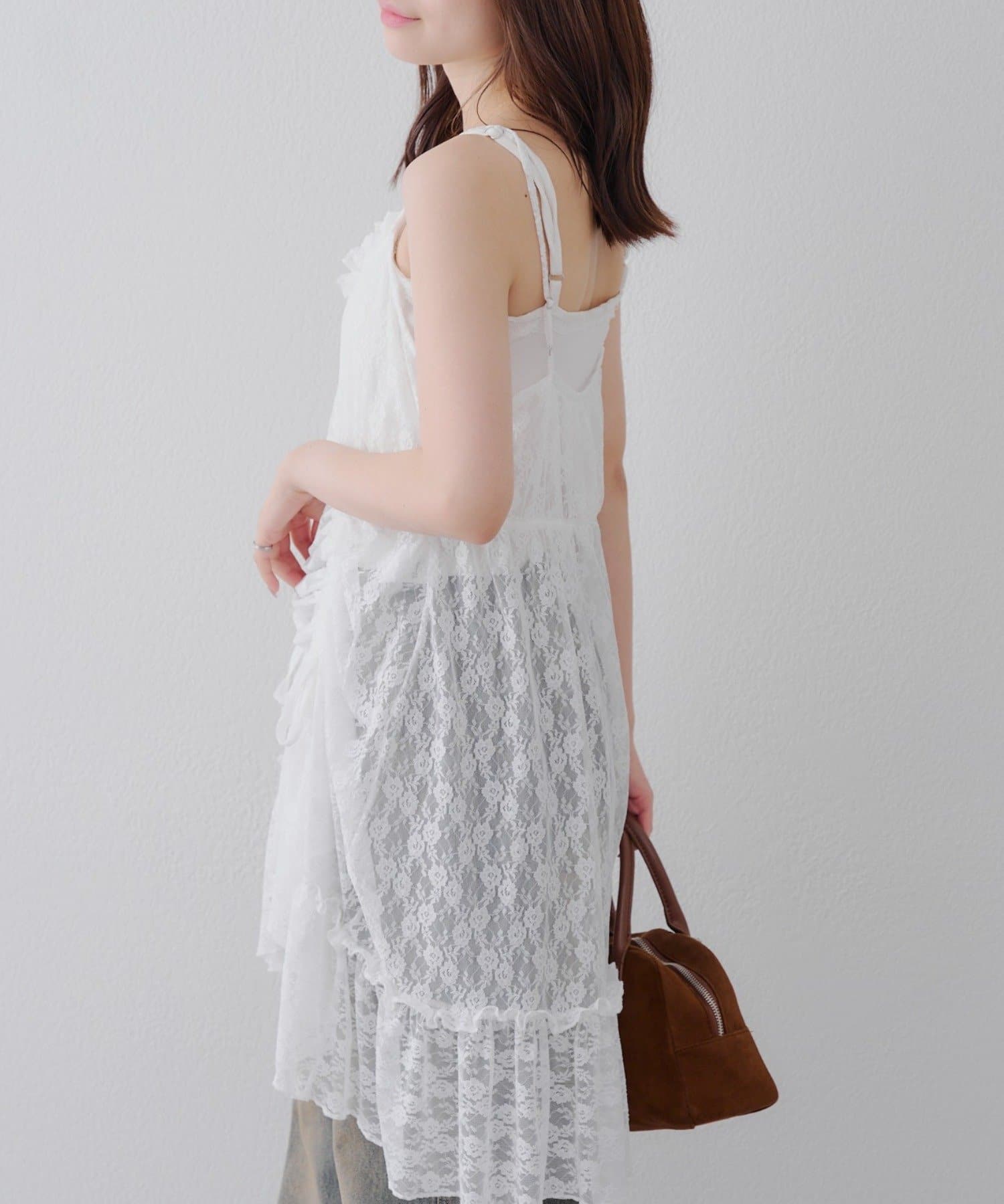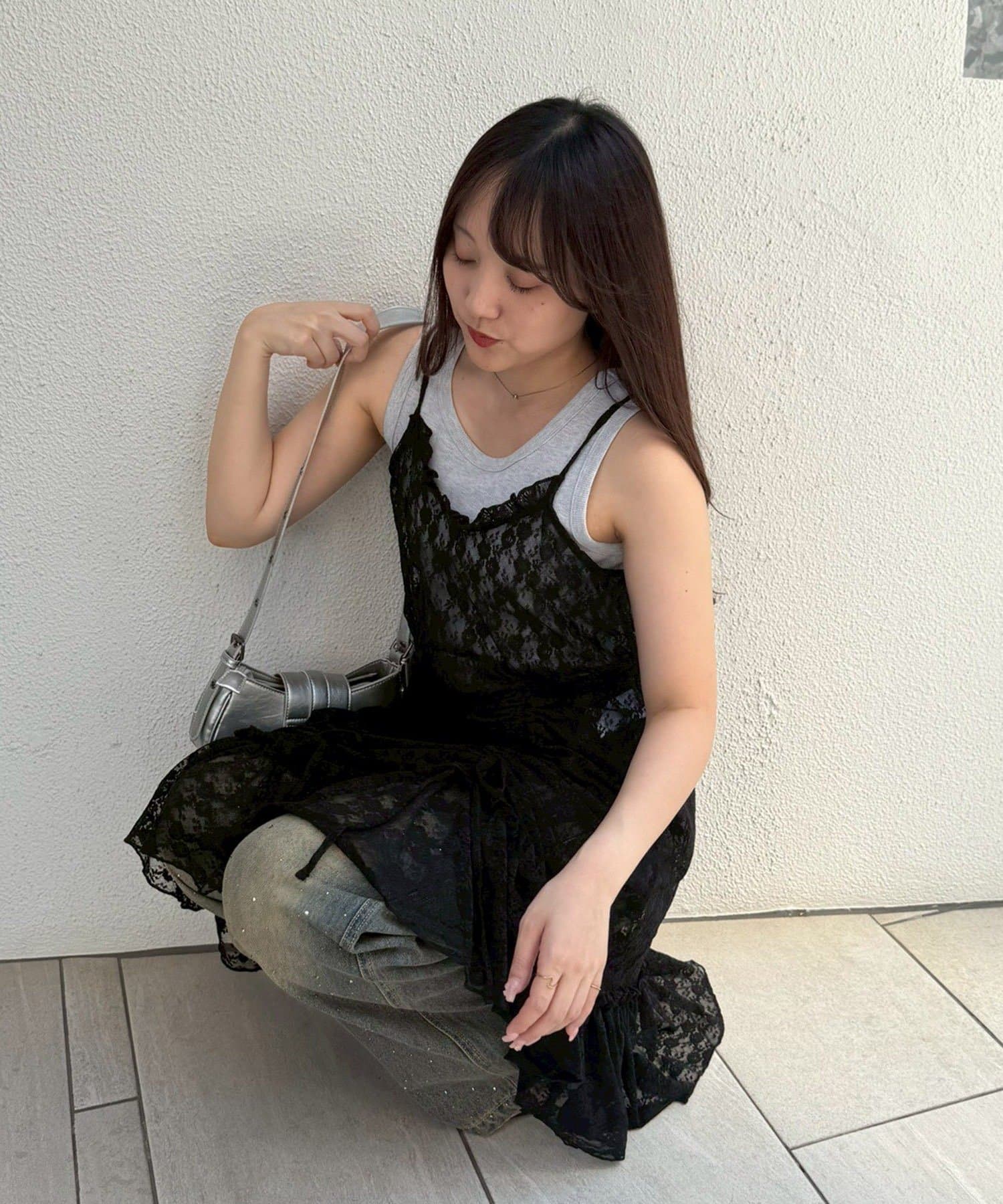 Remind me and forever(リマインドミーアンドフォーエバー) 【レイヤードを楽しむならコレ!】レースドロストキャミワンピース