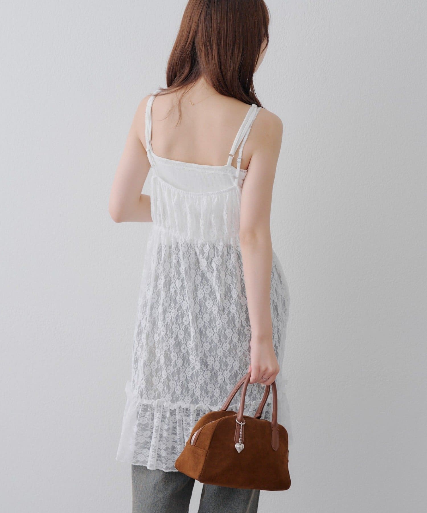 • Remind me and forever(リマインドミーアンドフォーエバー) 【レイヤードを楽しむならコレ!】レースドロストキャミワンピース