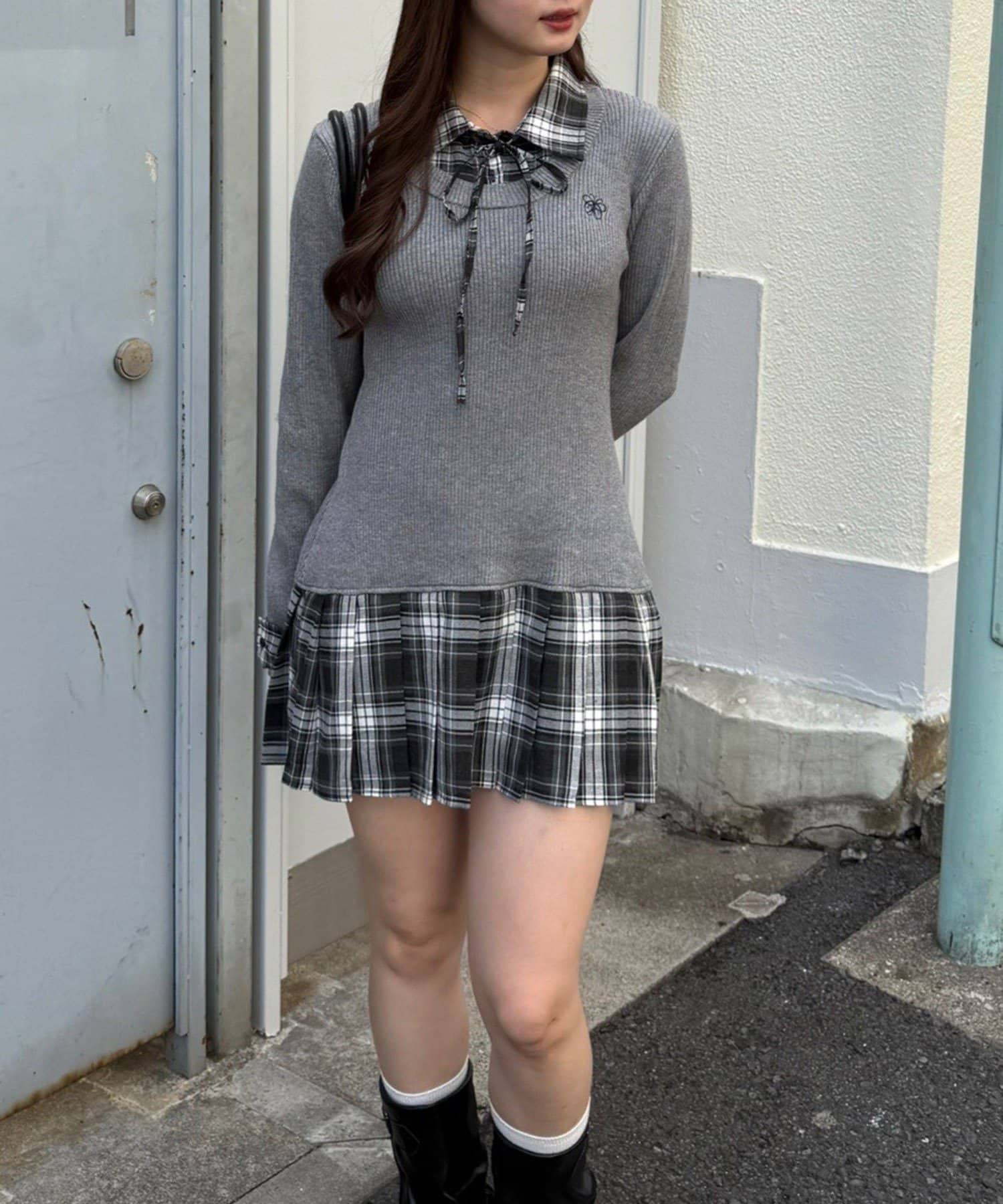 【RMAF】裾プリーツドッキングミニワンピ