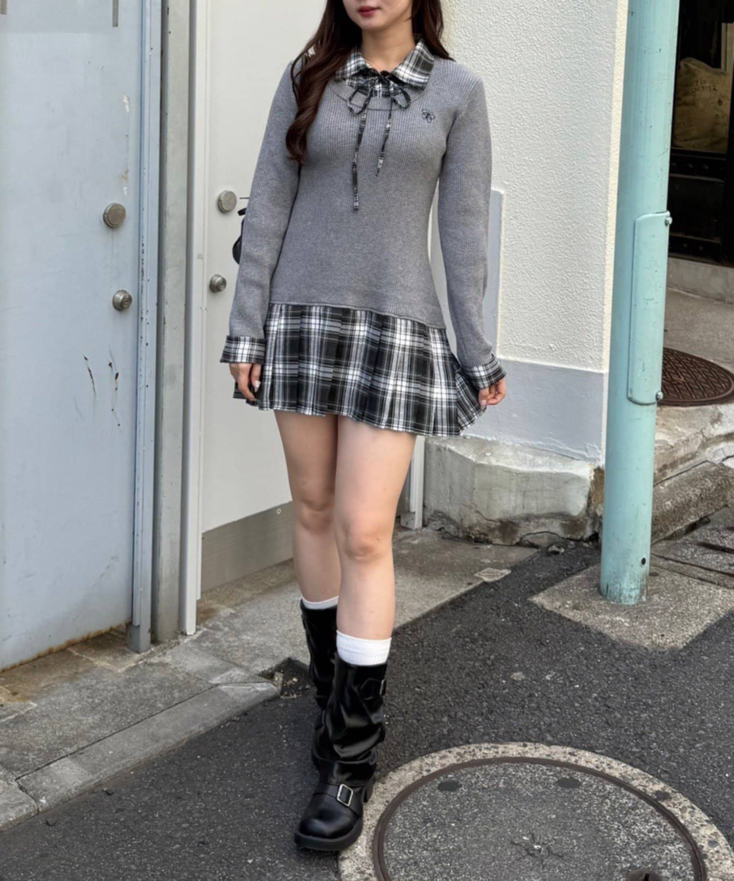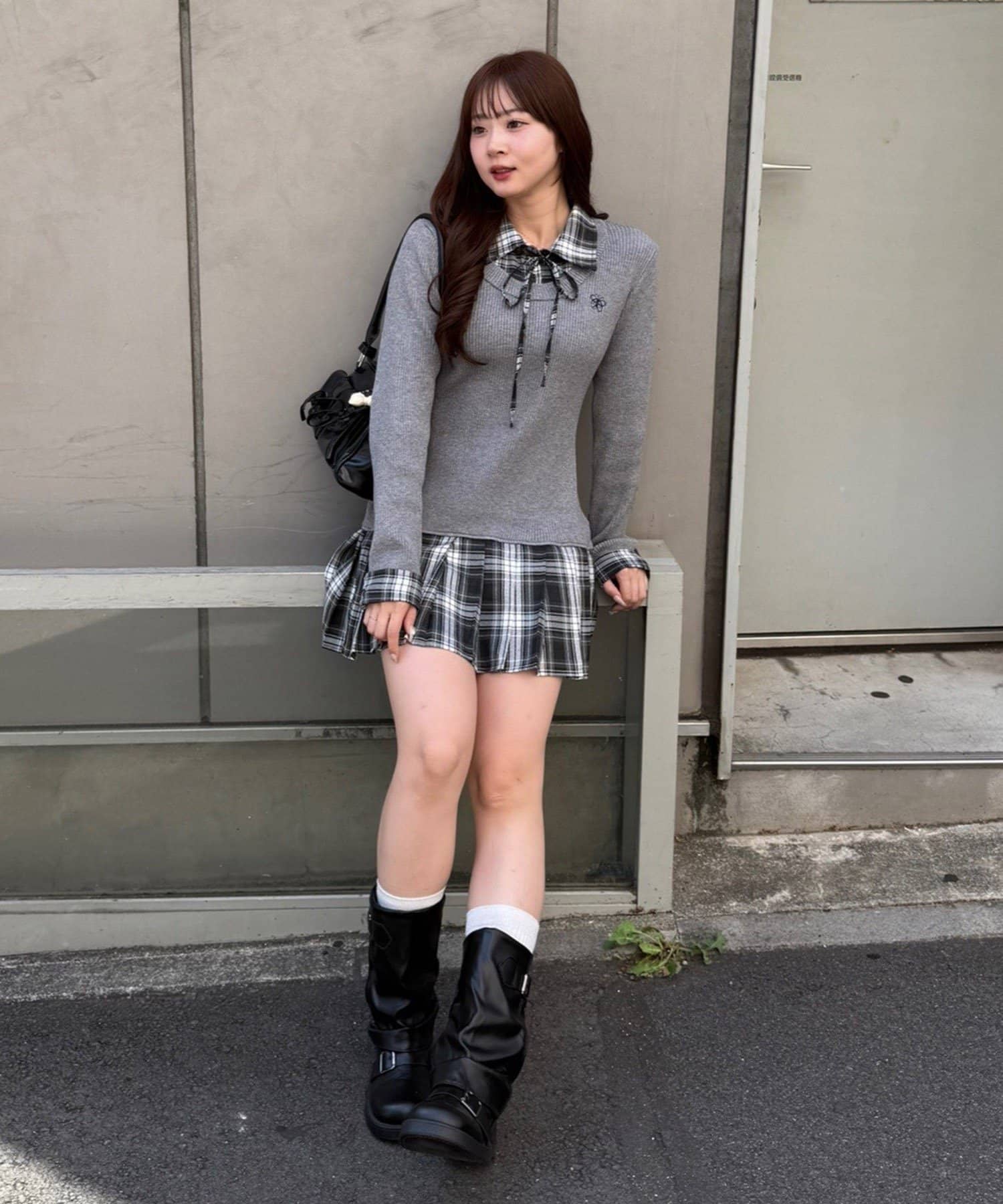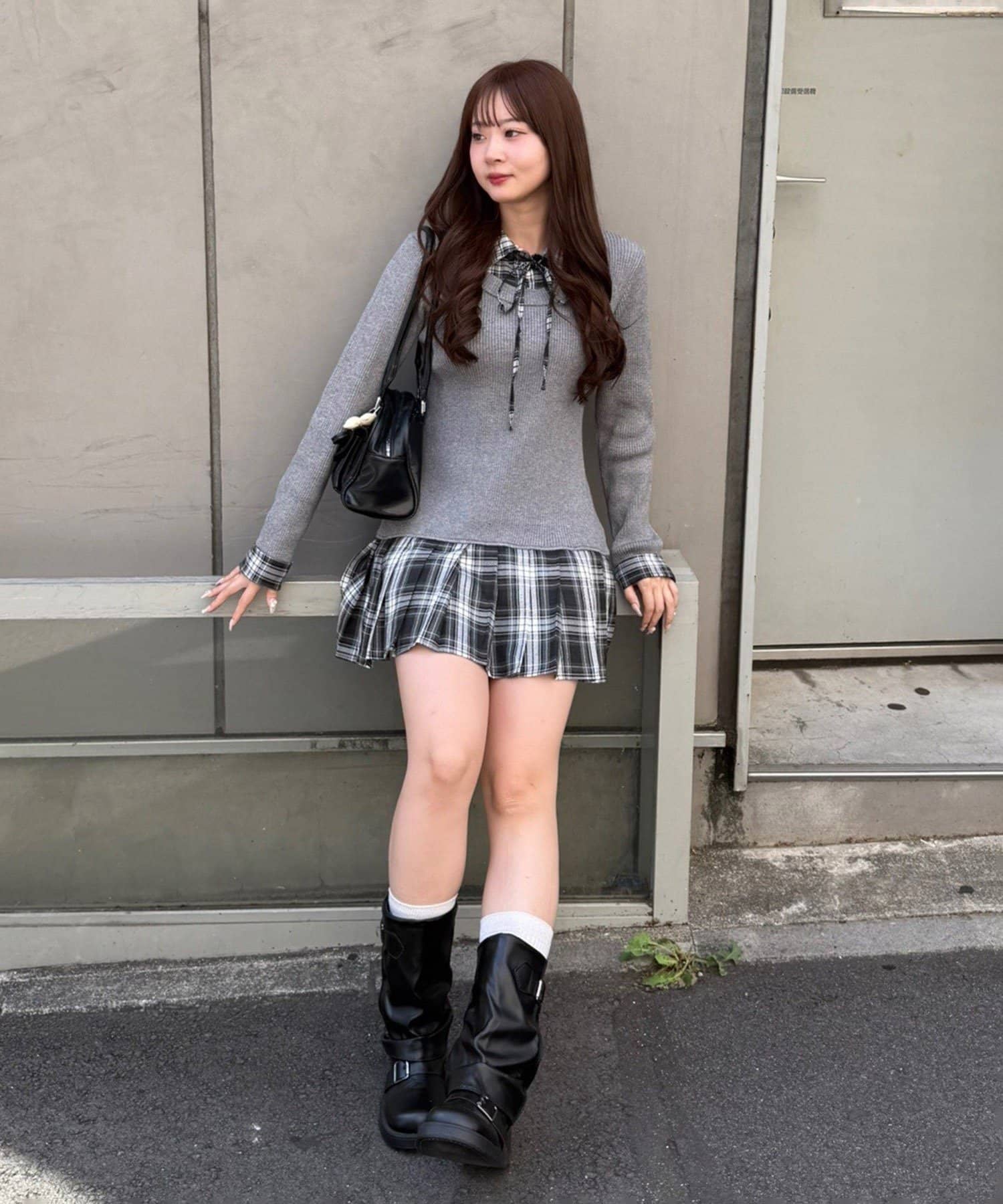 ・ややオーバーなロングブーツ合わせで華奢見えを狙うのがオススメ