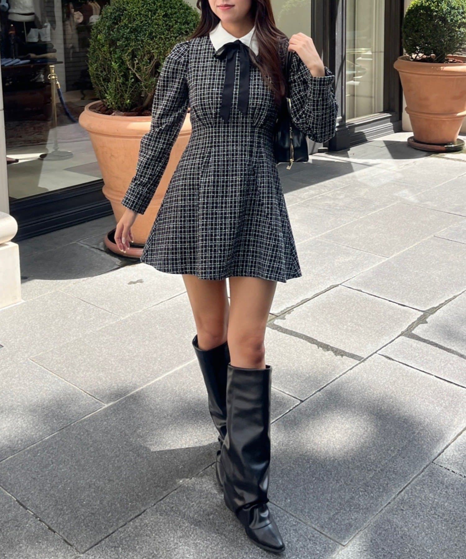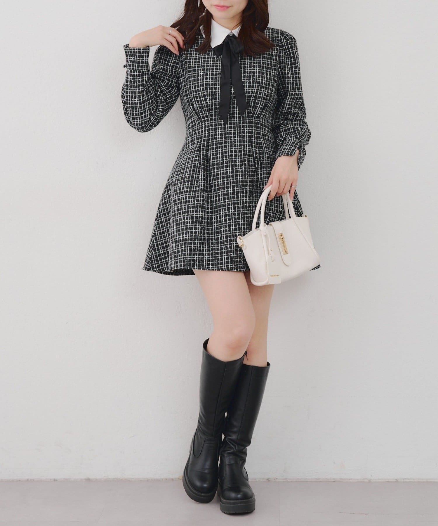 【Tweed Collection】ツイード配色衿ミニワンピース