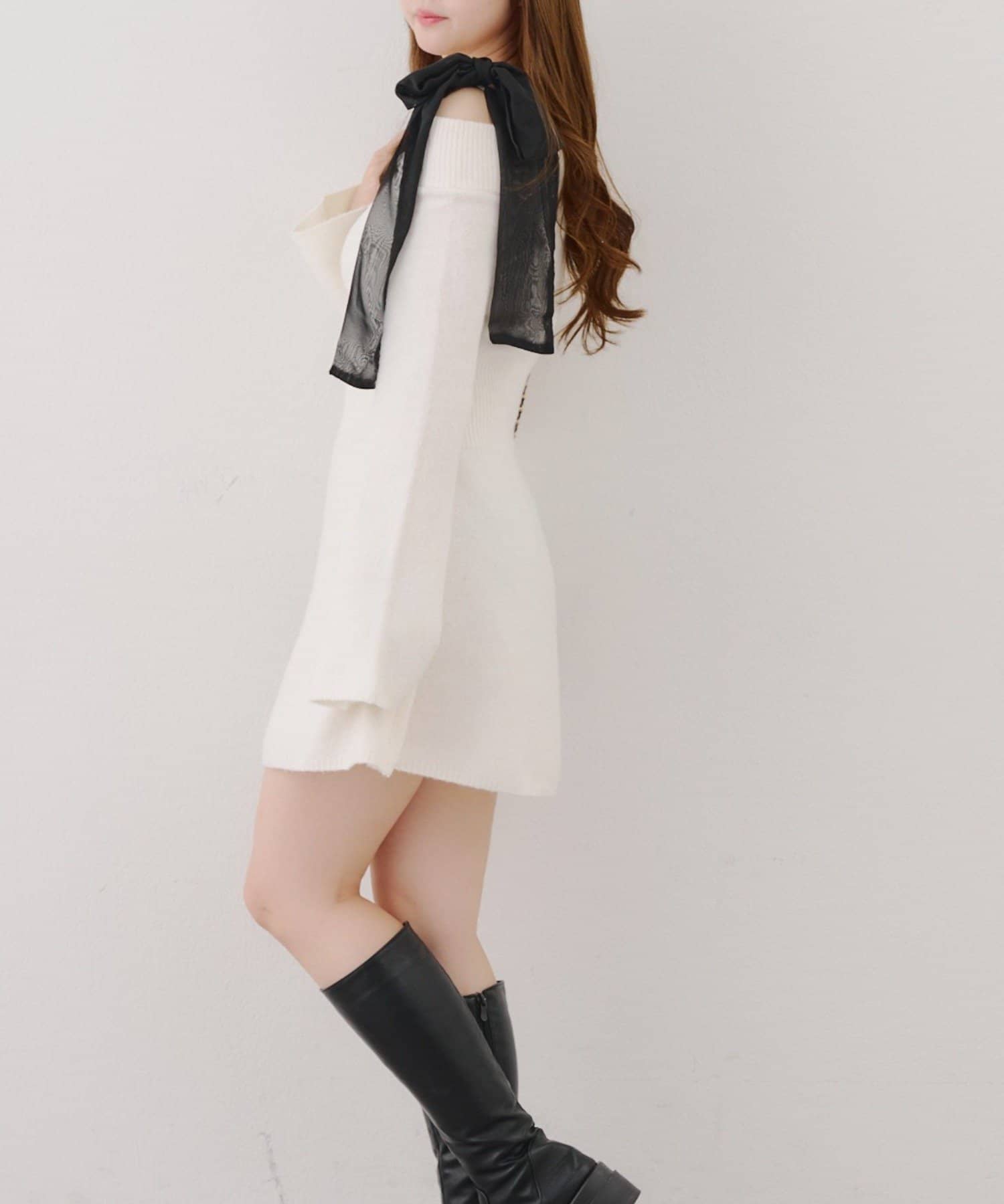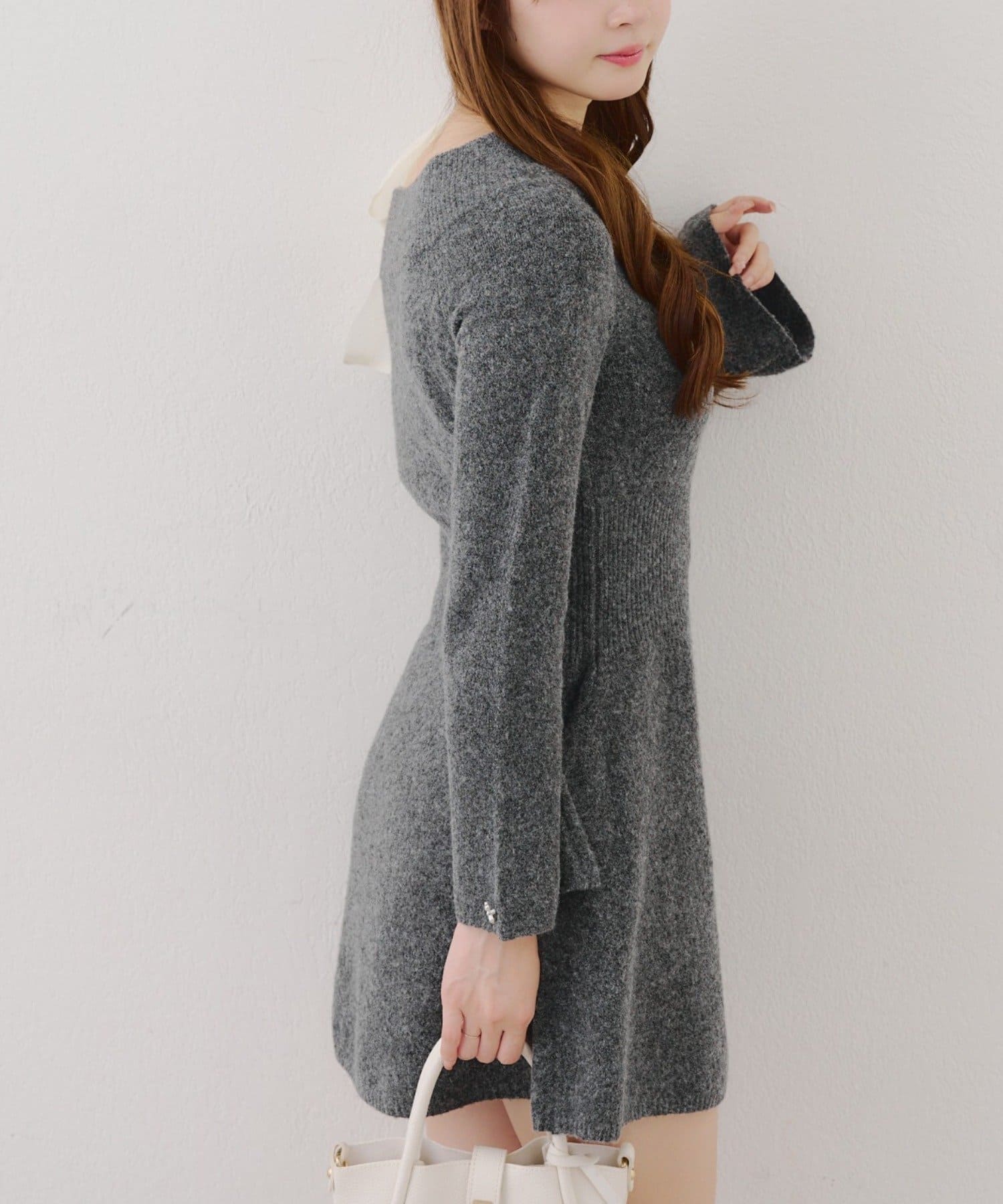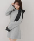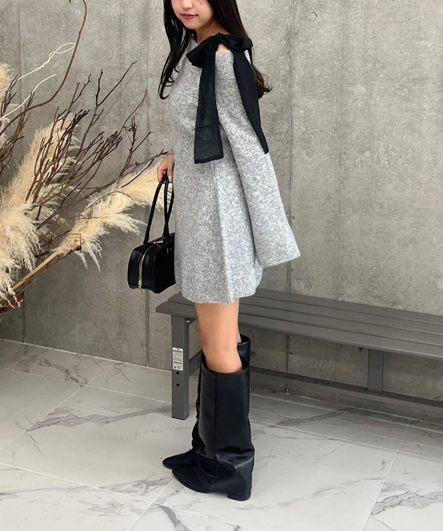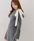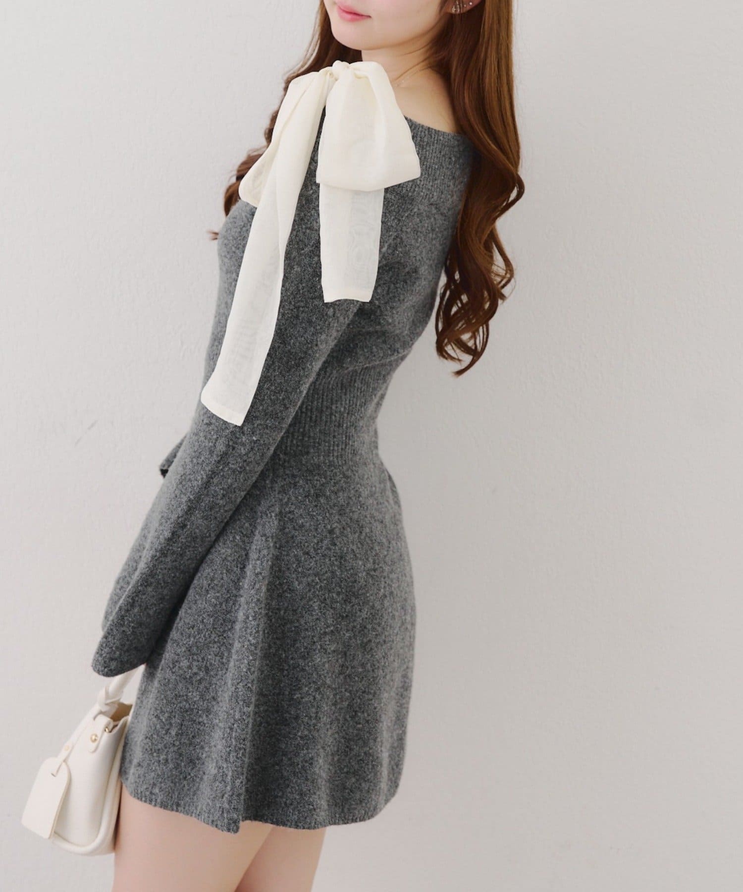 ・リボンは取り外しができ、マルチWAYで着こなしを楽しめるニットワンピース