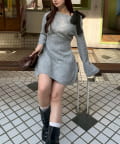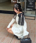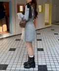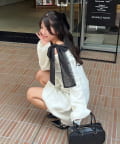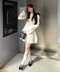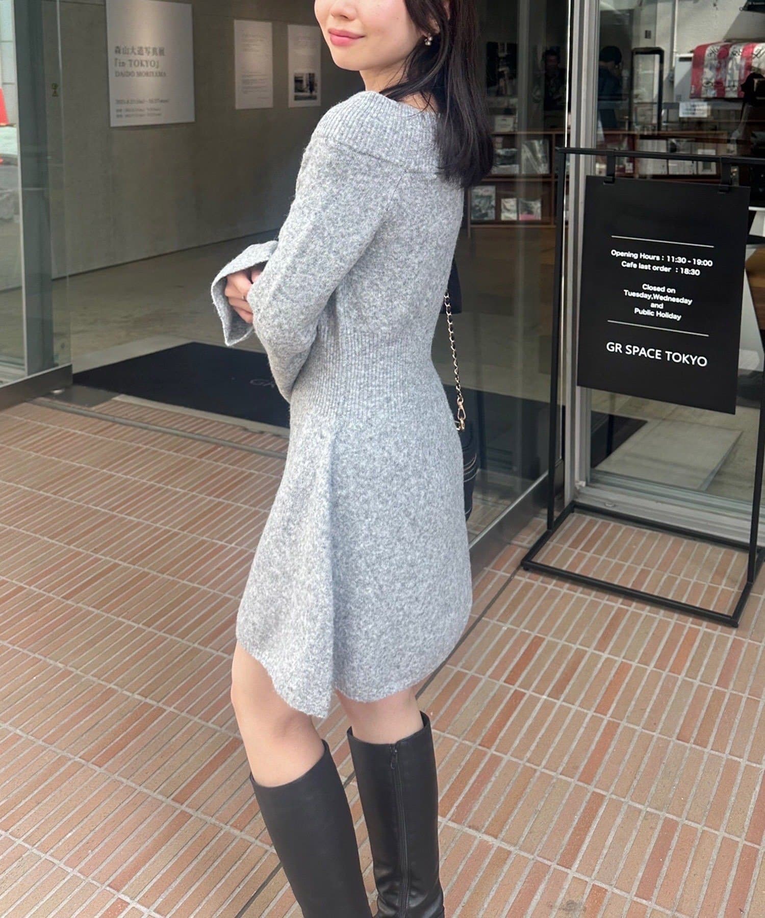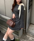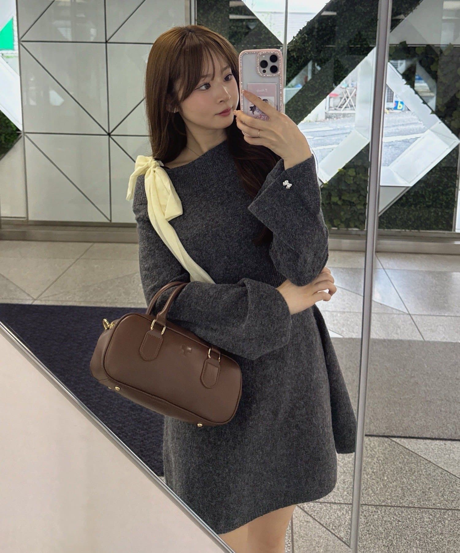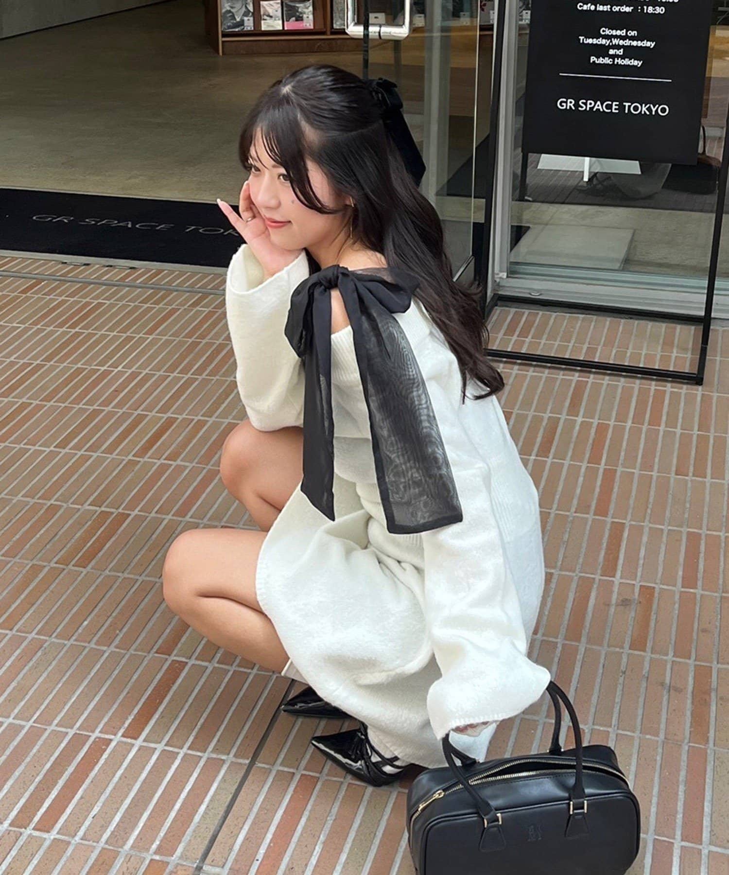 ・リボンは取り外しができ、マルチWAYで着こなしを楽しめるニットワンピース
