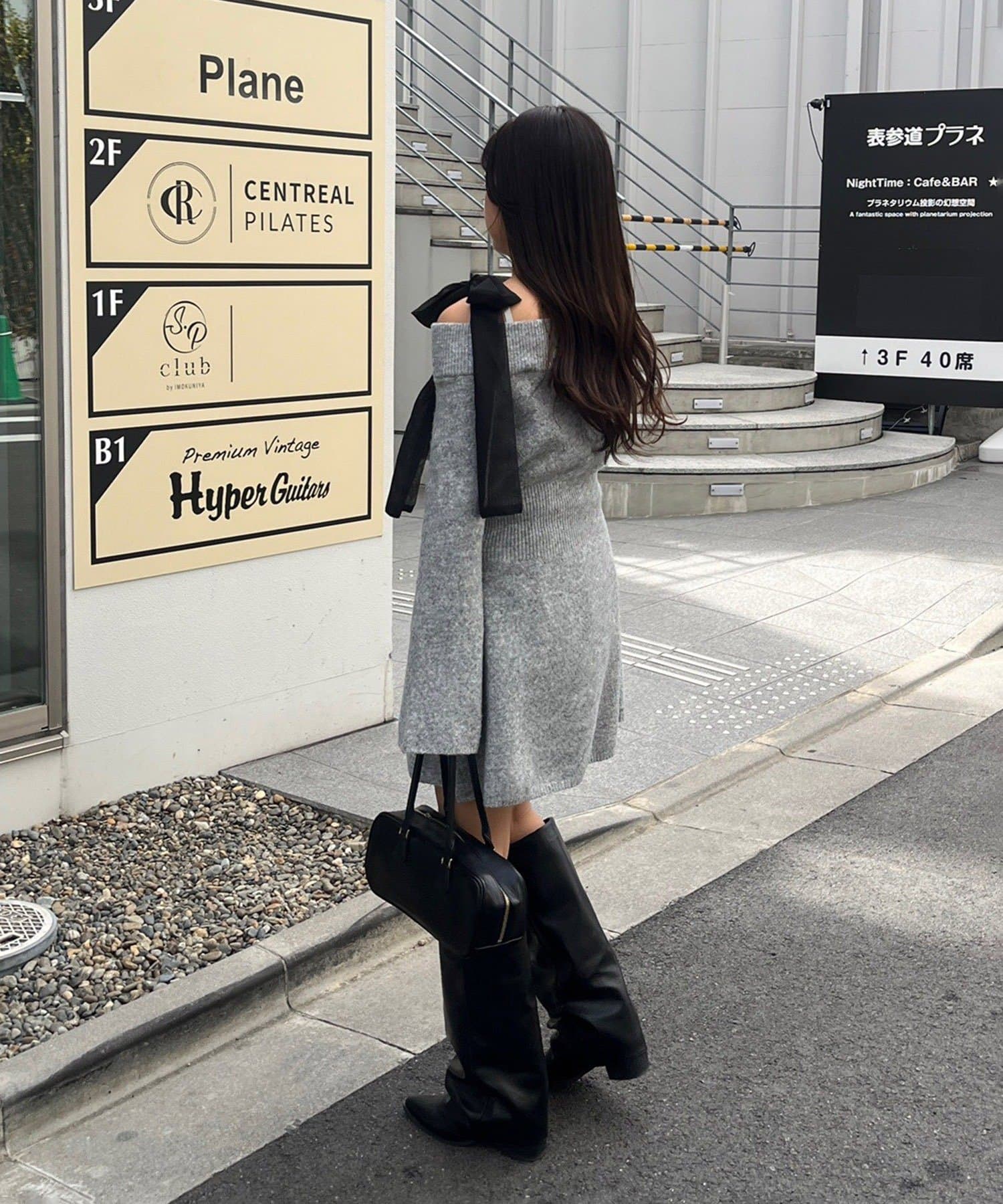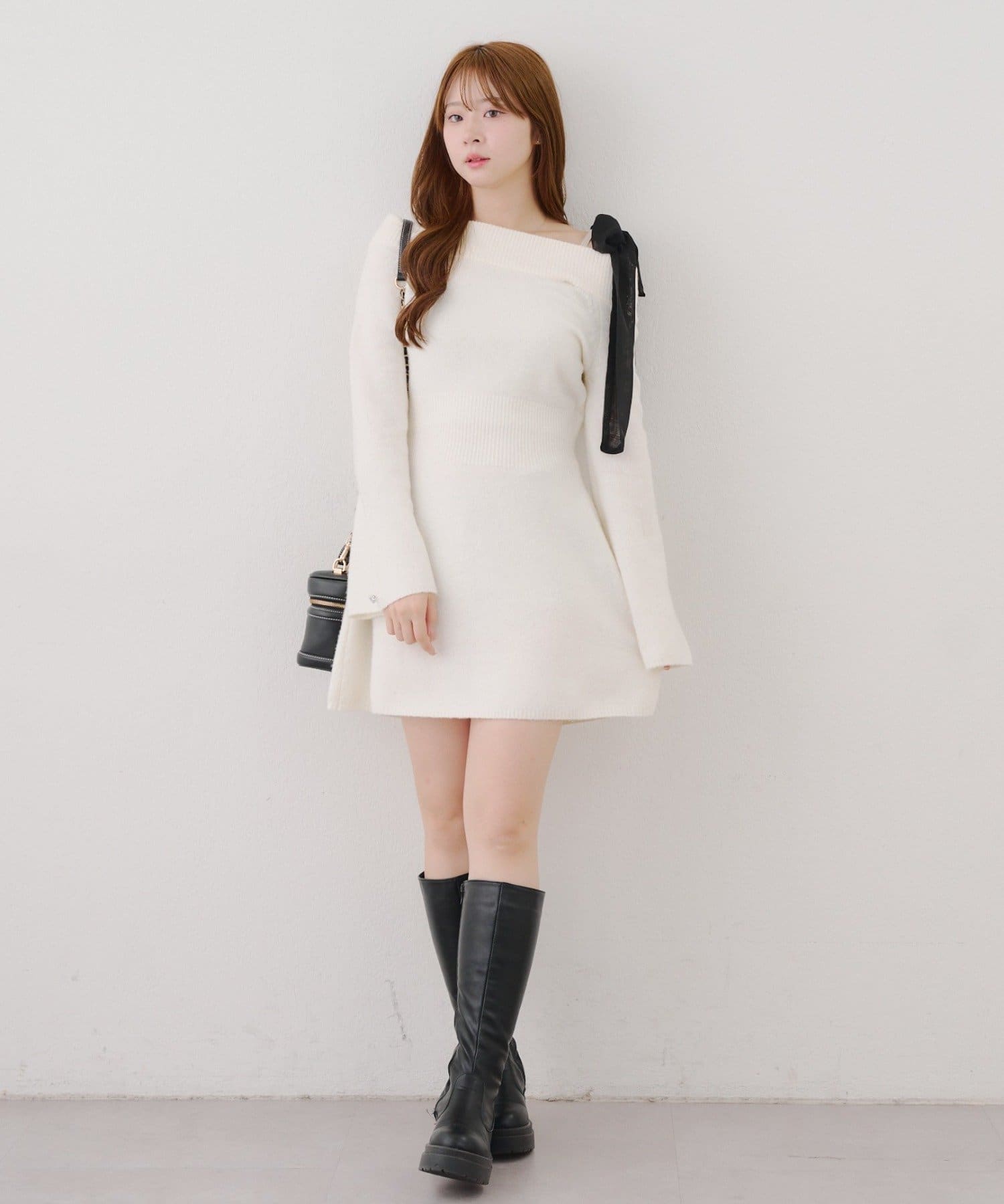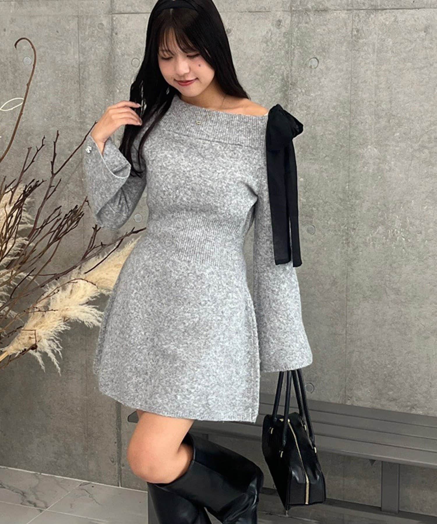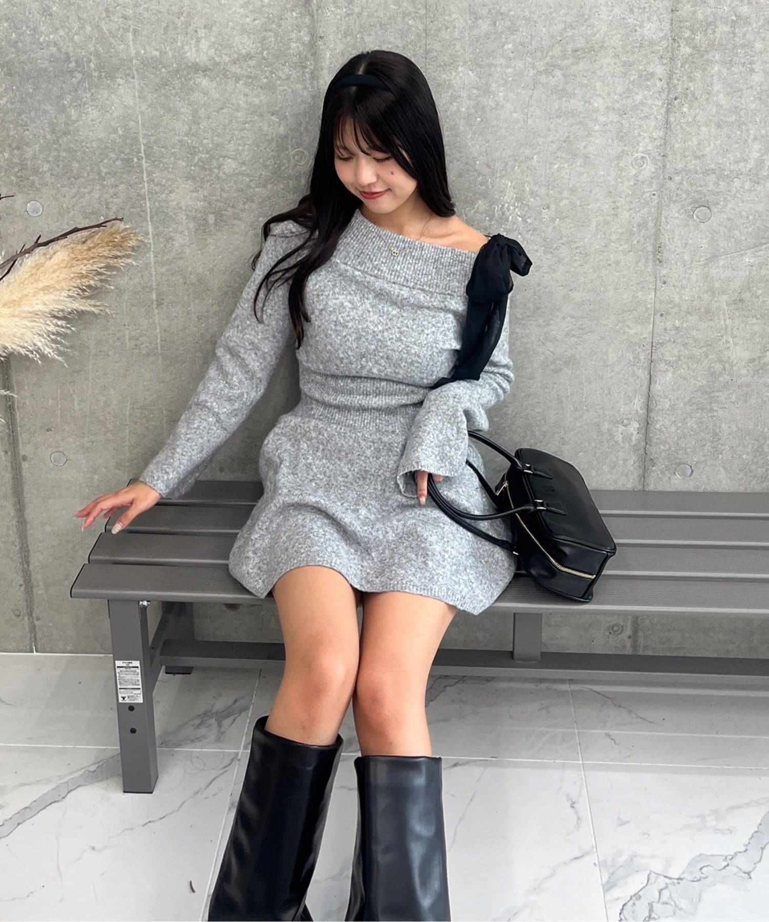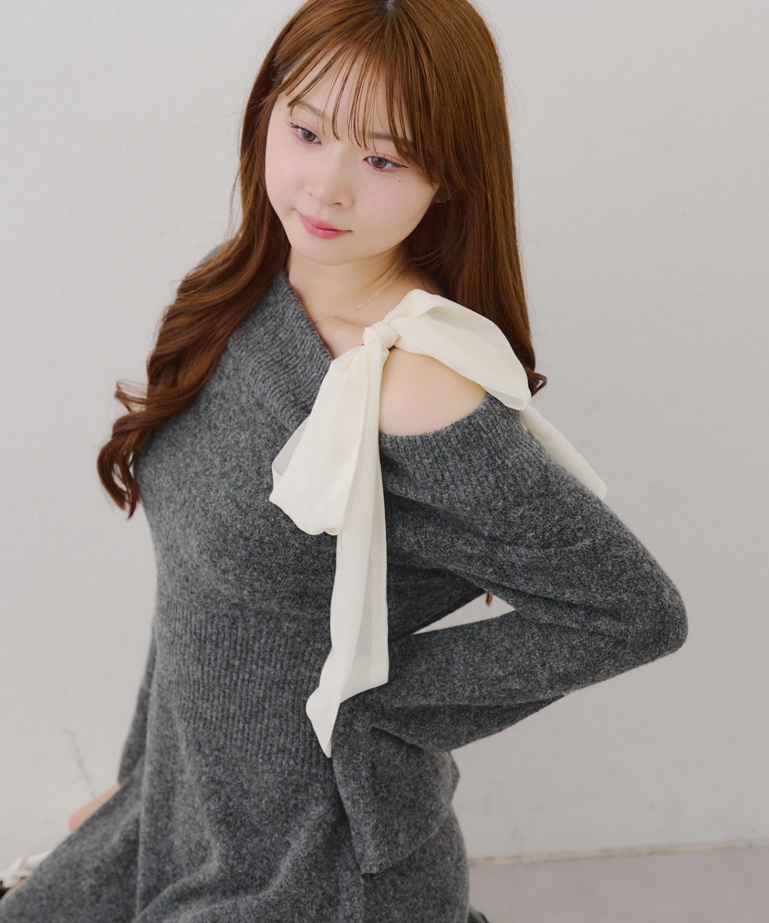 Remind me and forever(リマインドミーアンドフォーエバー) 【Ribbon Collection】マルチWAYオフショルニットワンピース