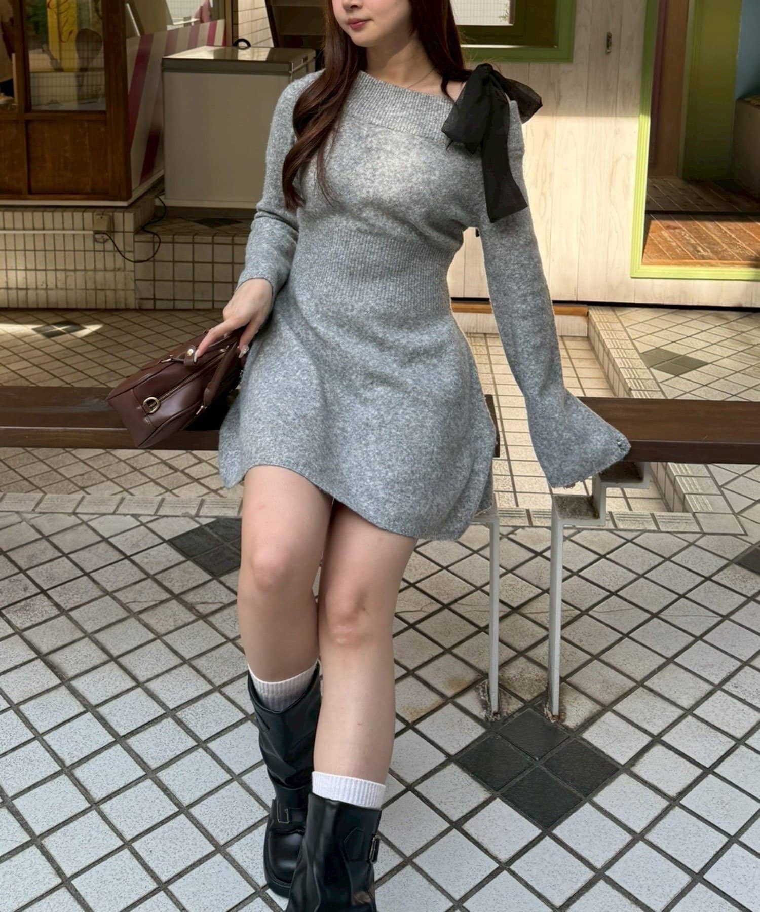 TOP > Remind me and forever > レディース > ワンピース > ワンピース > 【Ribbon Collection】マルチWAYオフショルニットワンピース