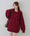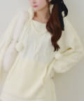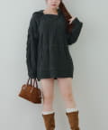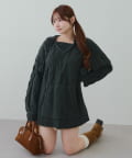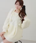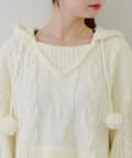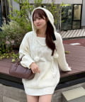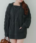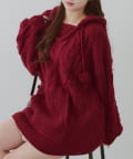 ・ケーブル編みと大きめフーディーでシーズンムードを高めてくれるあざとニットワンピース