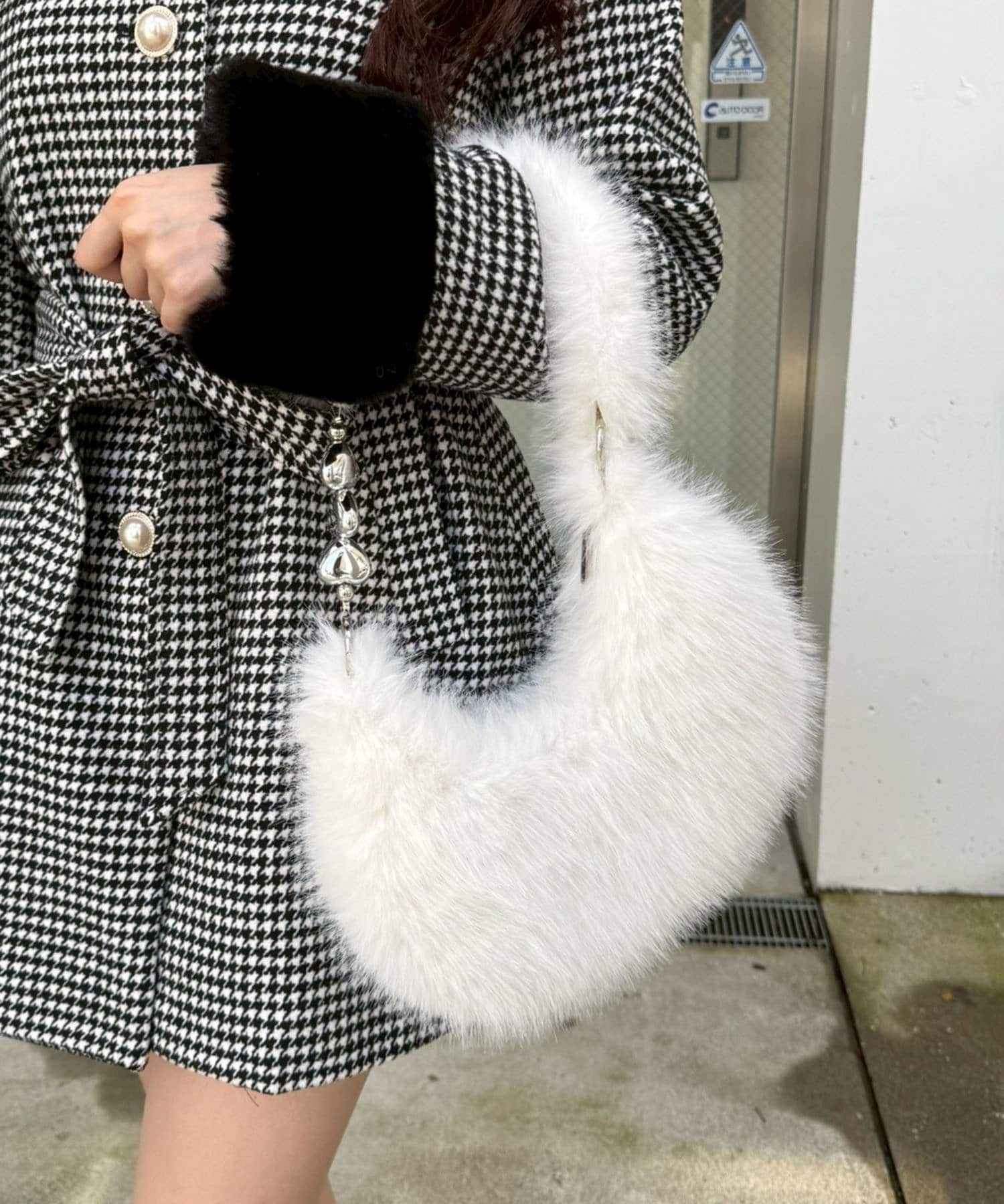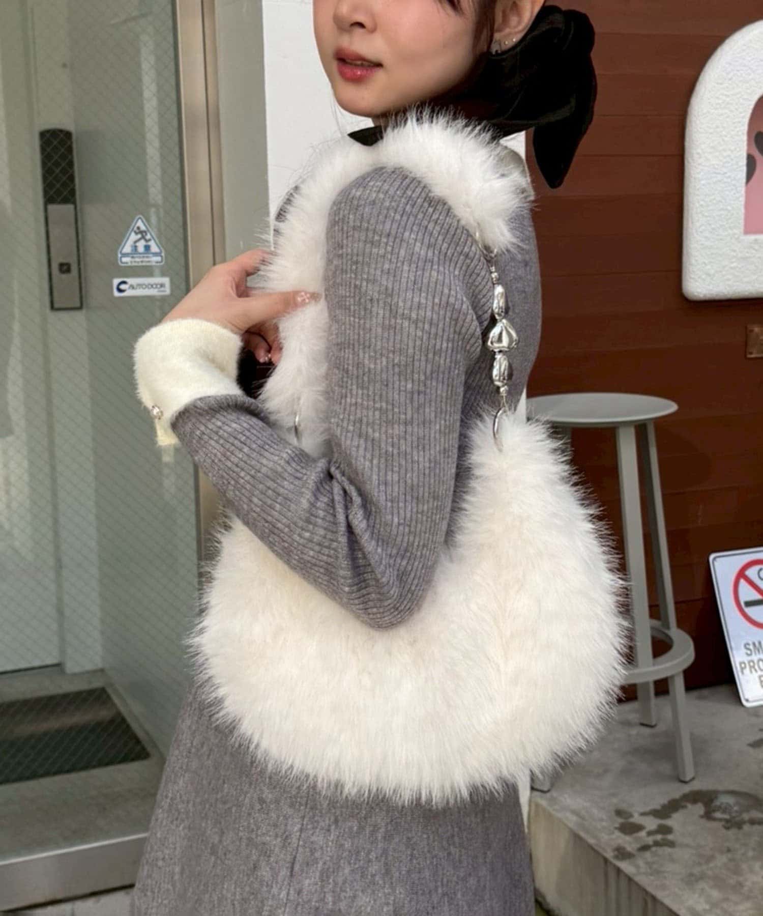 ・持ち手のアシンメトリーデザインがおしゃれなファーバッグ