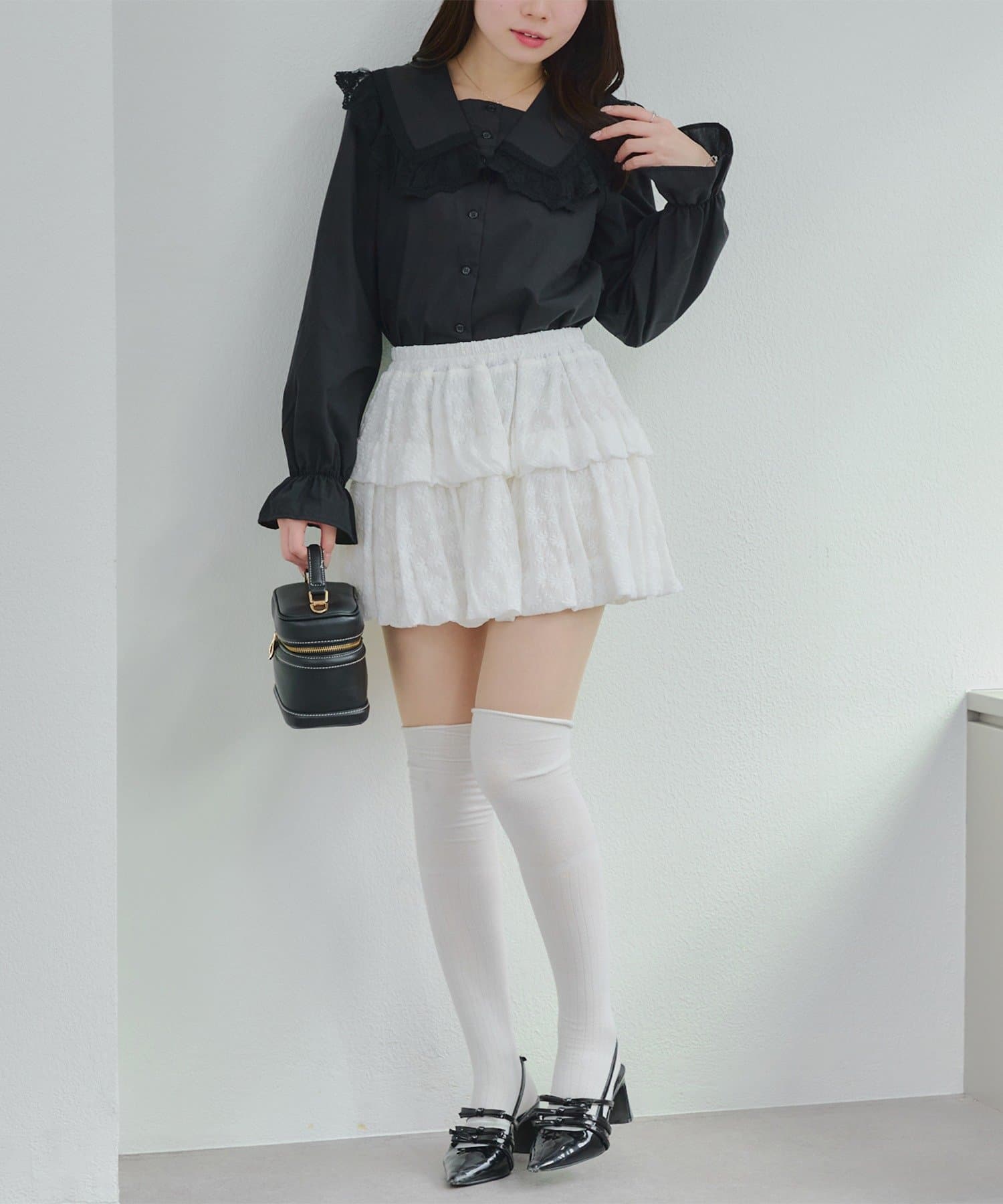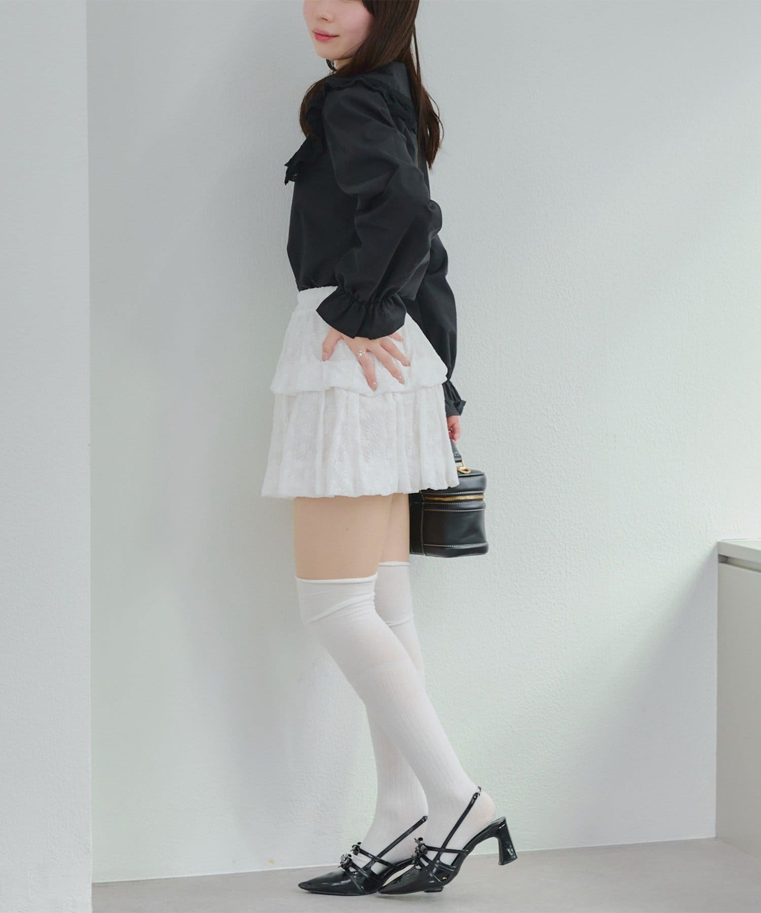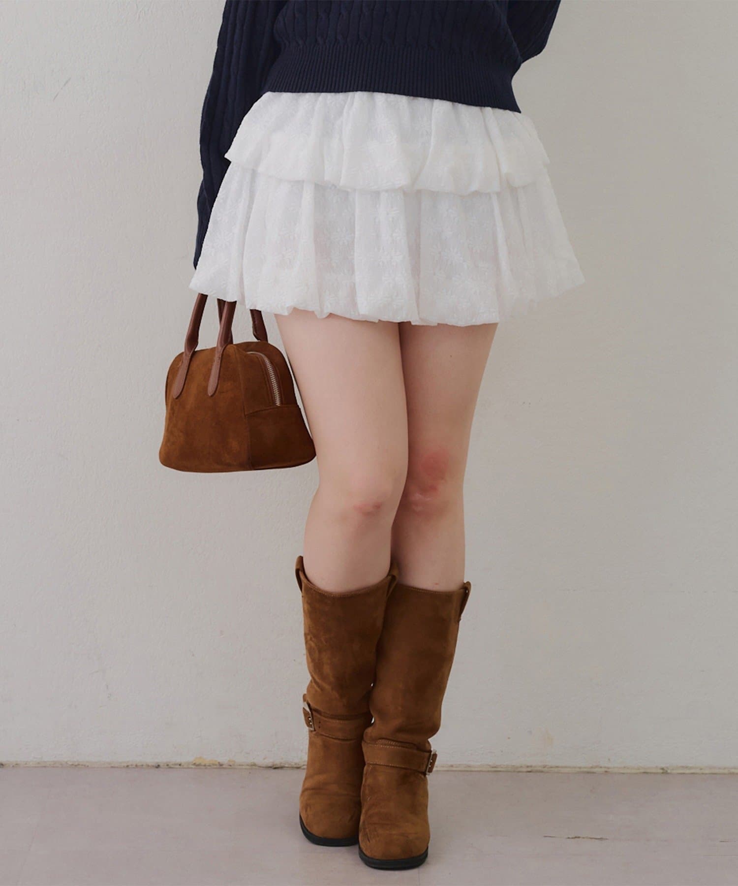 ・広がり過ぎないボリューム感の2段ティアードが脚を華奢に見せてくれるミニスカート