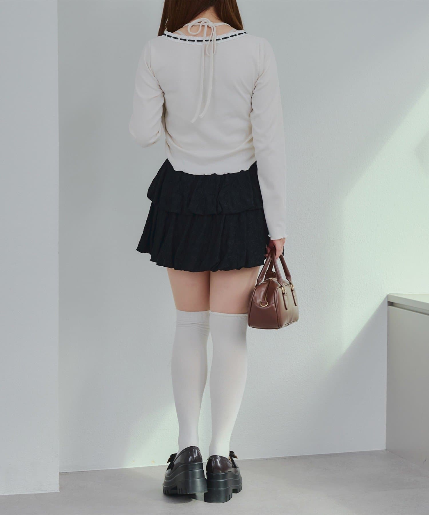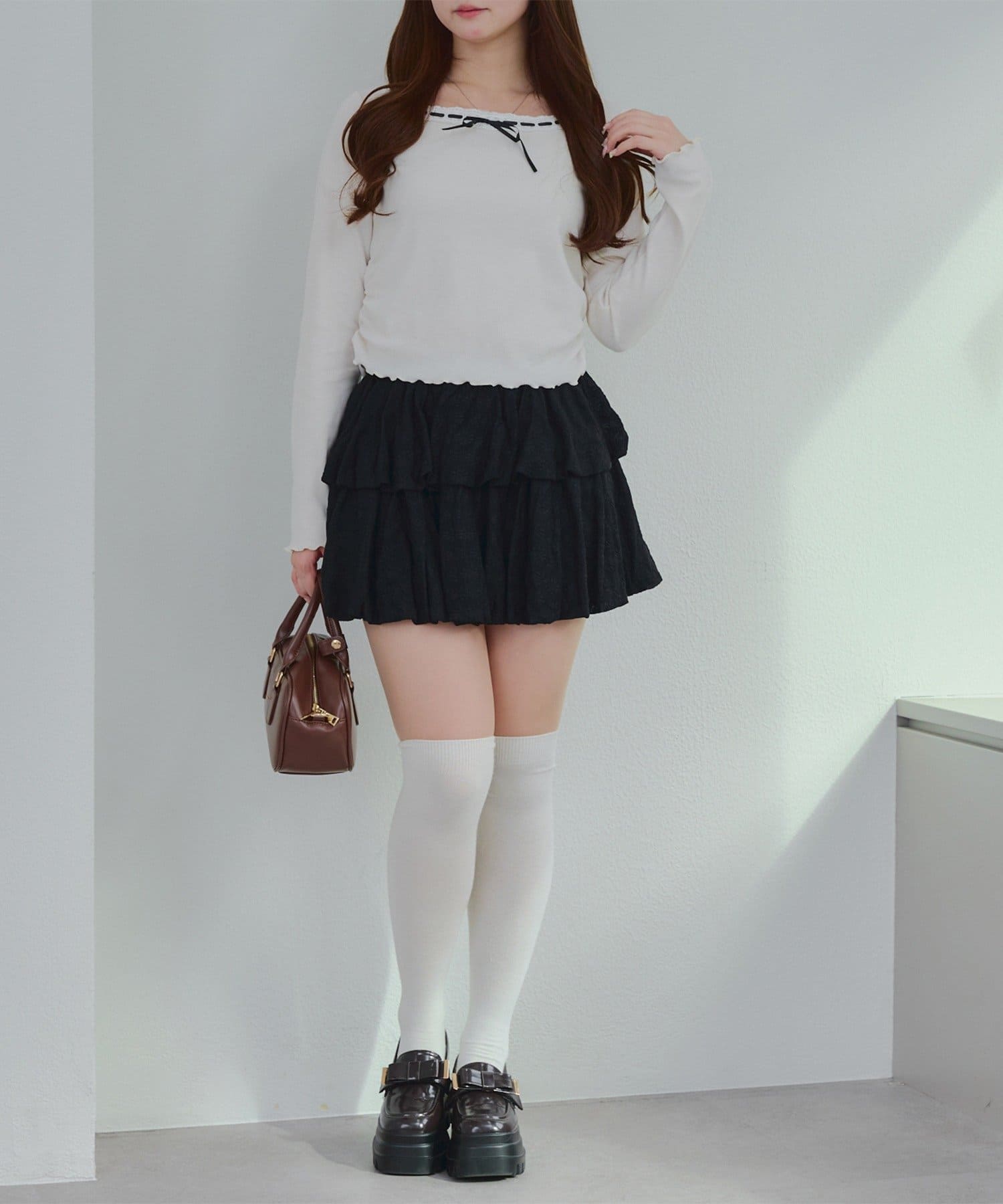 ・広がり過ぎないボリューム感の2段ティアードが脚を華奢に見せてくれるミニスカート