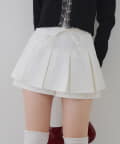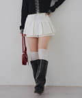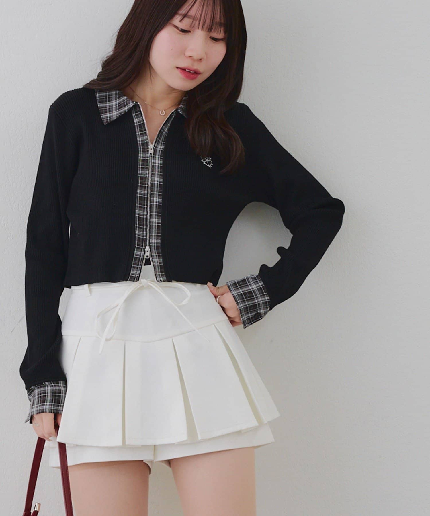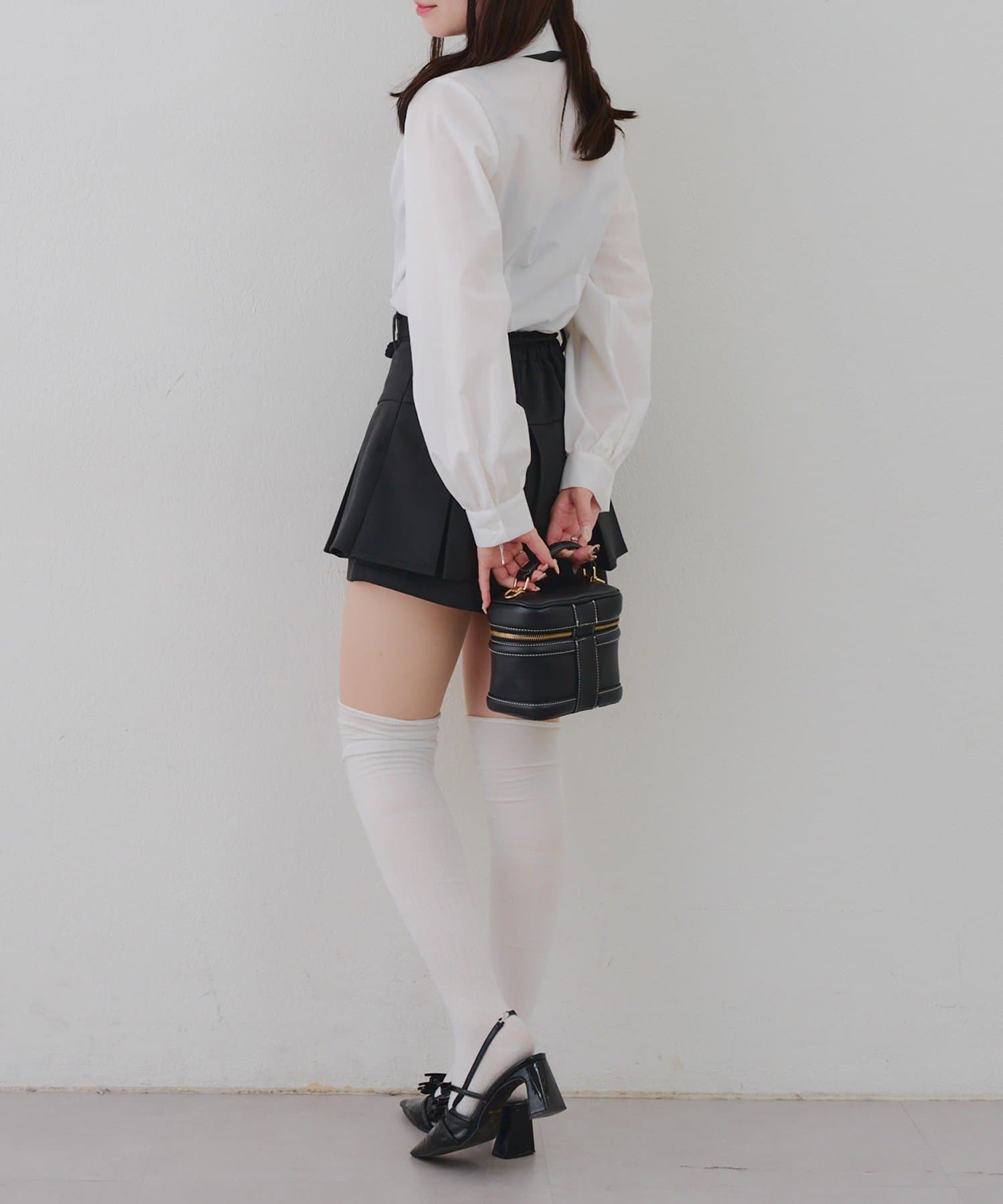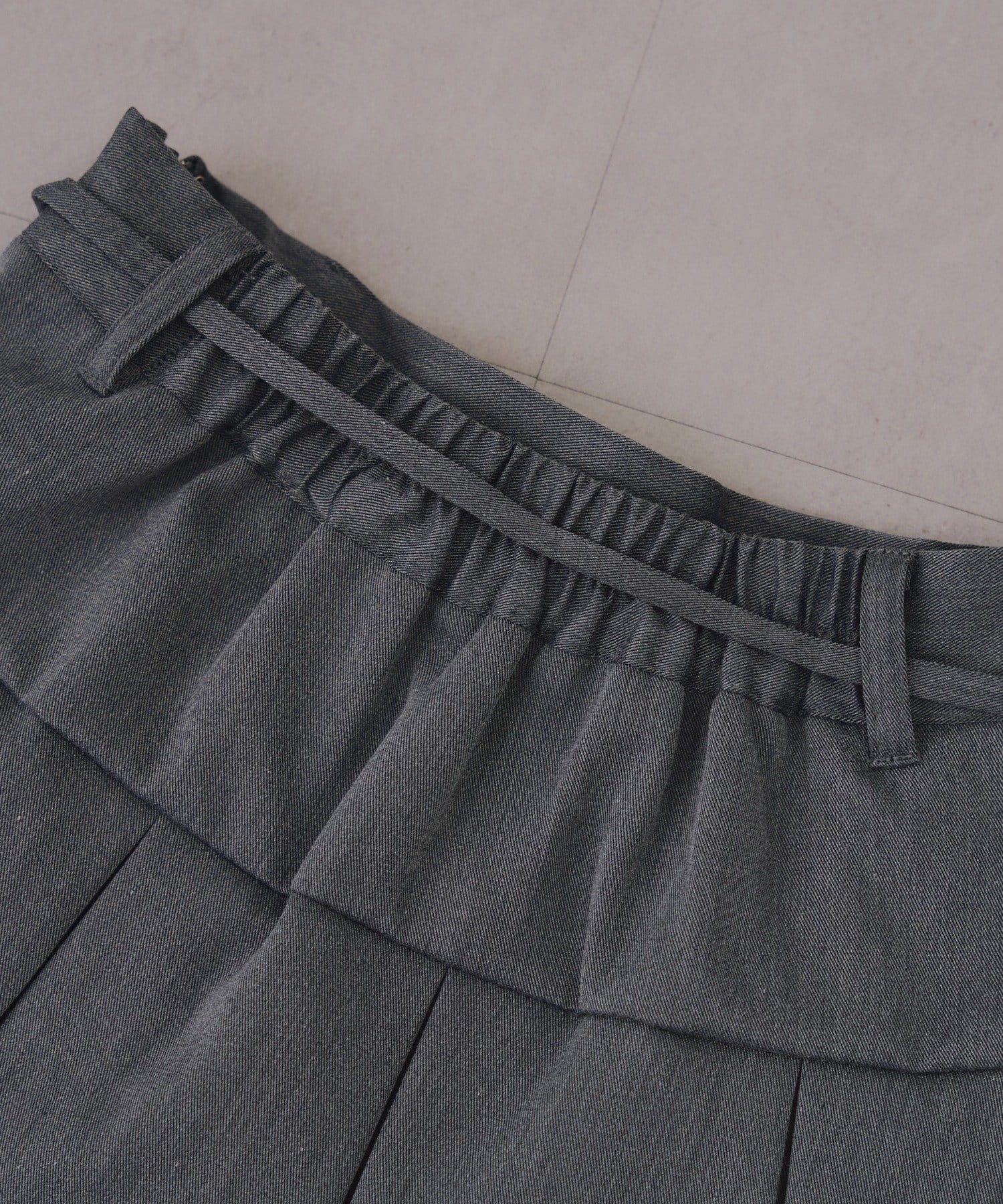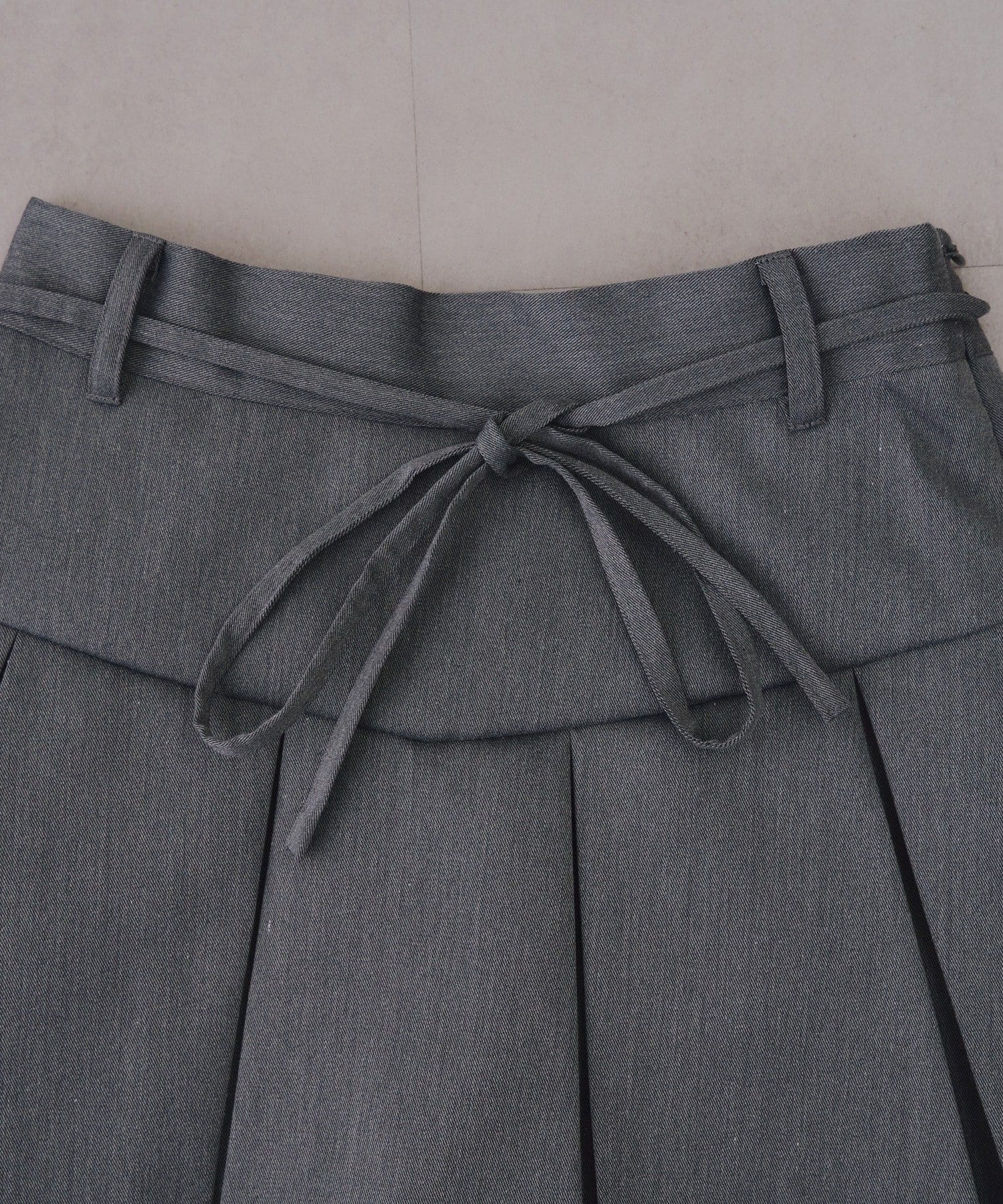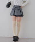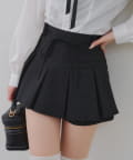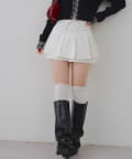 ・ウエストのフロントにあしらったリボンがポイントのミニプリーツスカパン。
