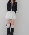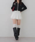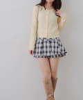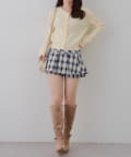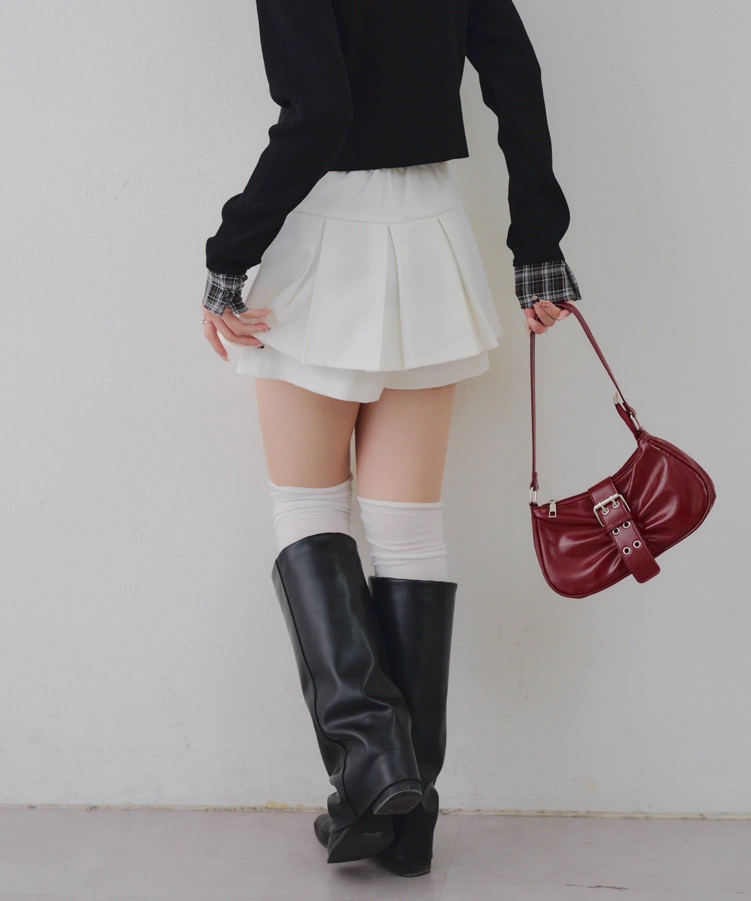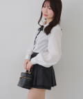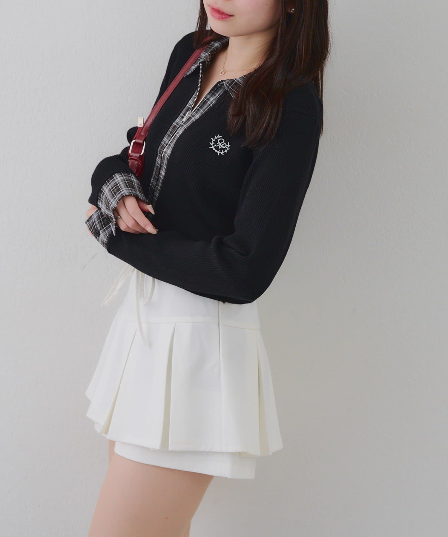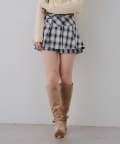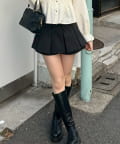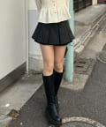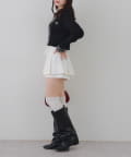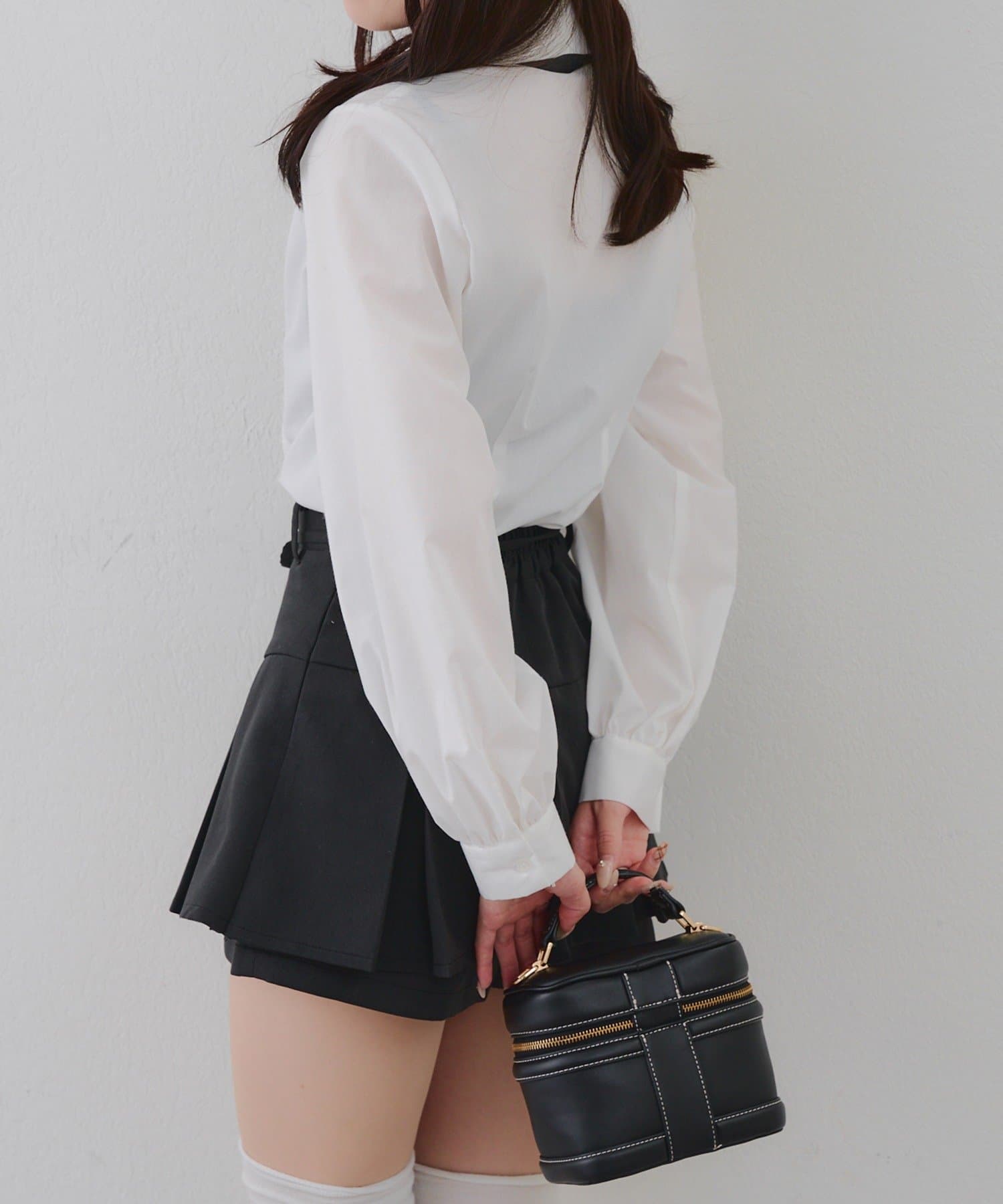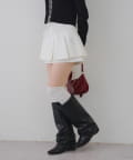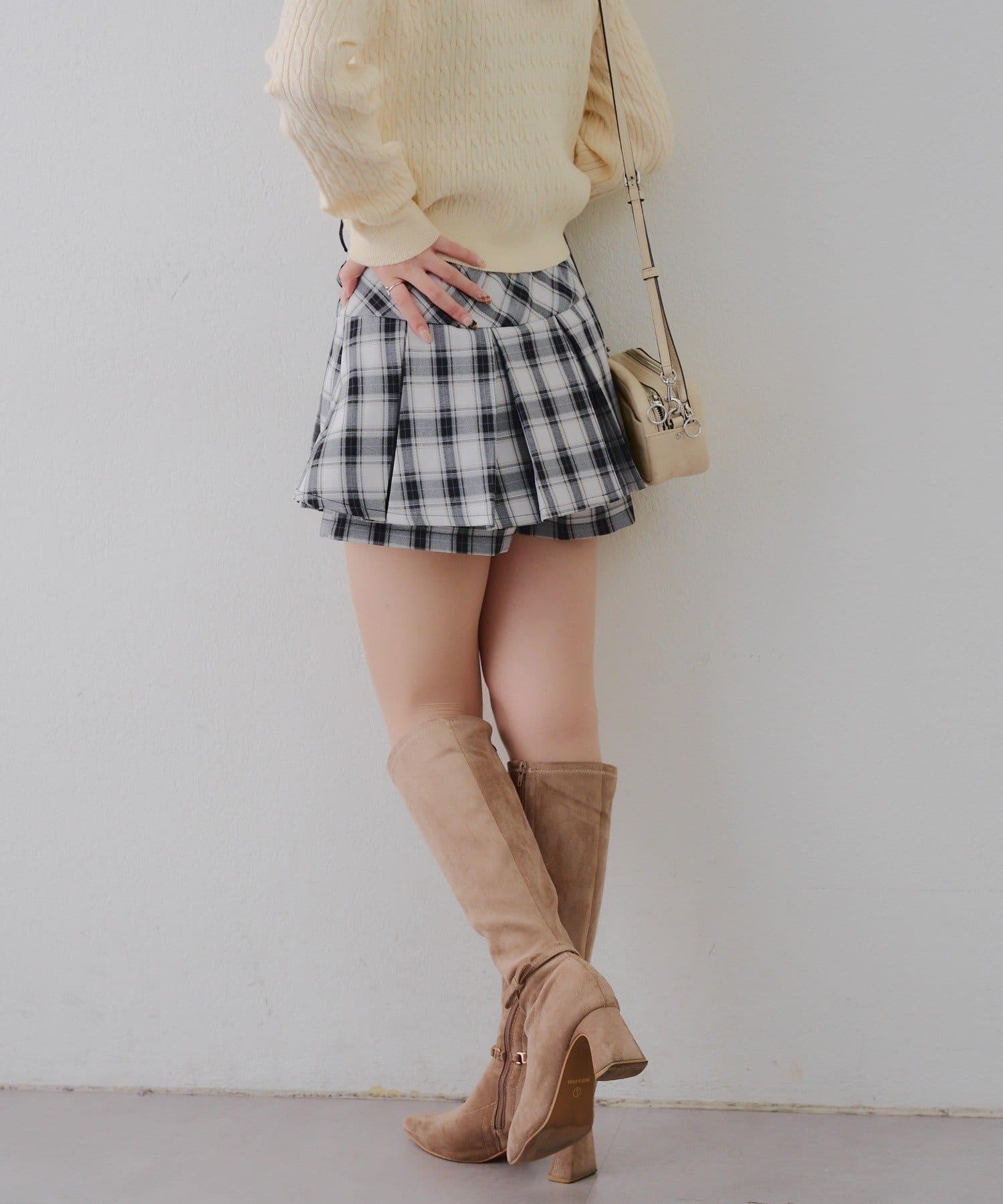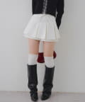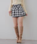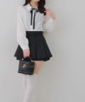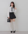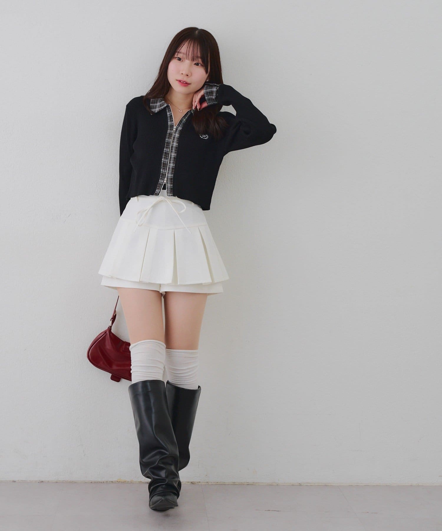 ・ウエストのフロントにあしらったリボンがポイントのミニプリーツスカパン。