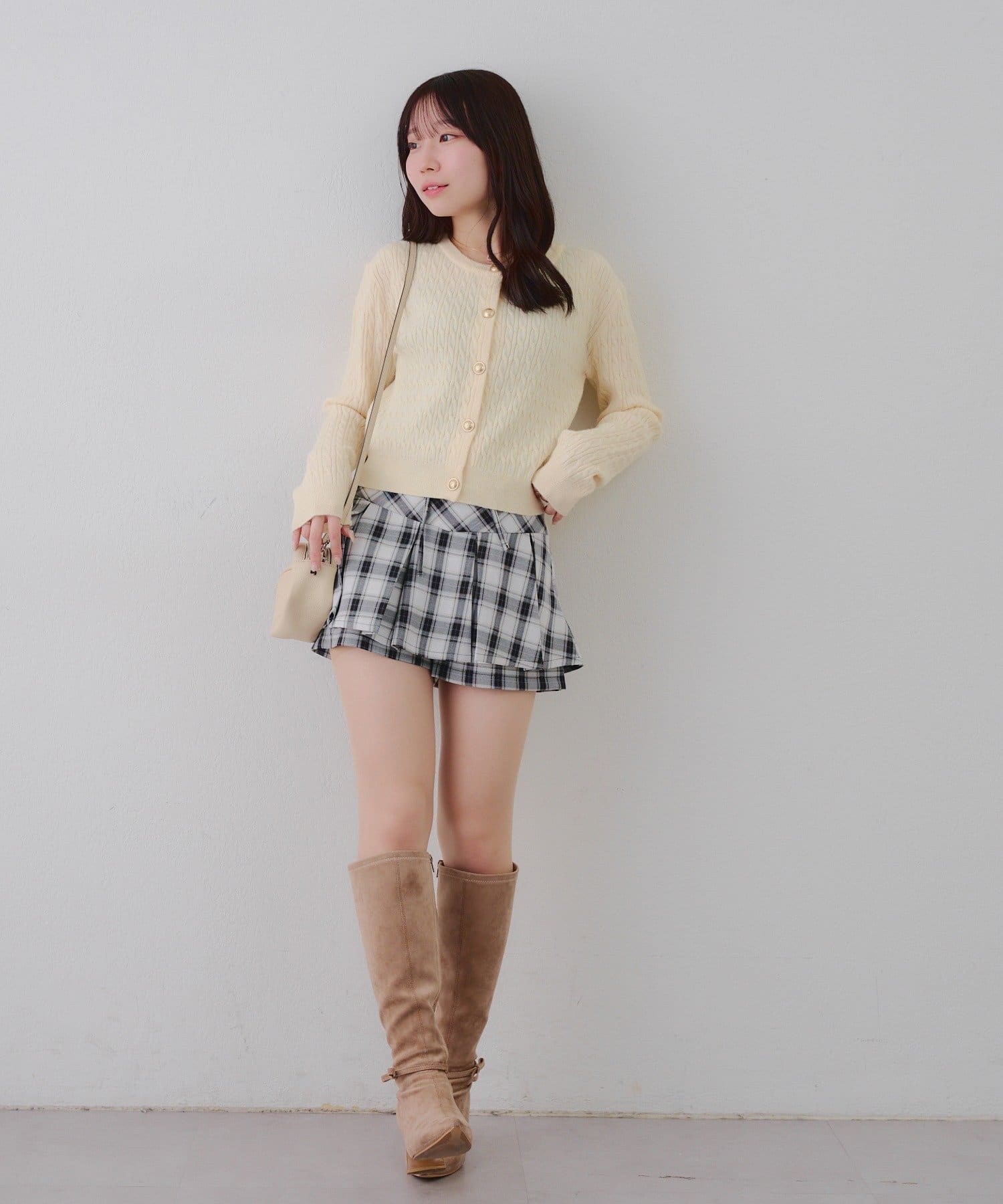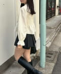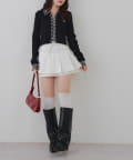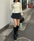 ・肌寒い時期はシャギーニットと合わせてフェミニンな印象に。