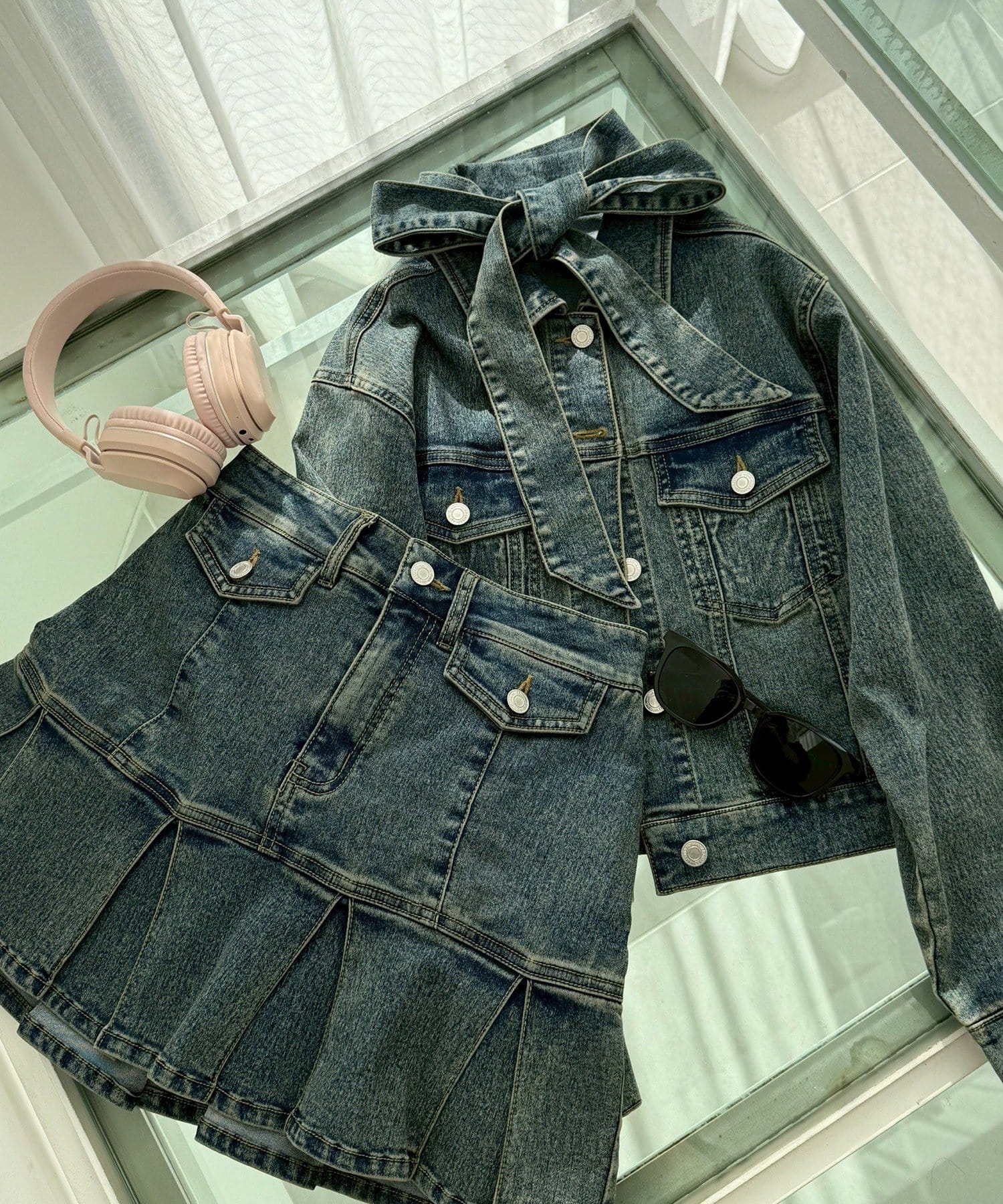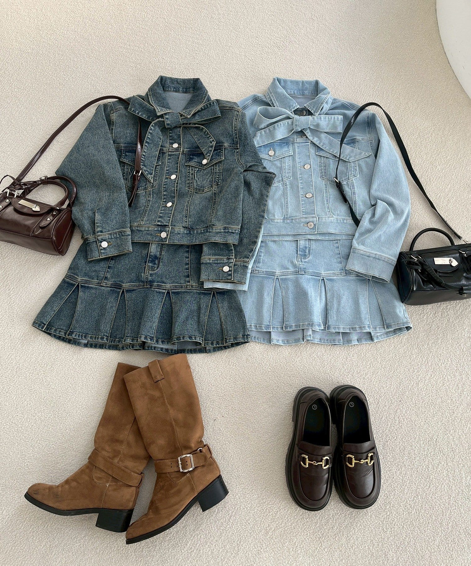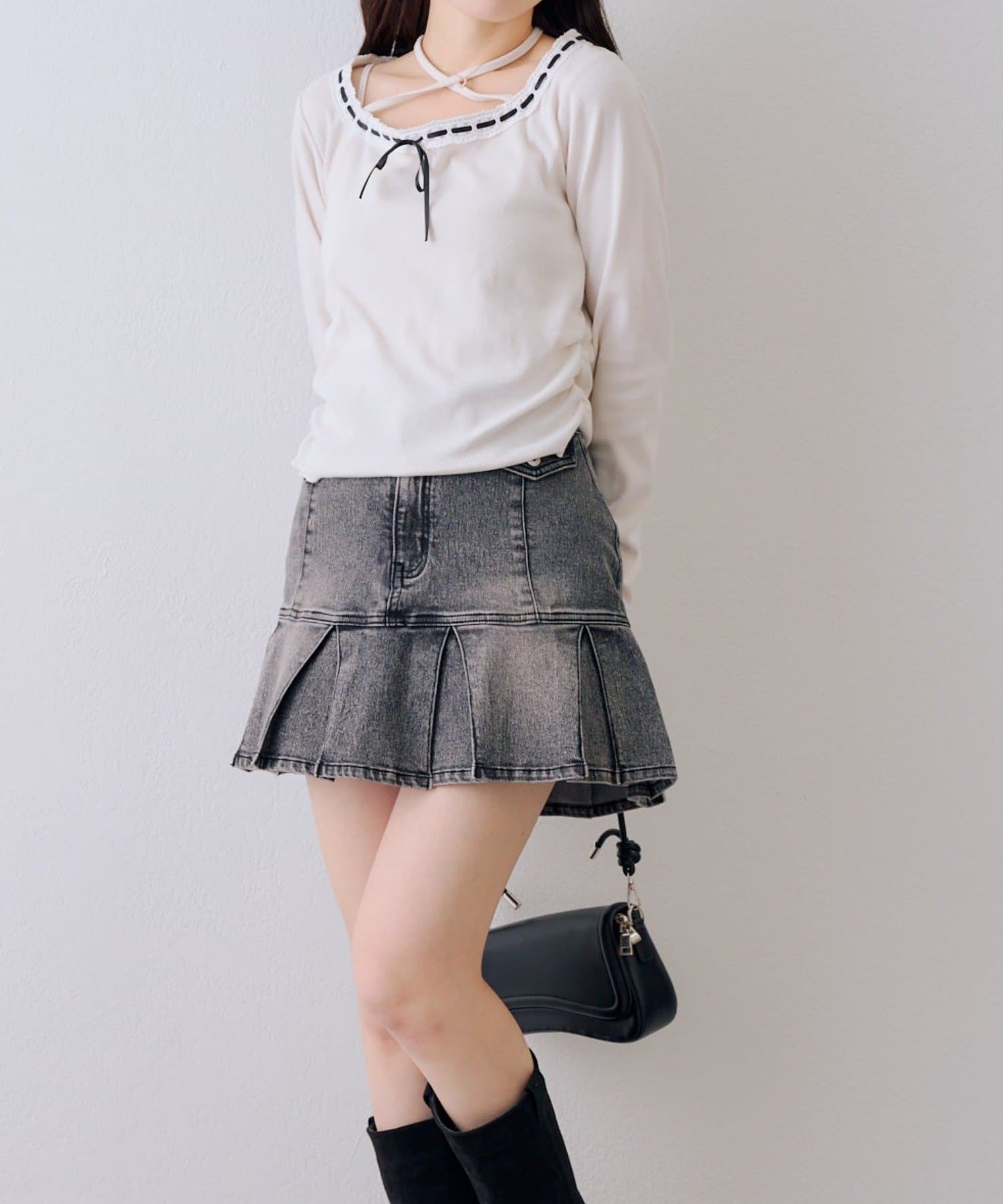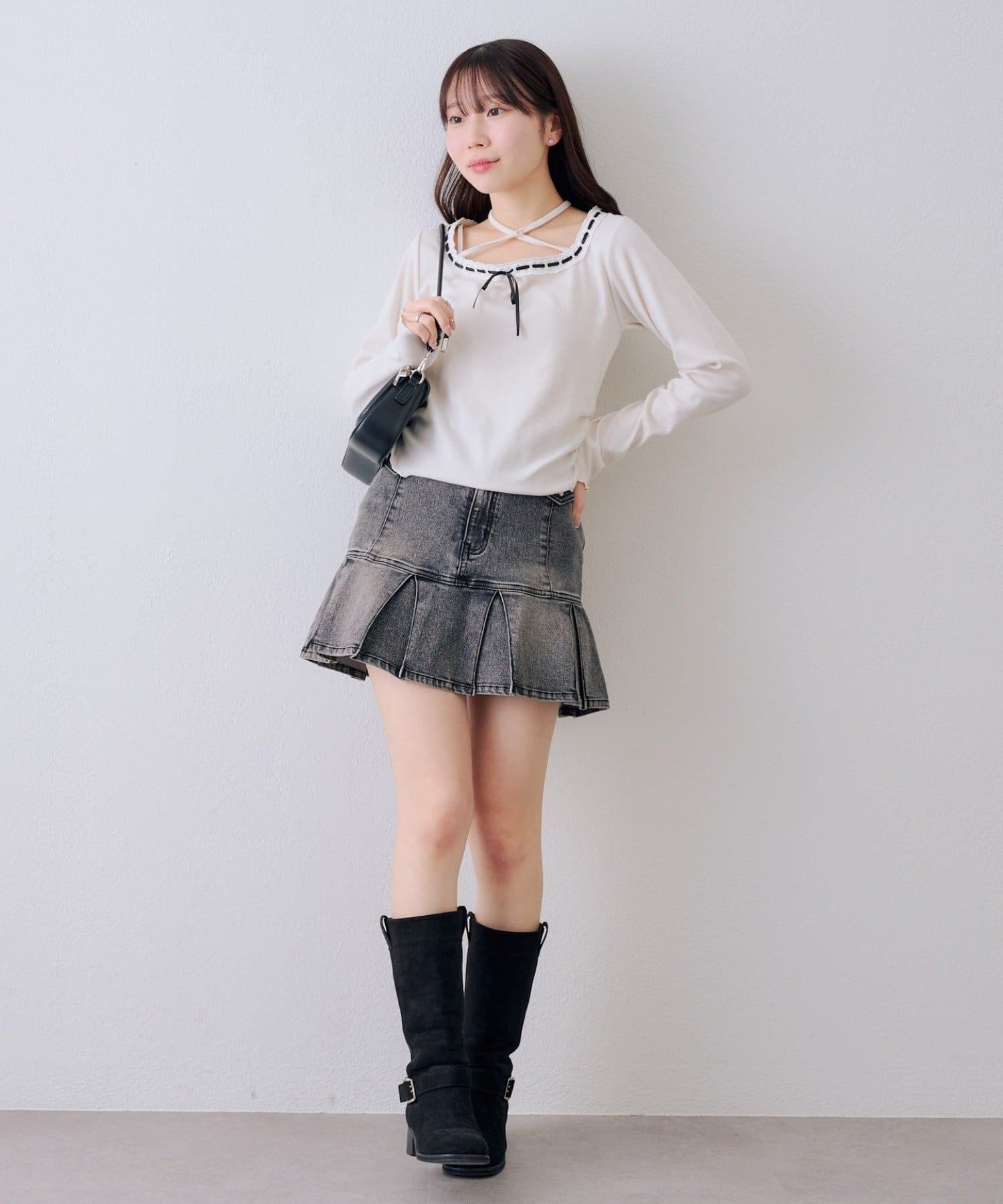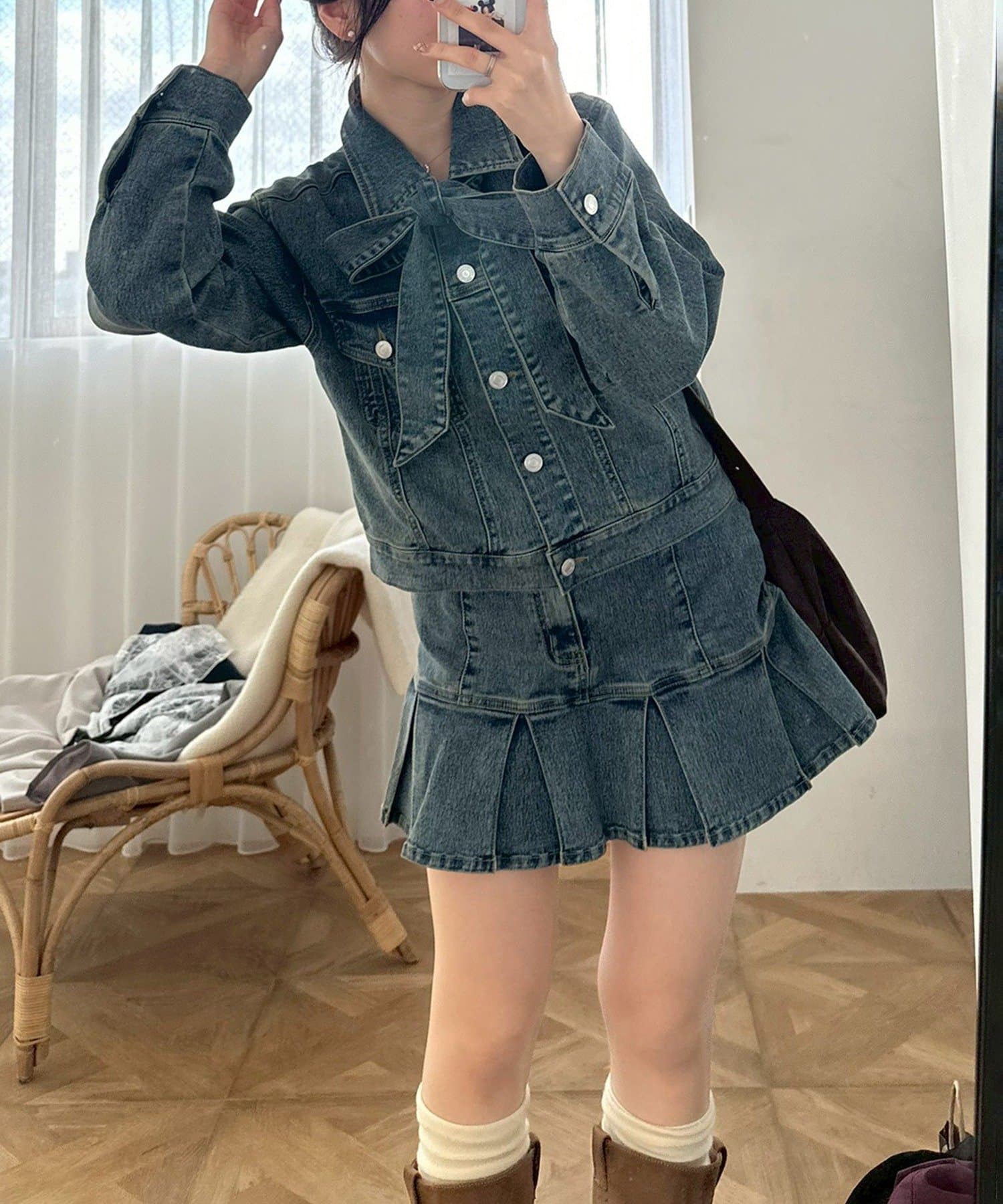 ・リボンタイのデニムジャケット(品番:0861070020)と合わせてセットアップがおすすめです。