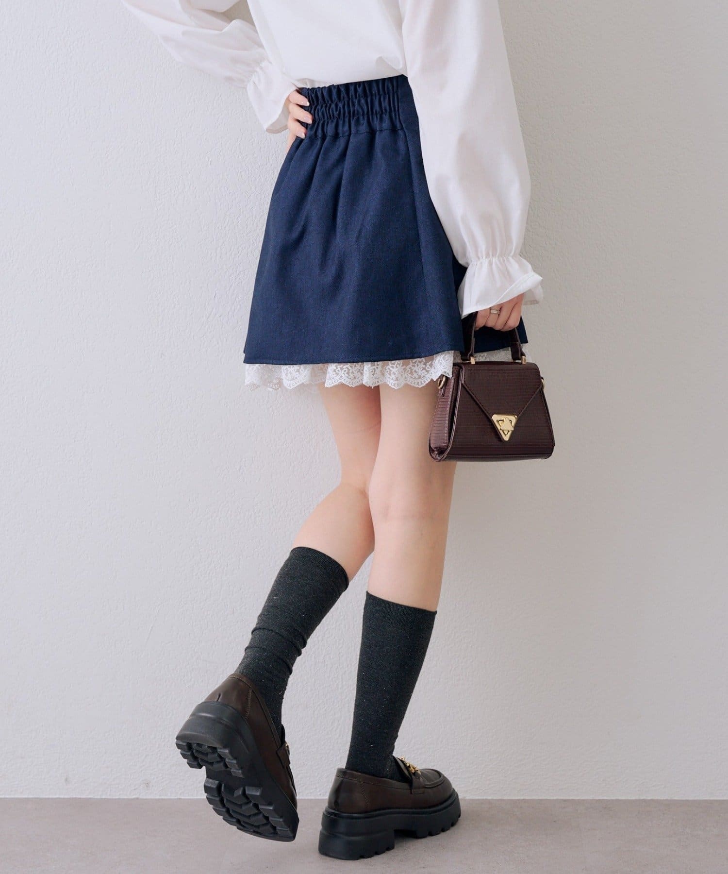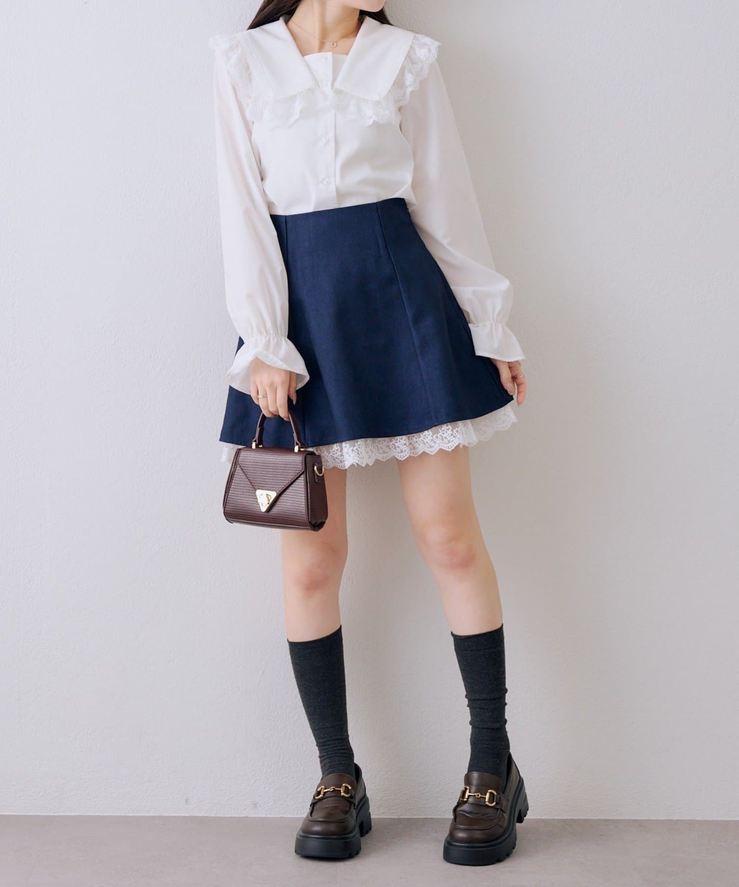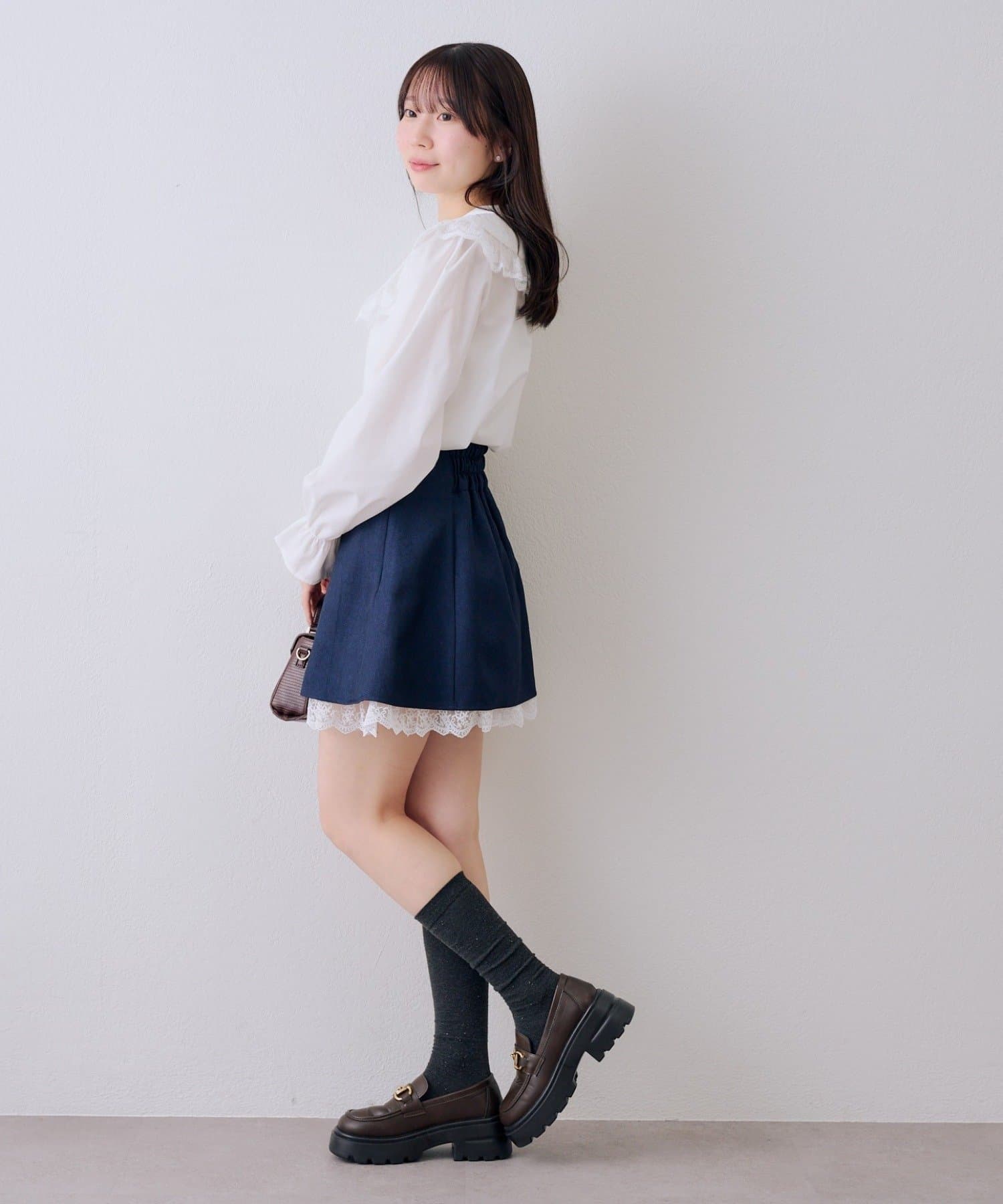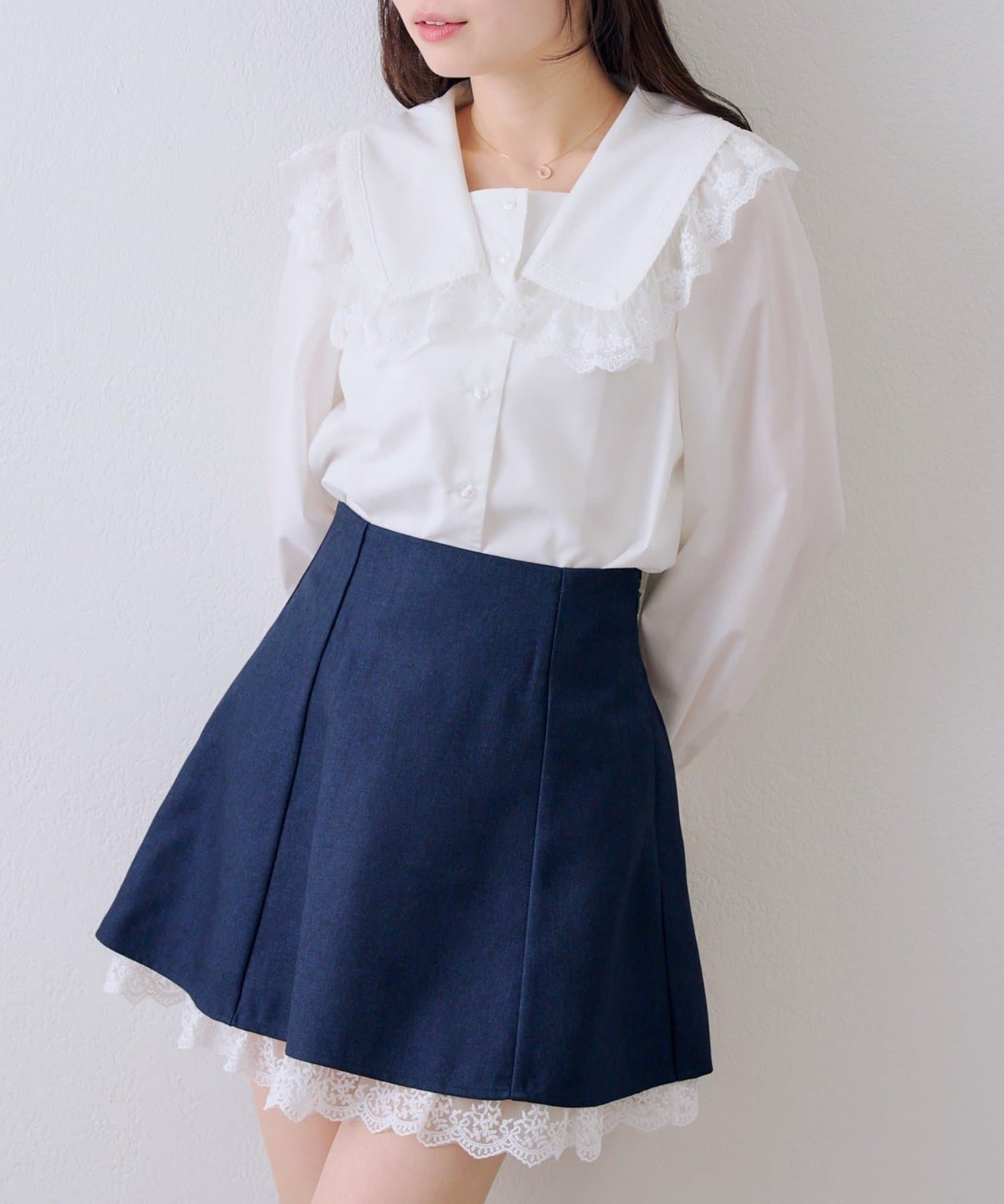 • NICE CLAUP / OLIVE des OLIVE OUTLET(ナイスクラップ  / オリーブ デ オリーブ アウトレット) 【continuer】【SETUP】裾レースミニスカート