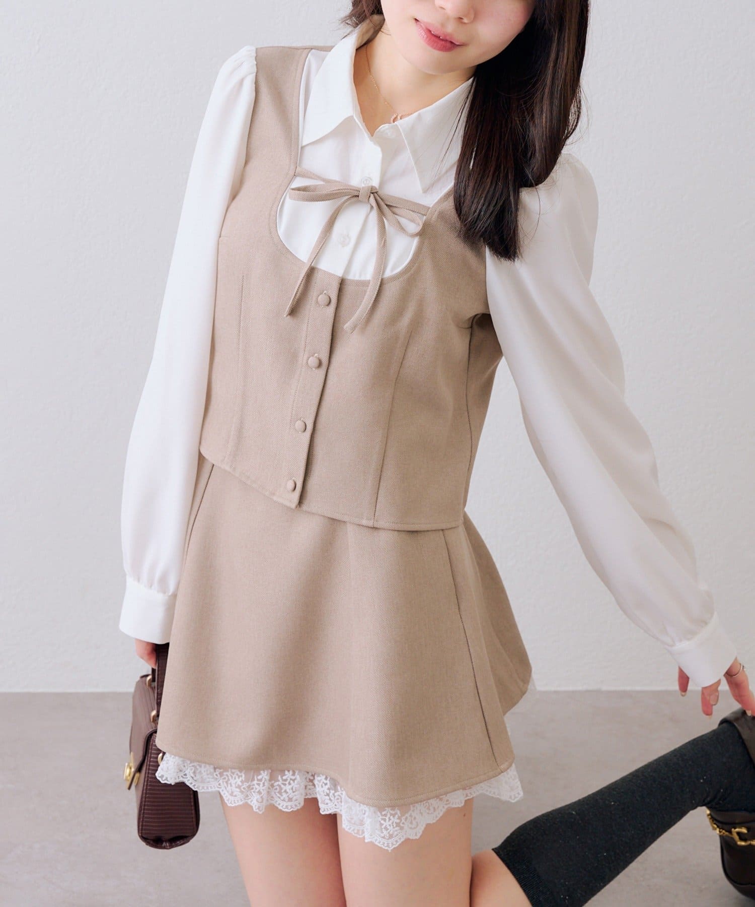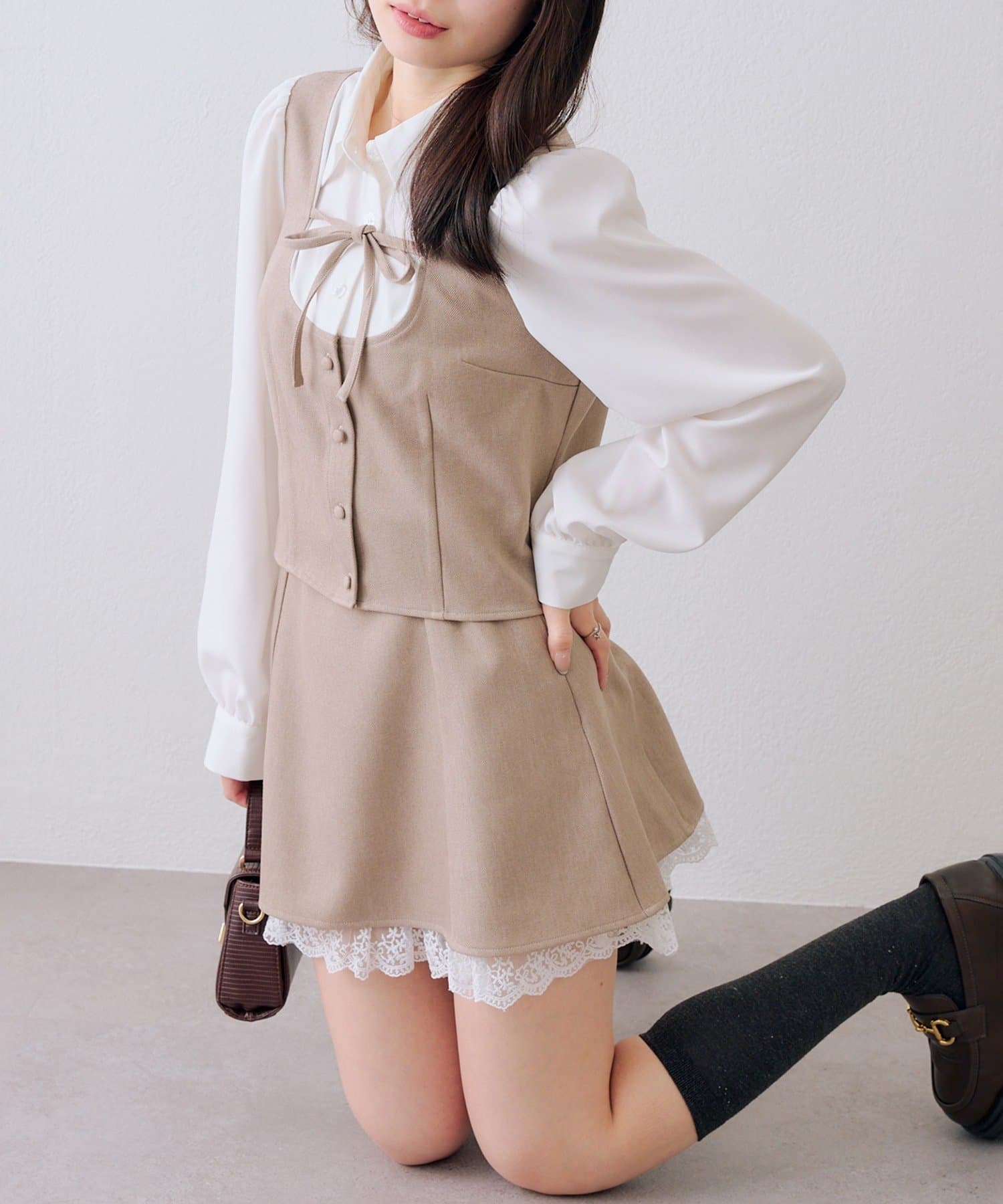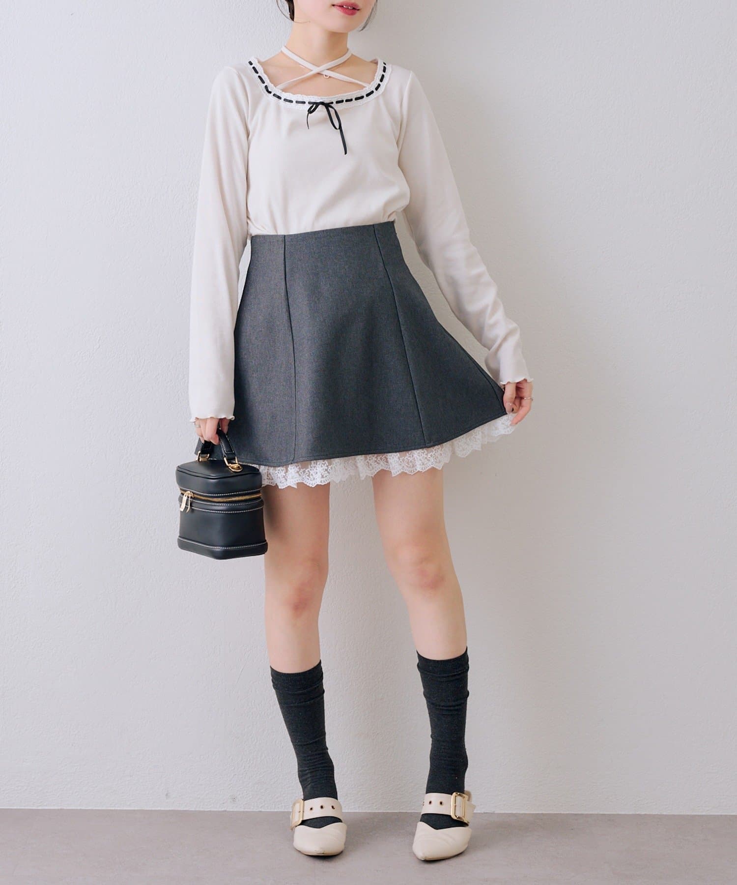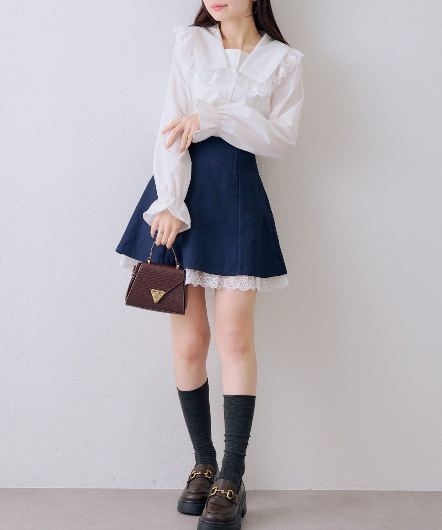 • NICE CLAUP / OLIVE des OLIVE OUTLET(ナイスクラップ  / オリーブ デ オリーブ アウトレット) 【continuer】【SETUP】裾レースミニスカート