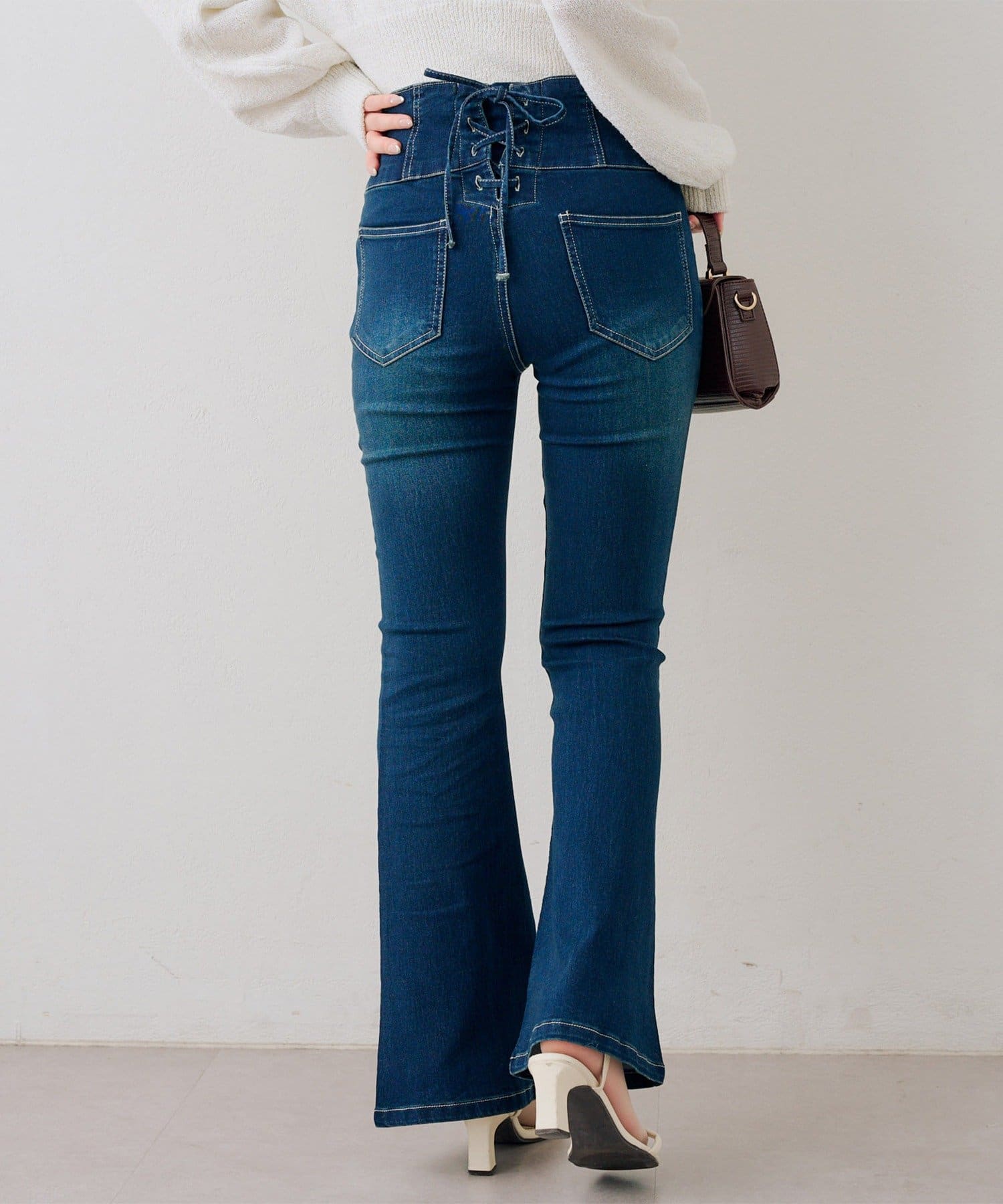 後レースアップフレアパンツ
