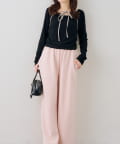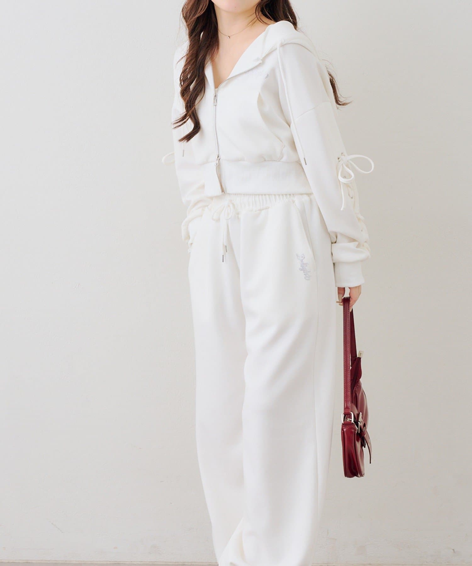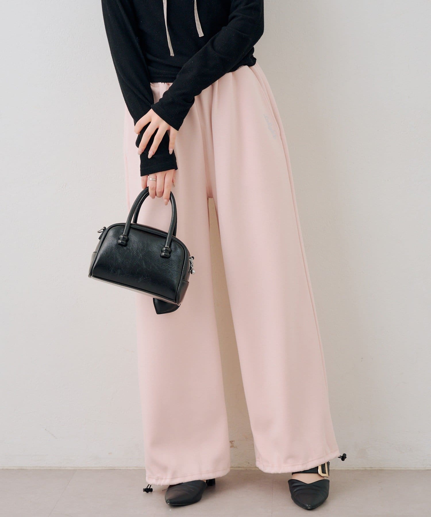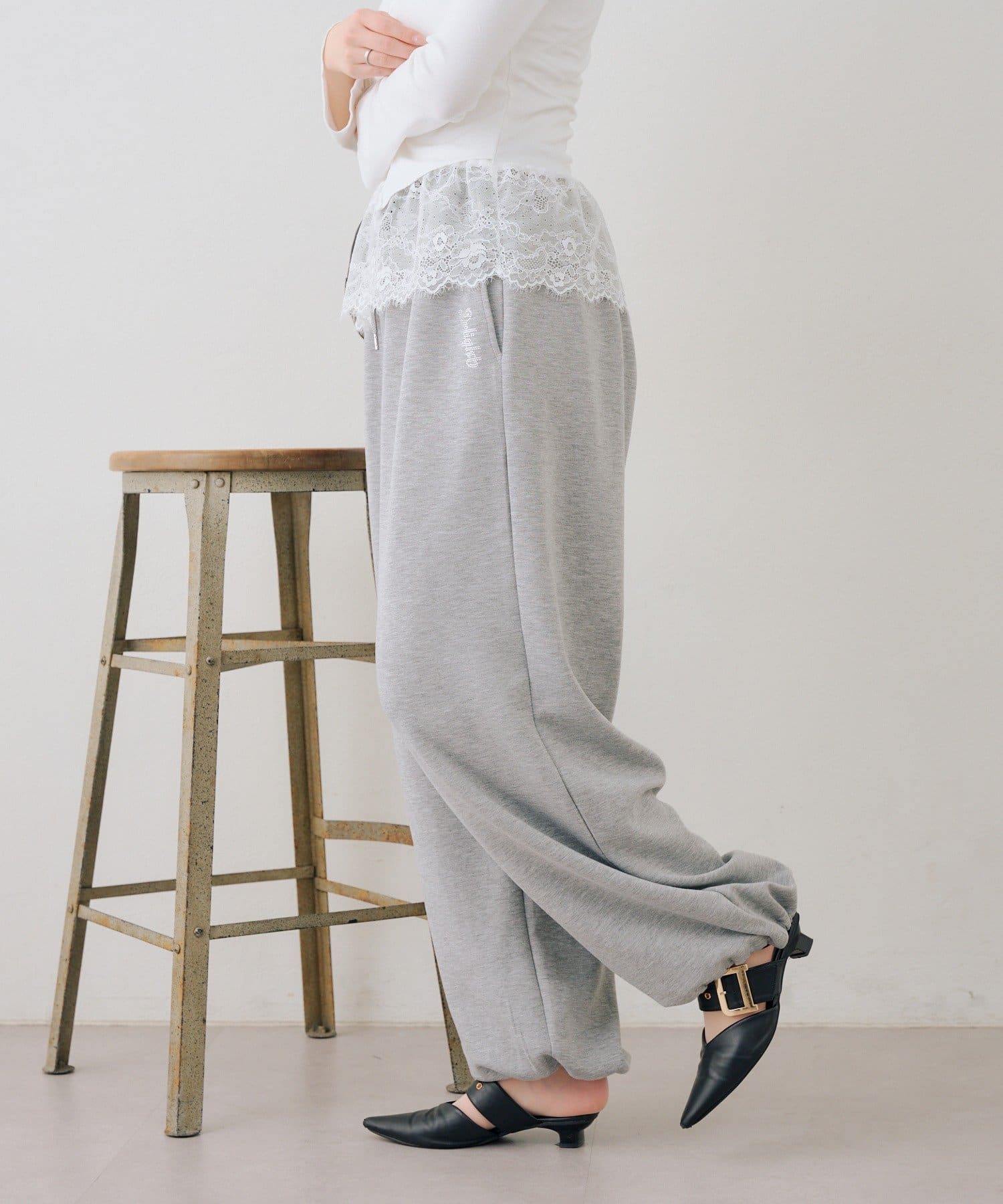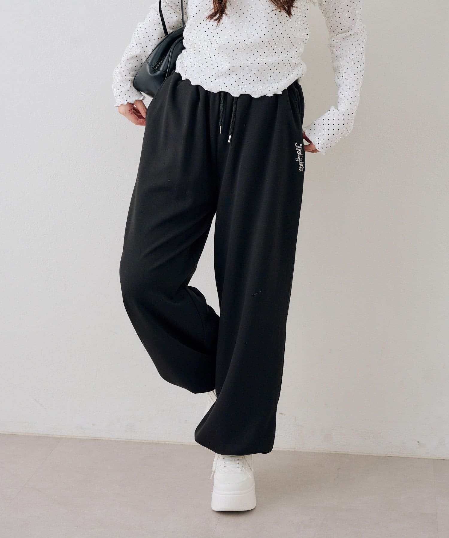 ・ワンポイントのラインストーンがきらめくスウェットパンツ