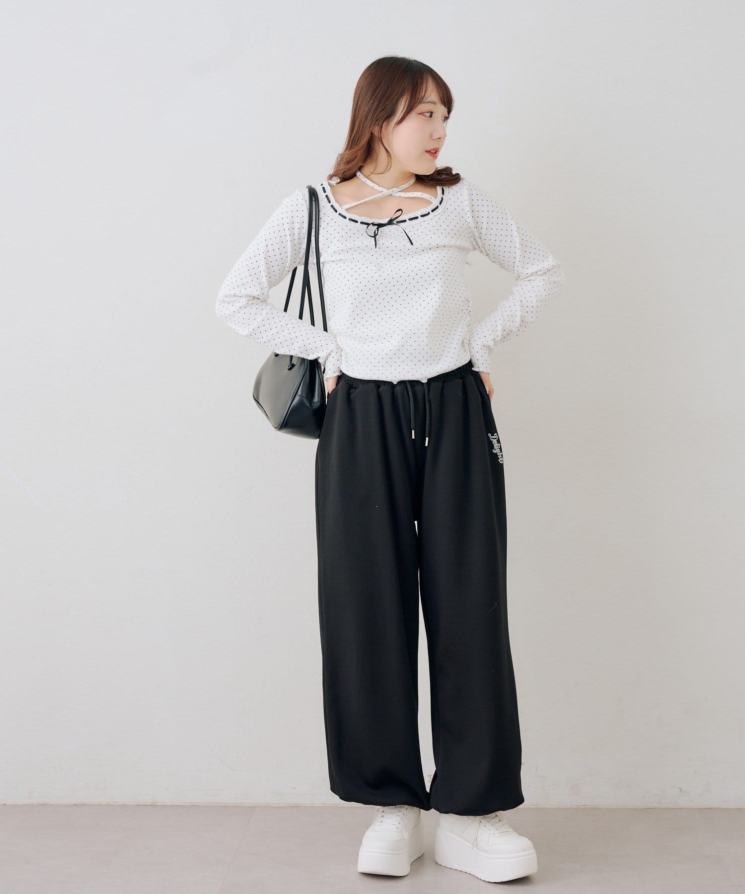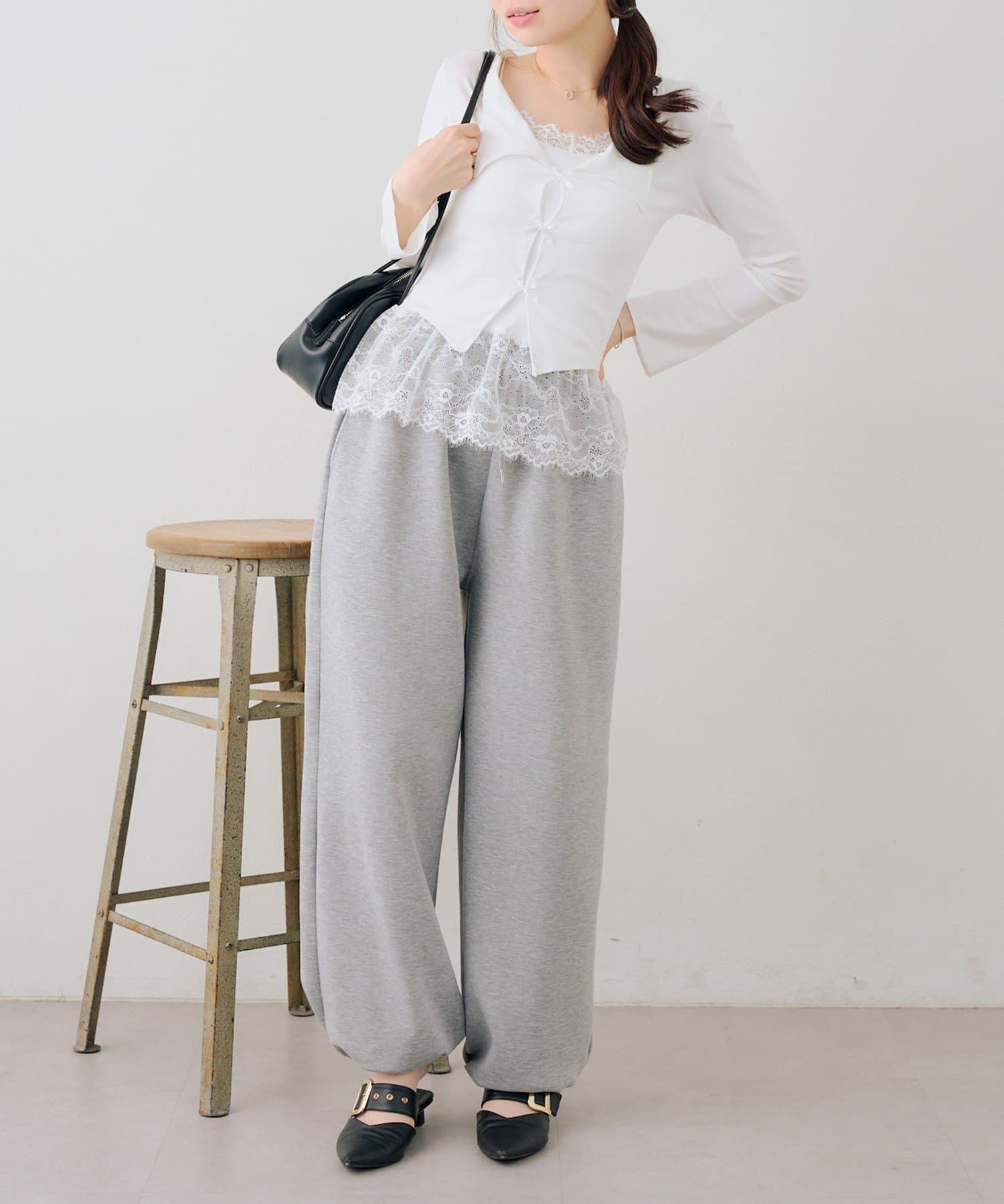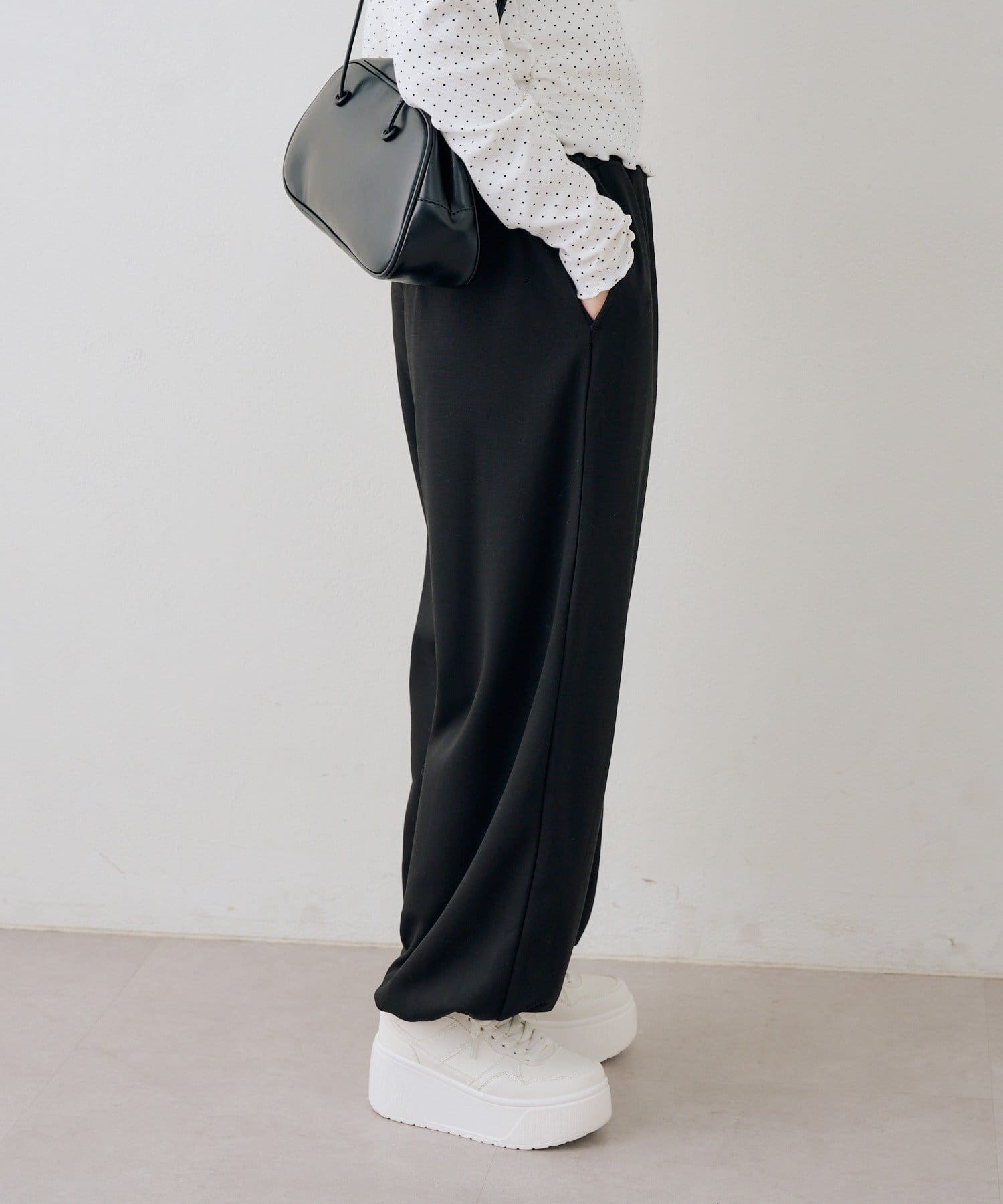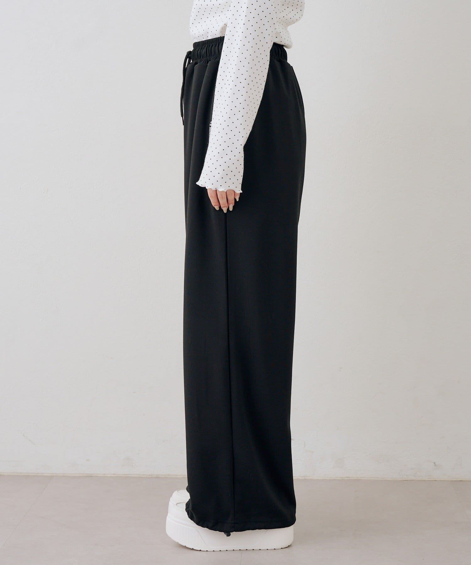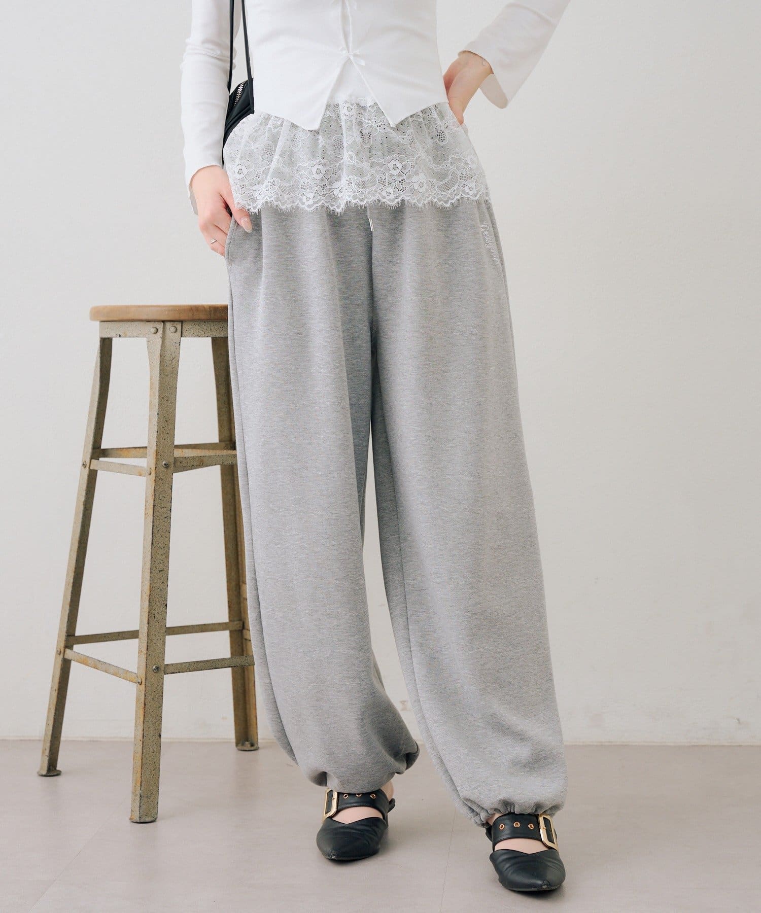 ・ワンポイントのラインストーンがきらめくスウェットパンツ