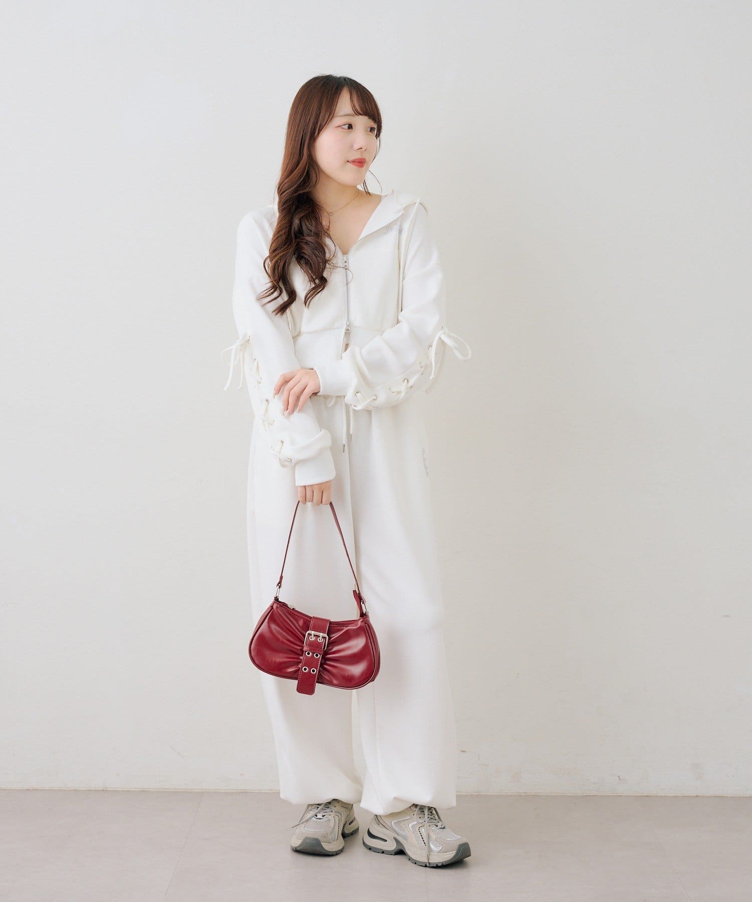 ・ショート丈のパーカーを合わせてストリートライクに着こなすのが◎
