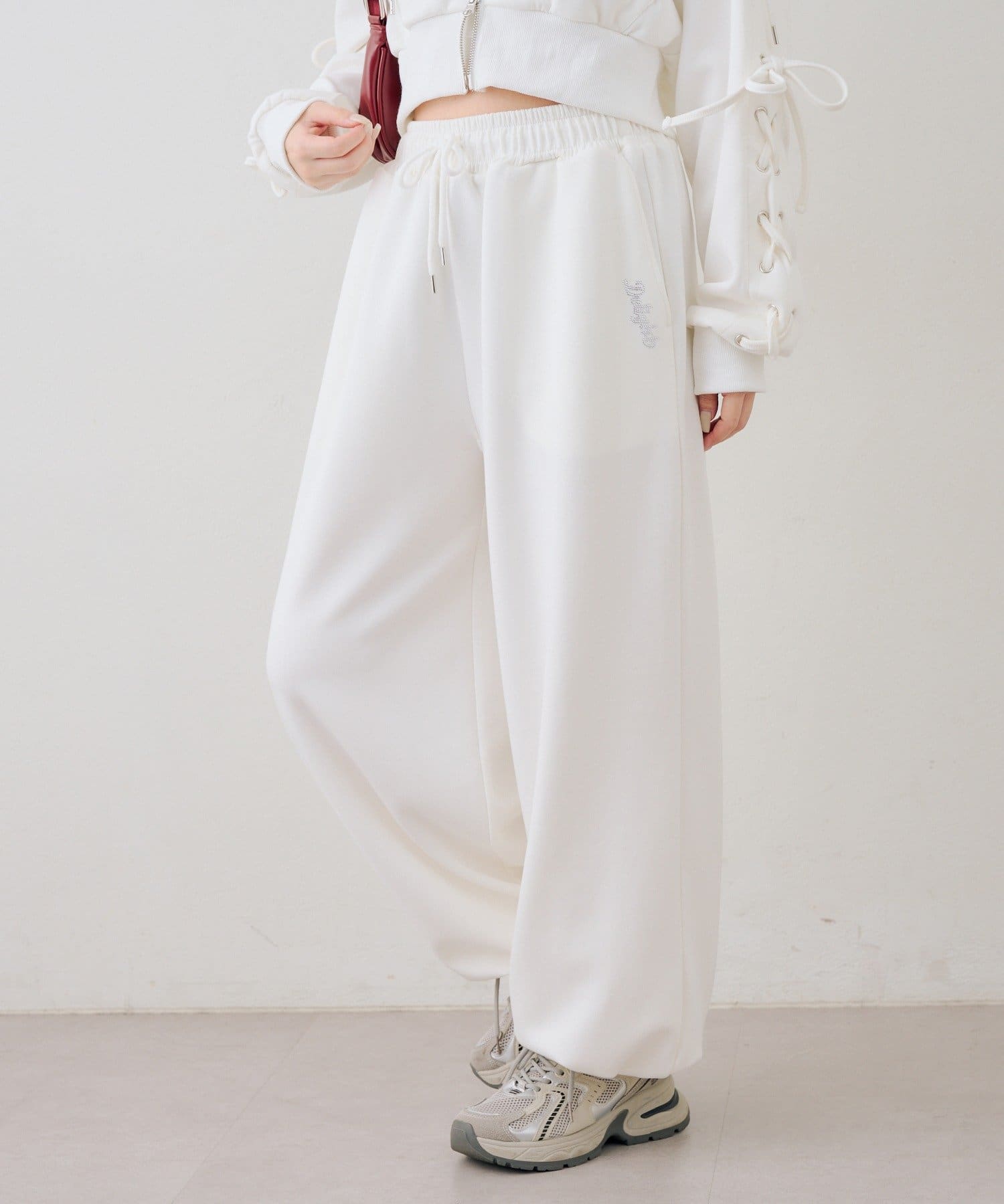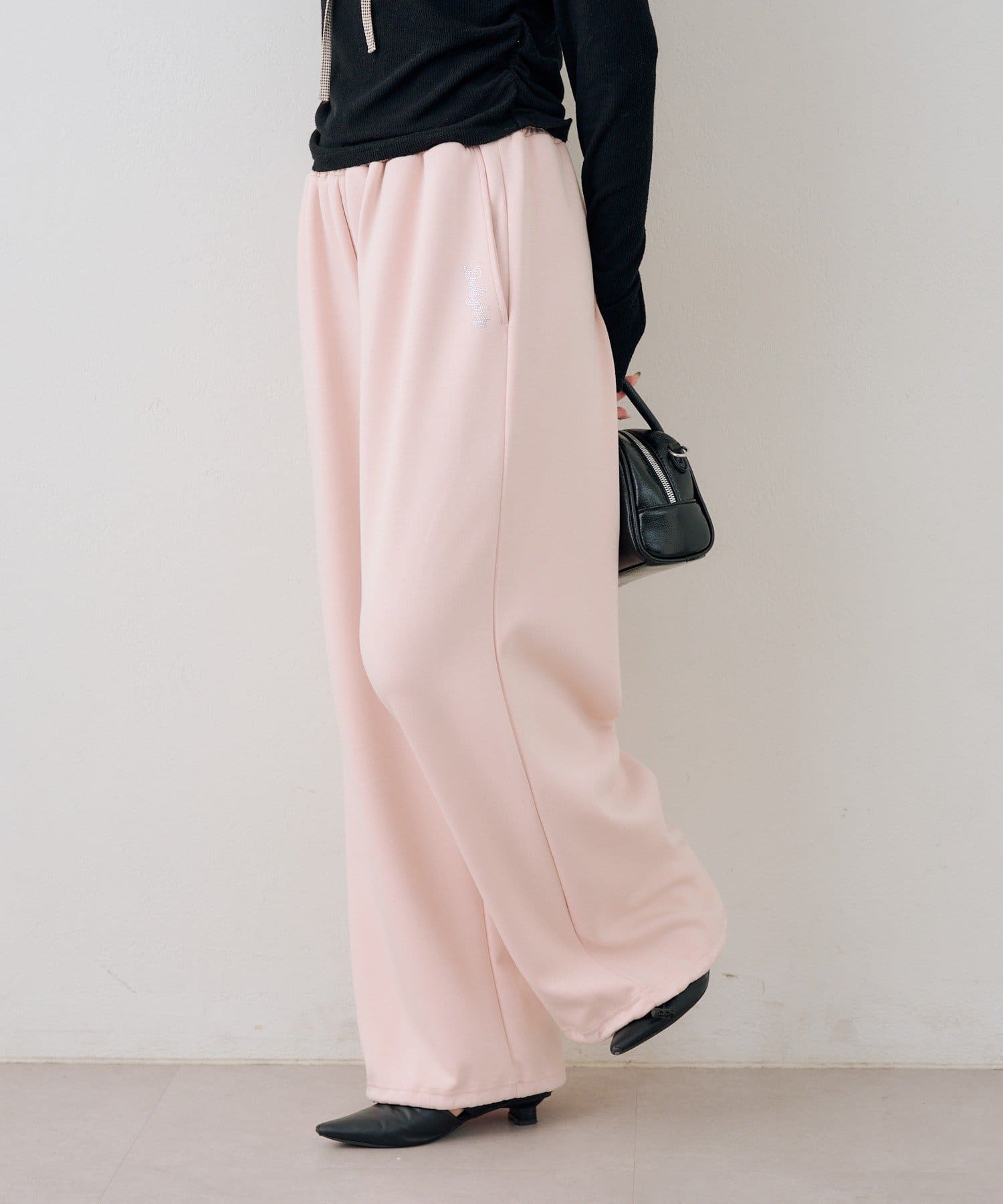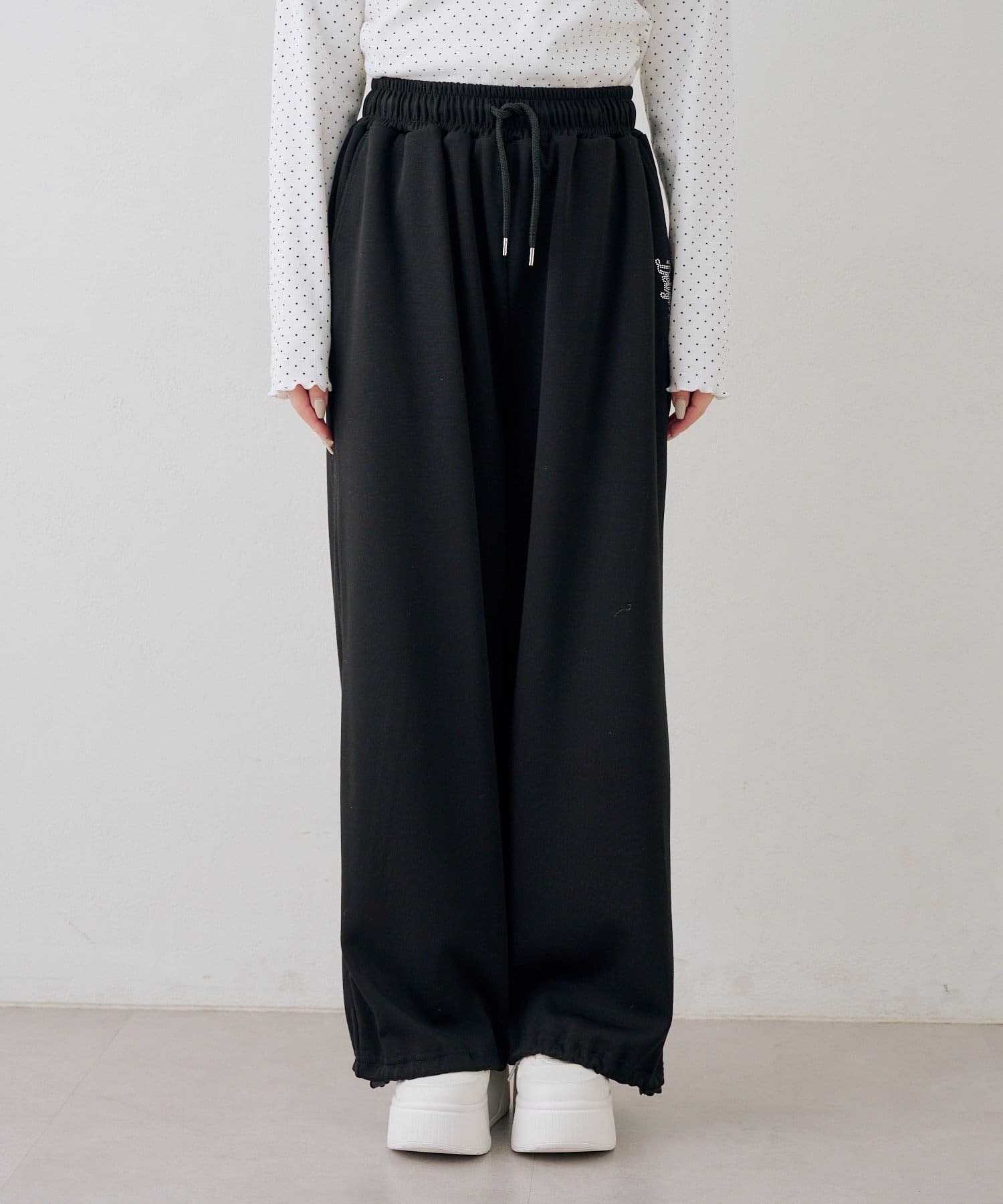 ・ワンポイントのラインストーンがきらめくスウェットパンツ