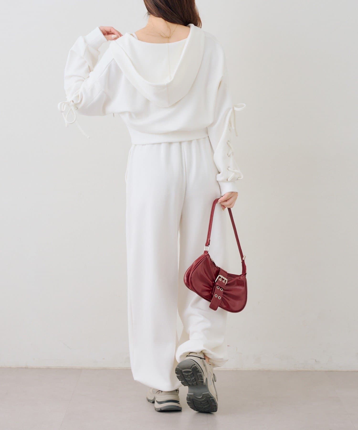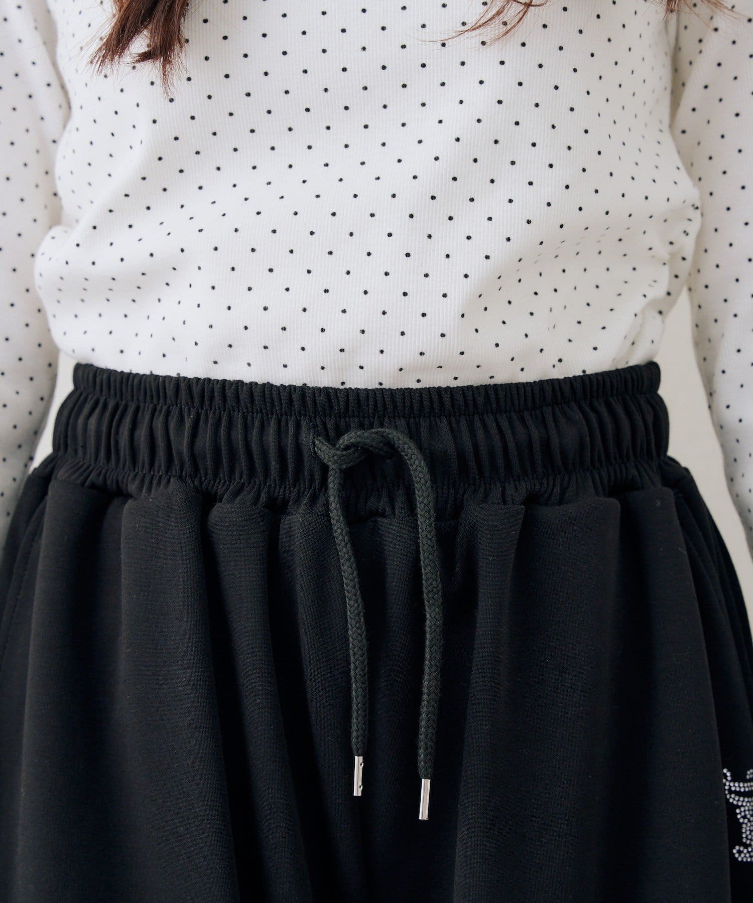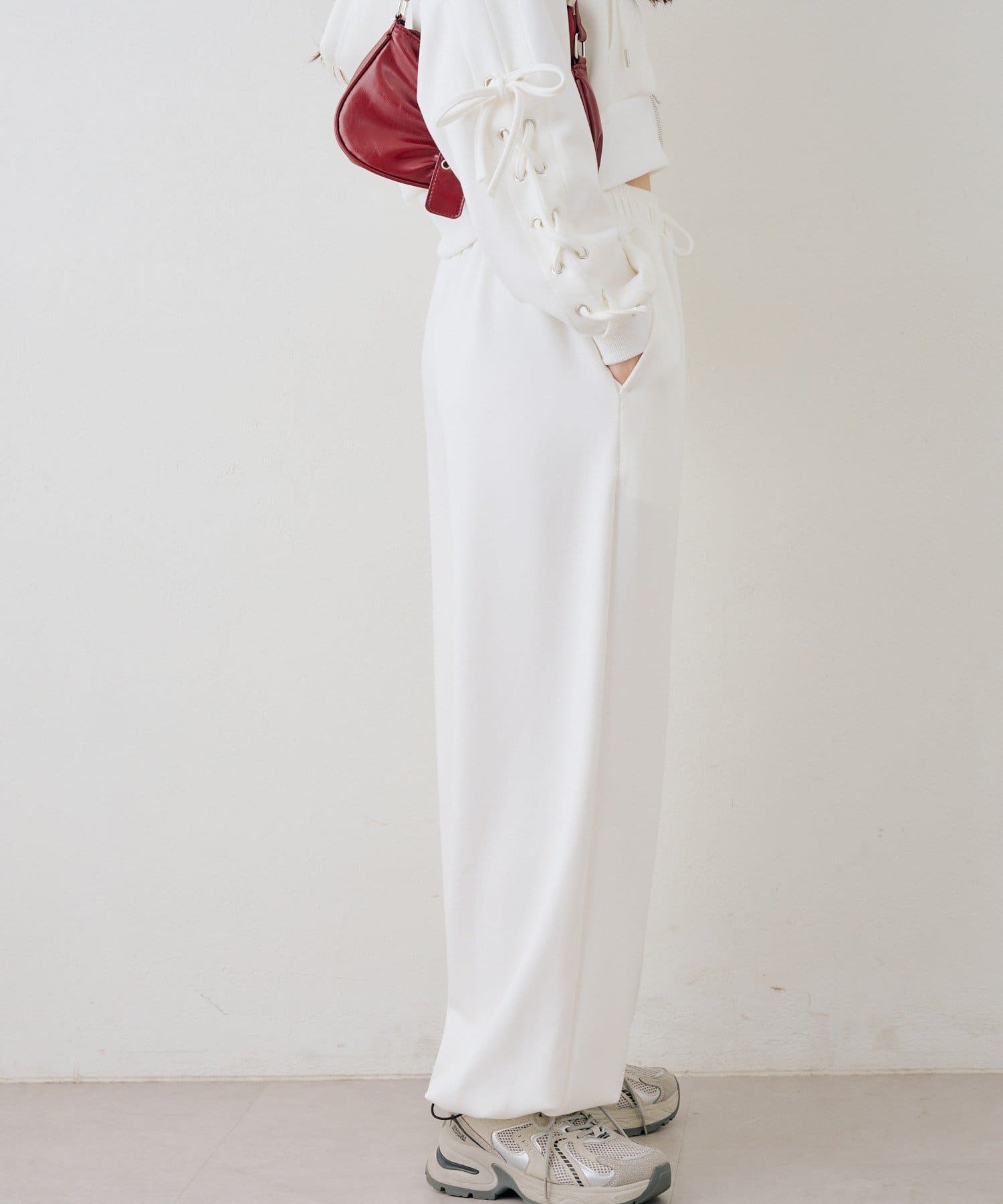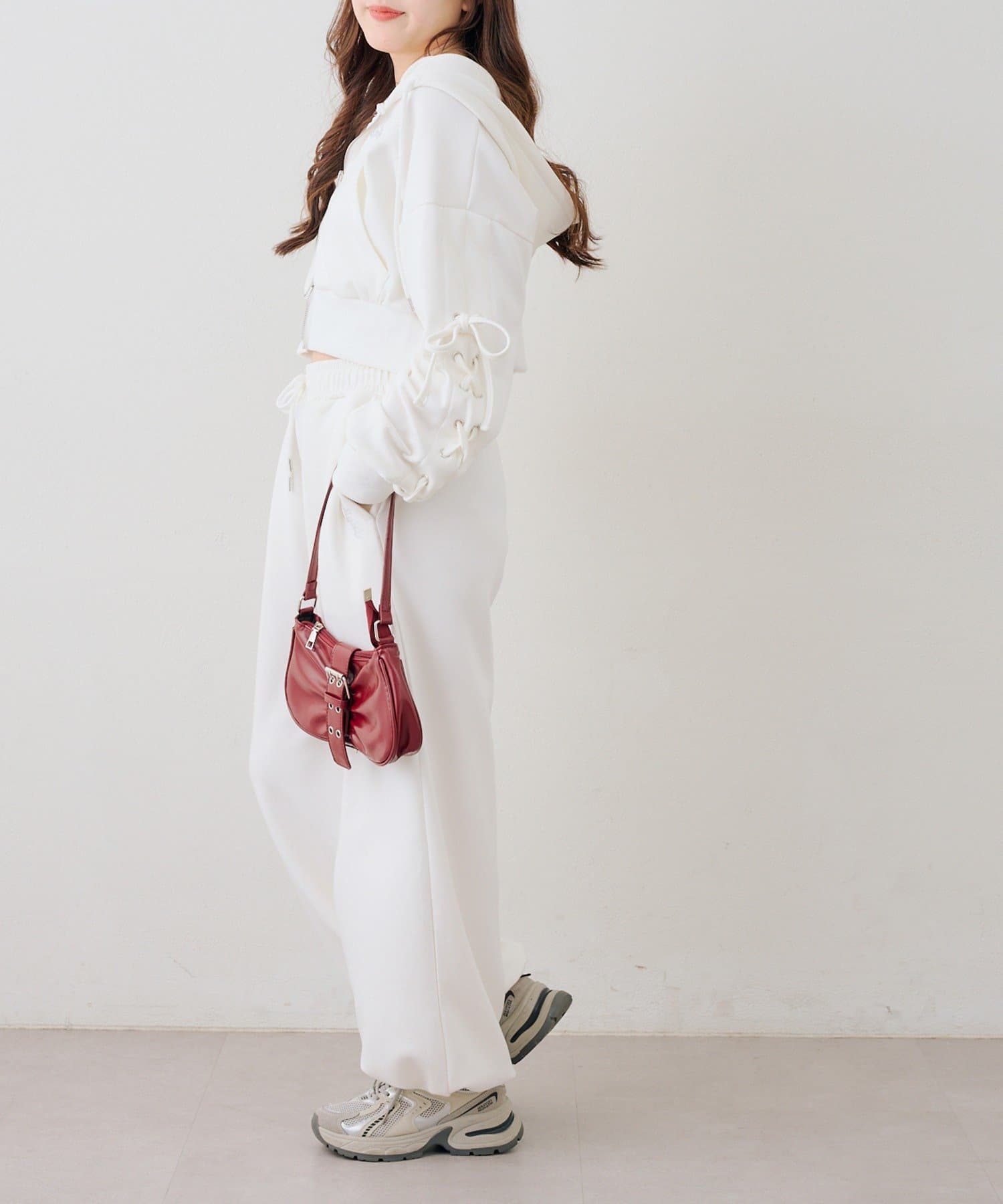 ・ワンポイントのラインストーンがきらめくスウェットパンツ