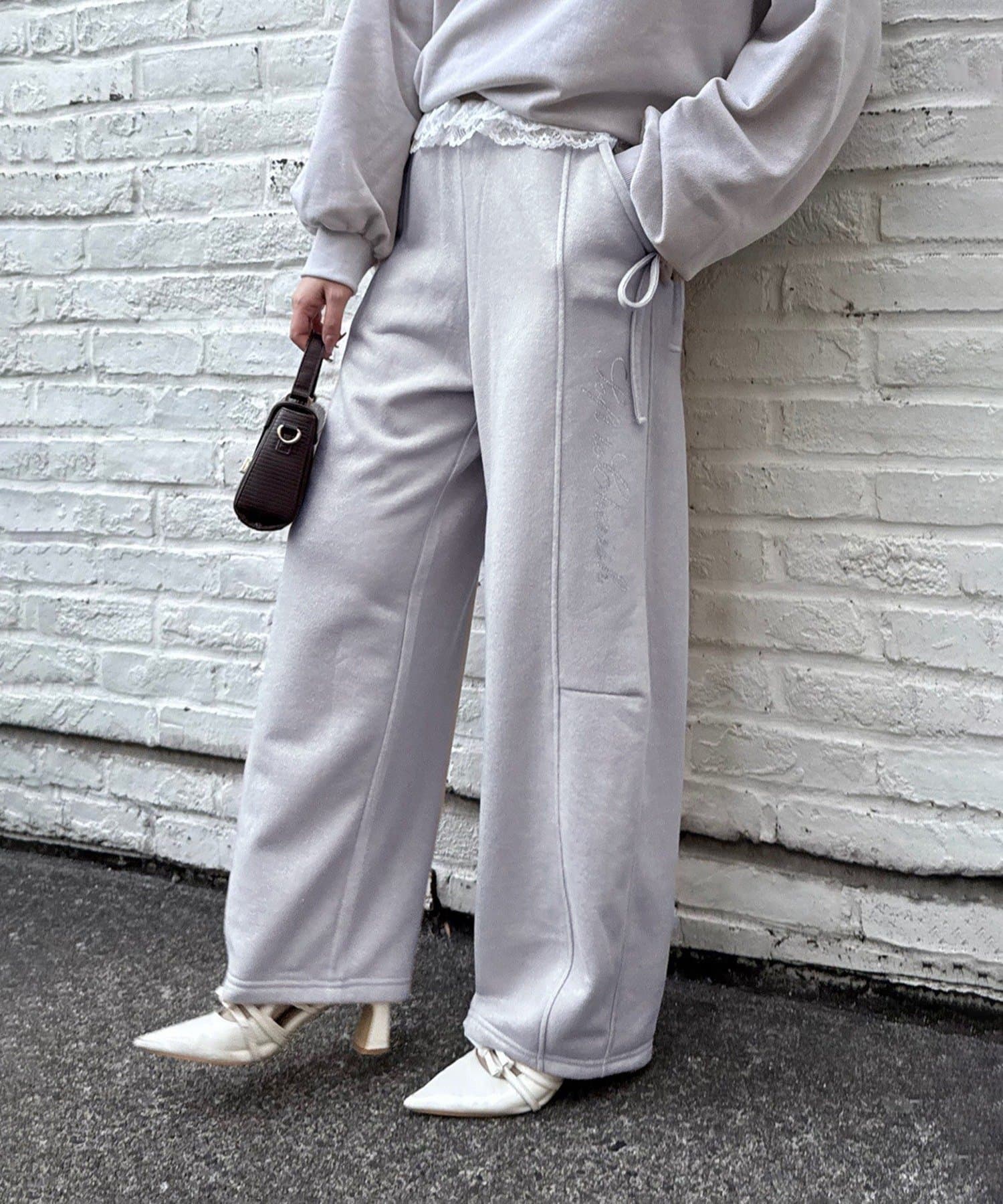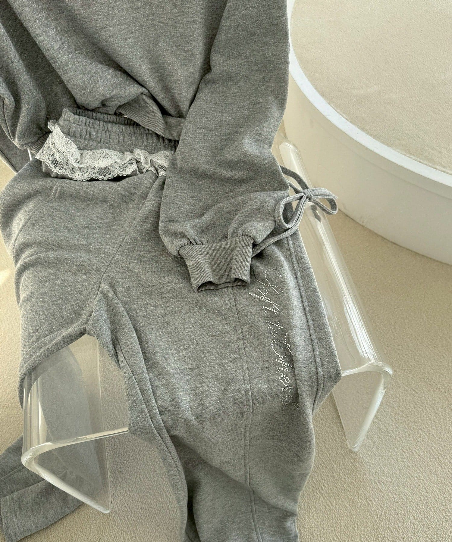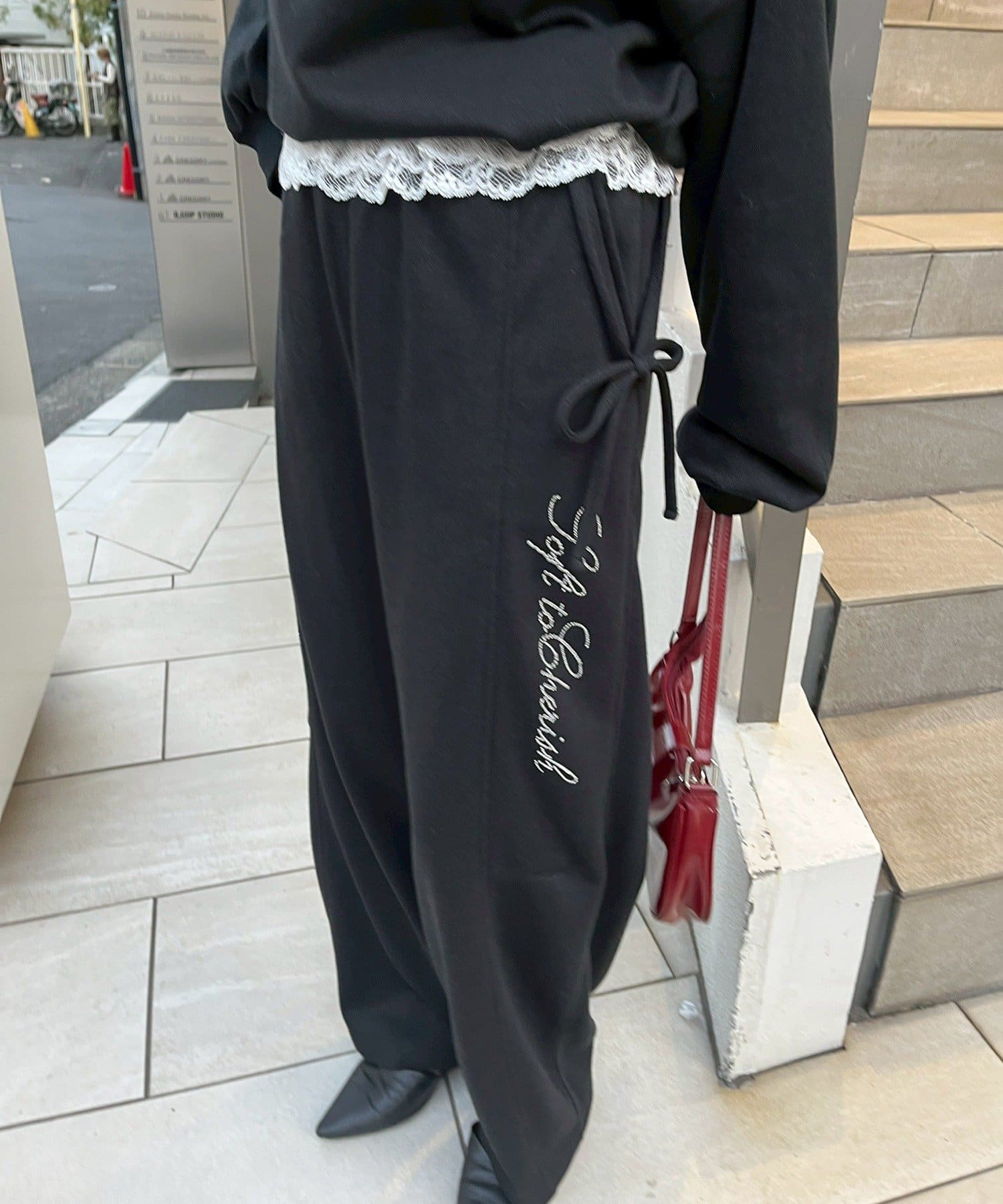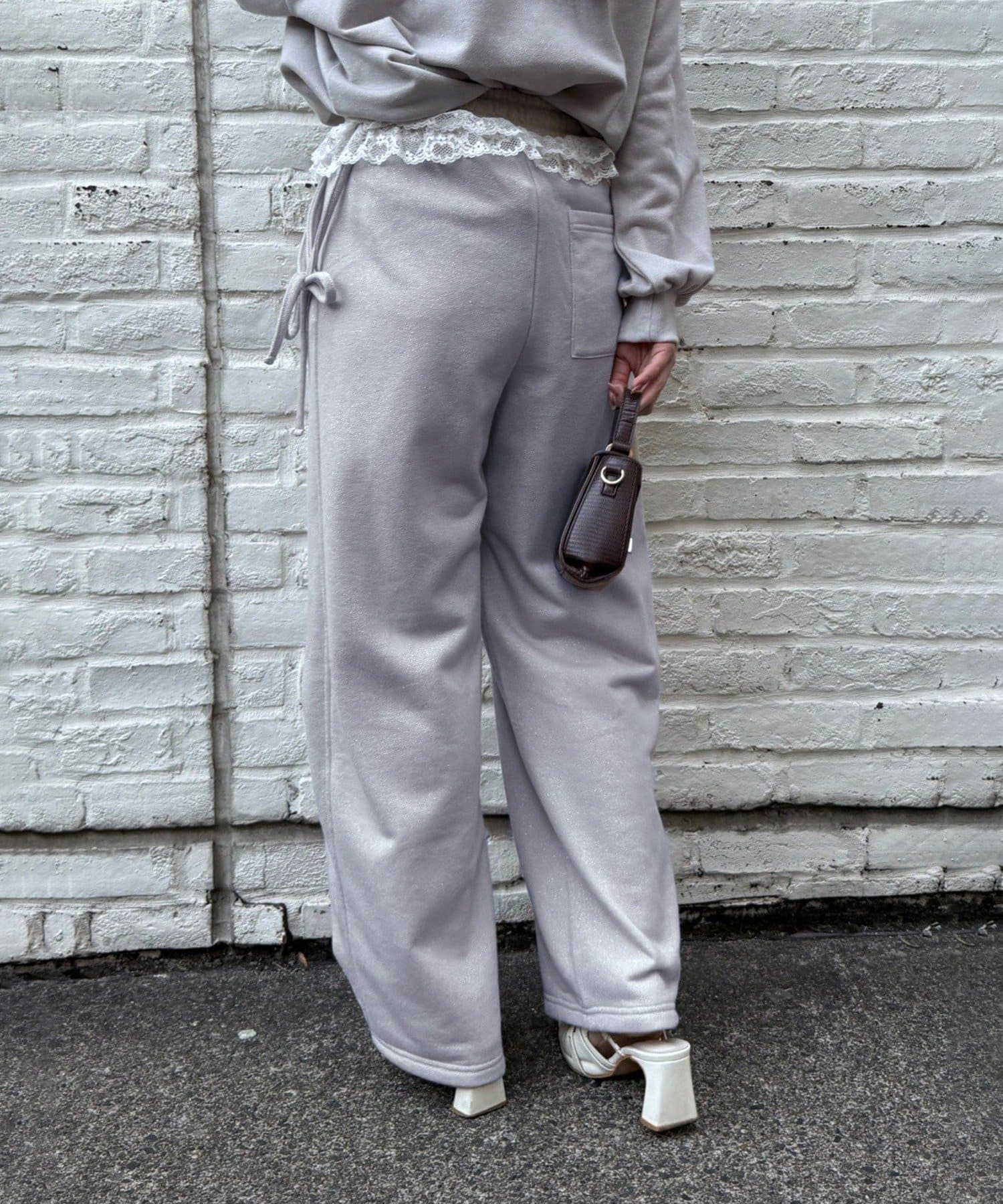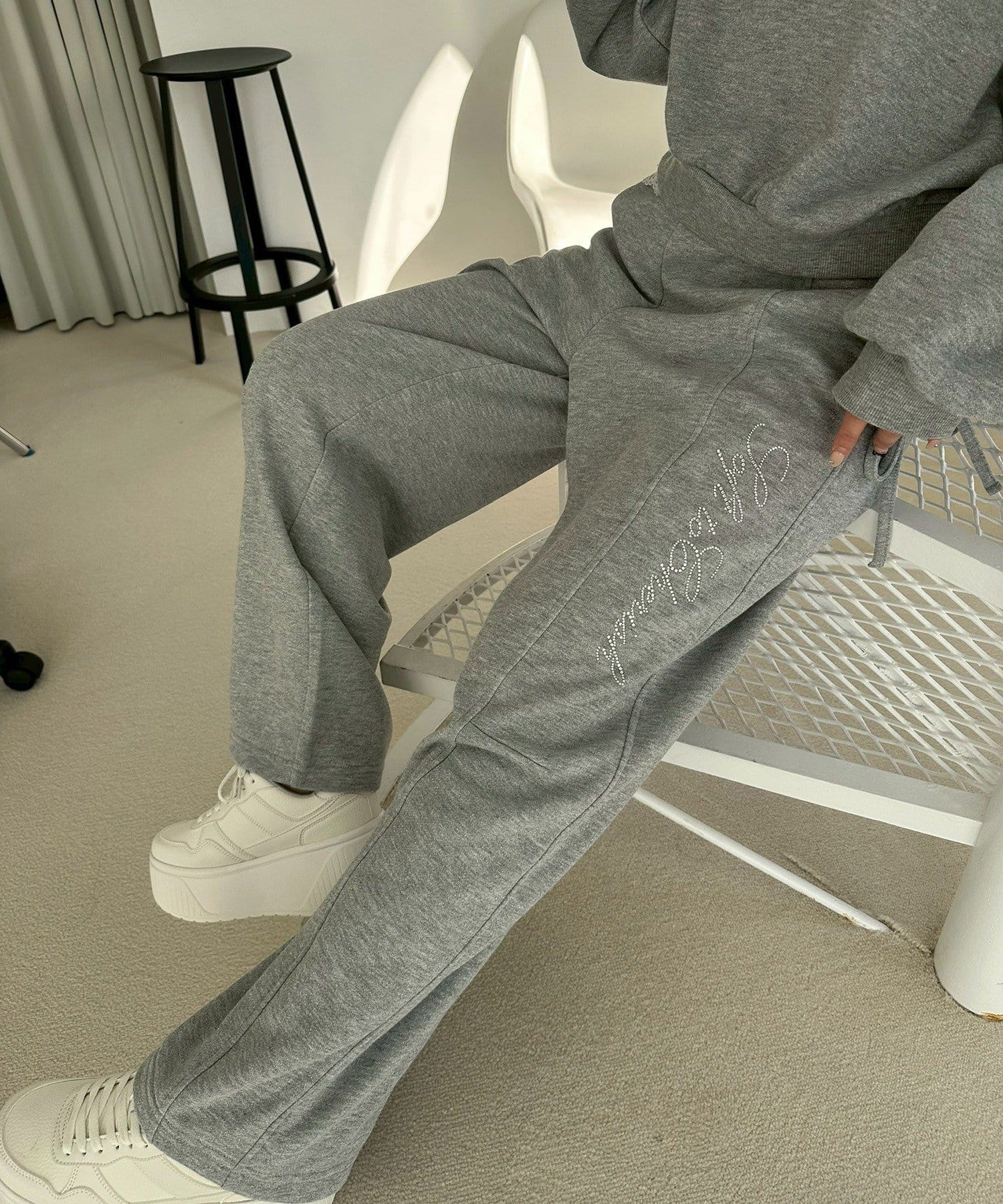・ラインストーンがキラキラと輝くスウェットパンツ