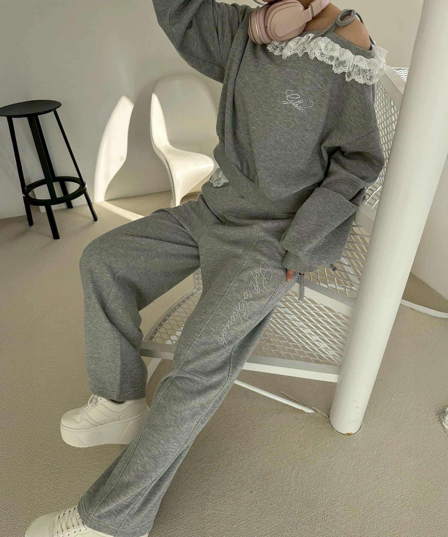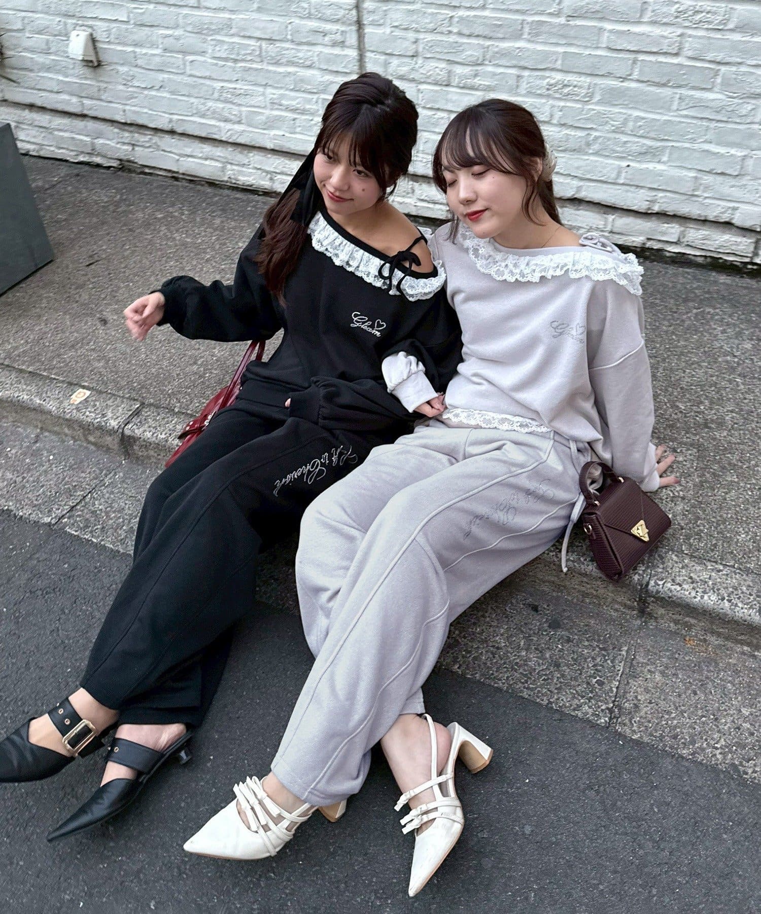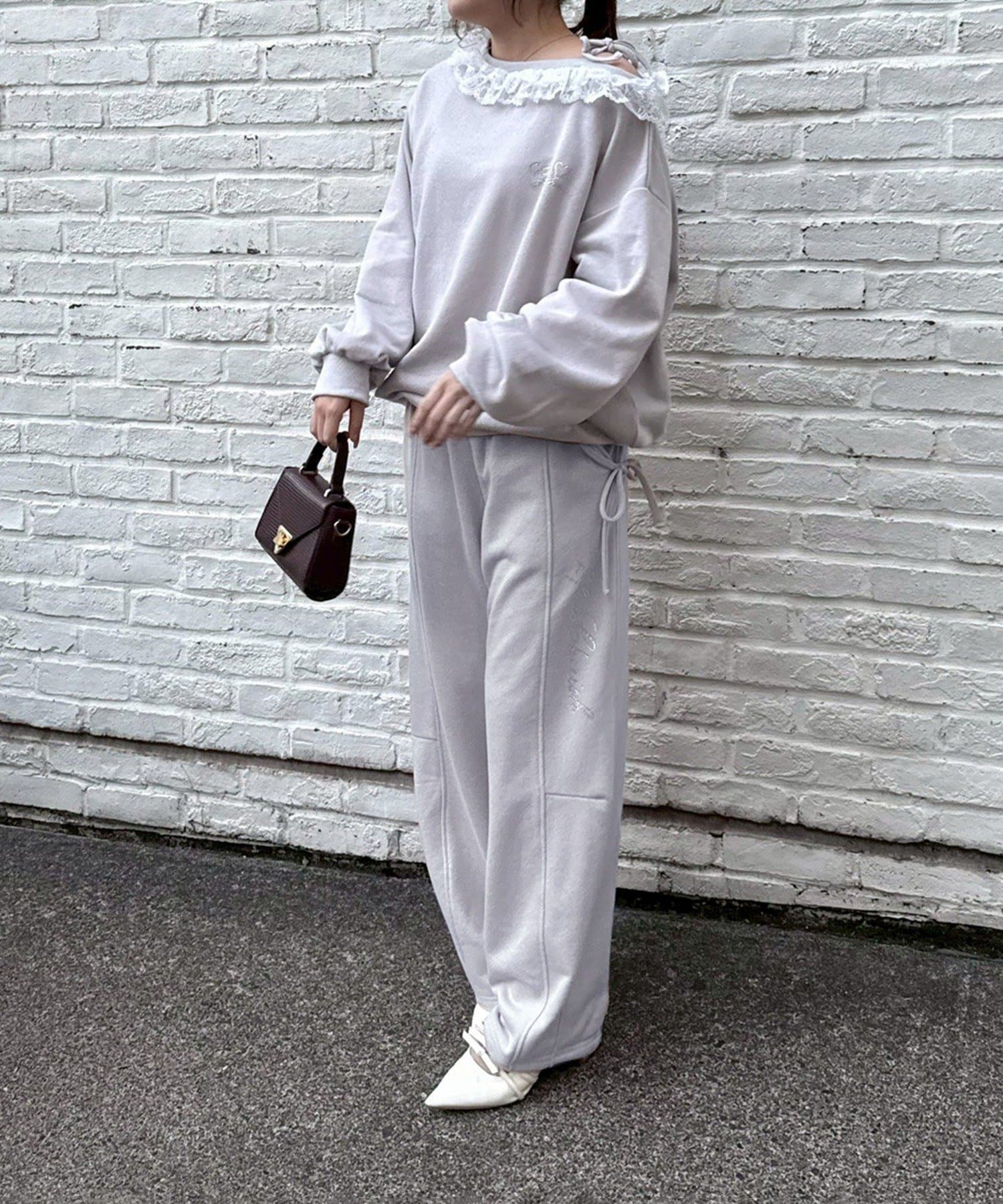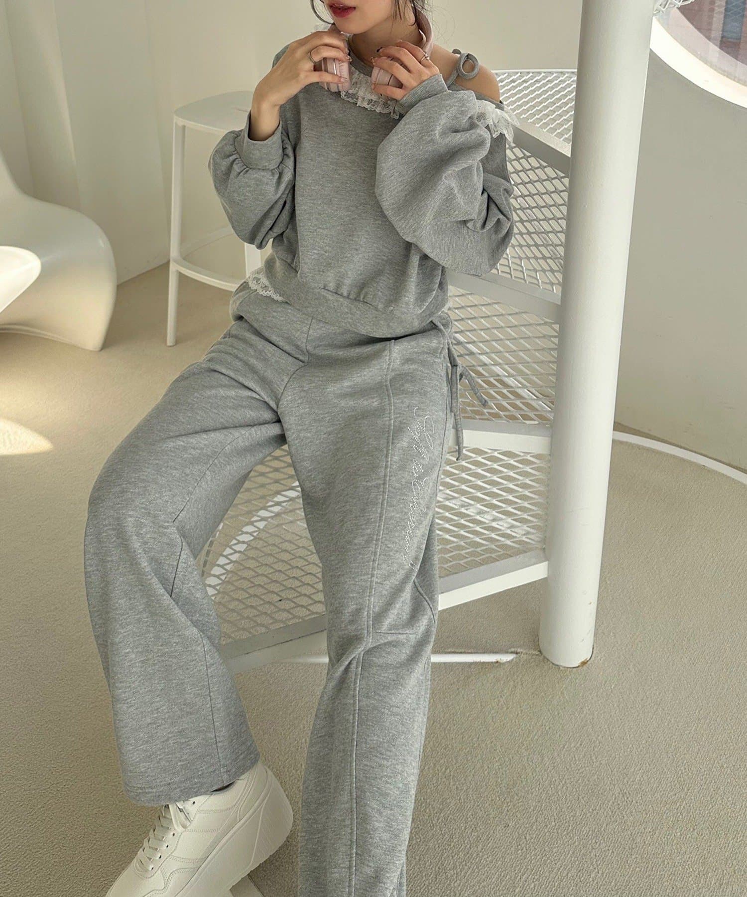 ・ラインストーンがキラキラと輝くスウェットパンツ