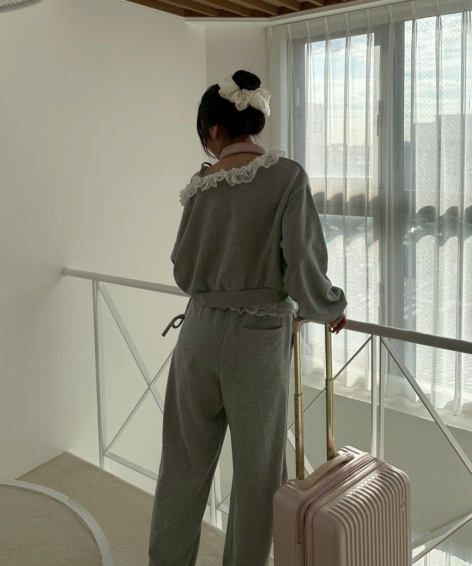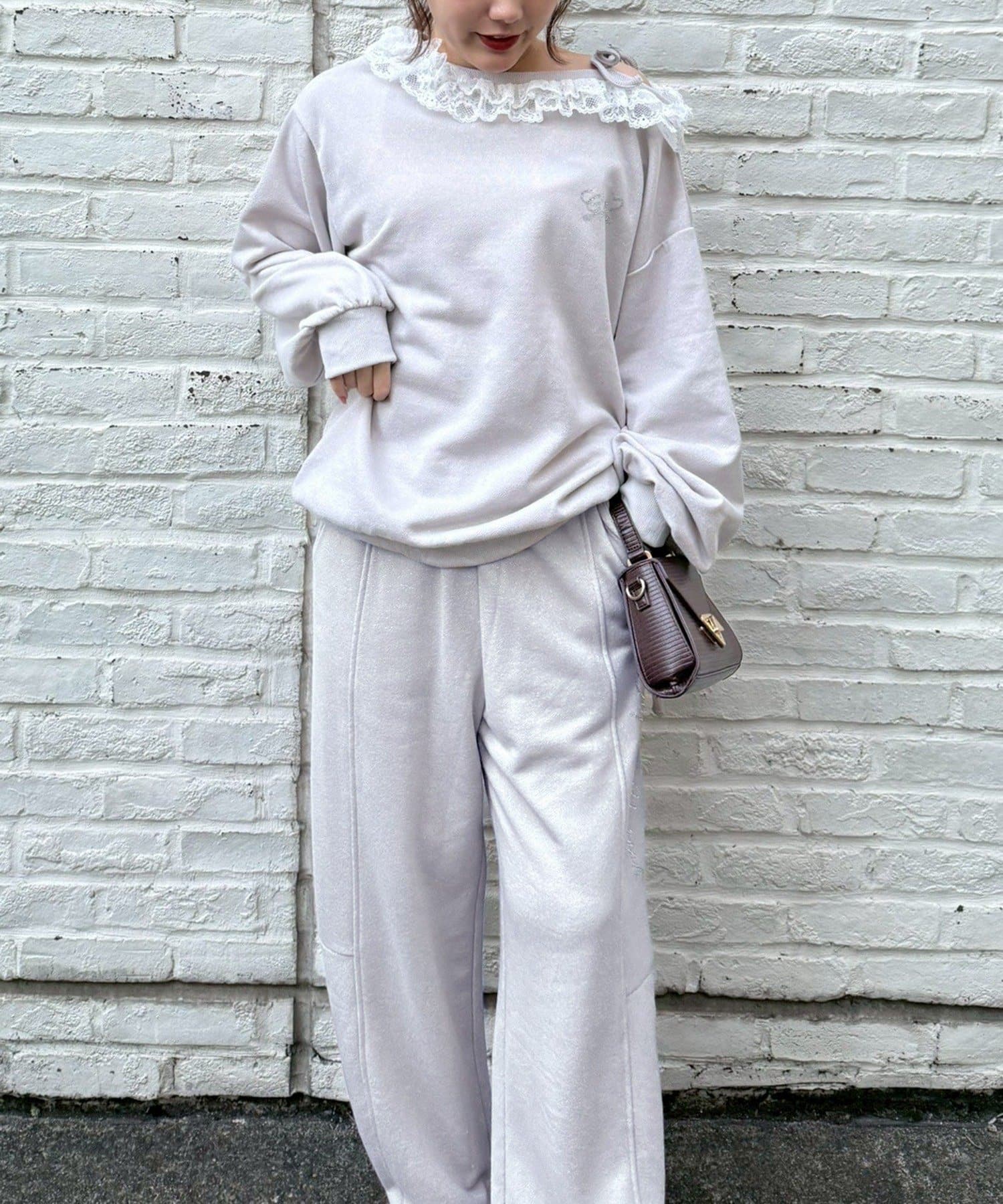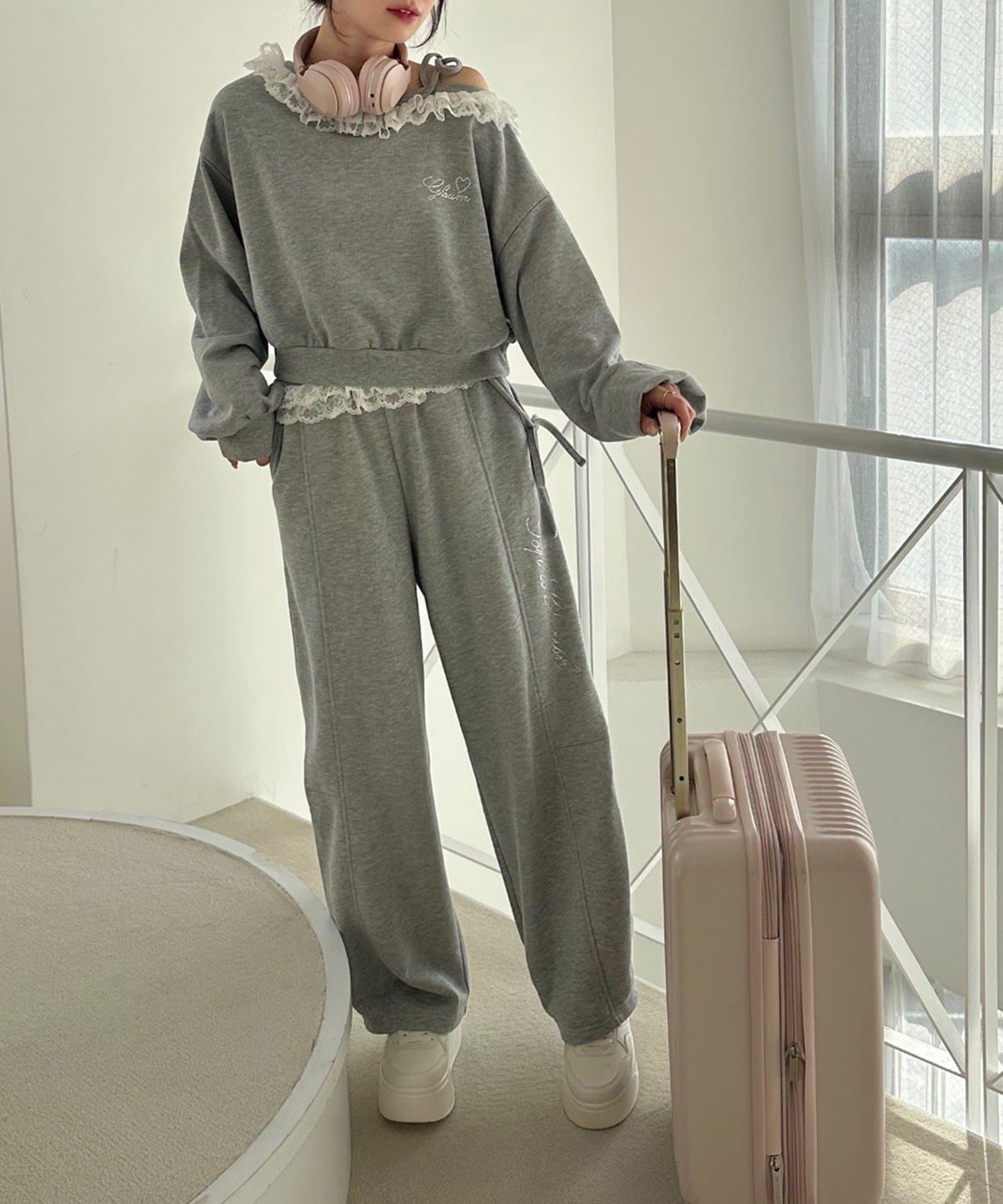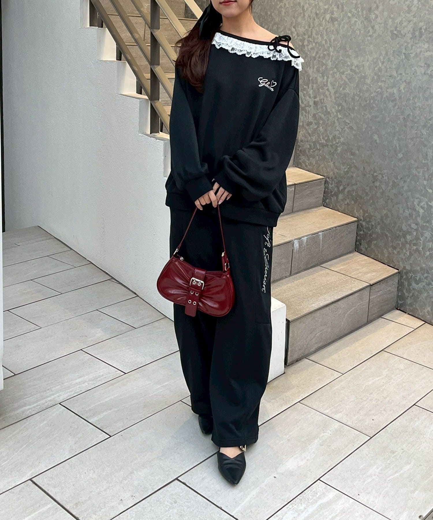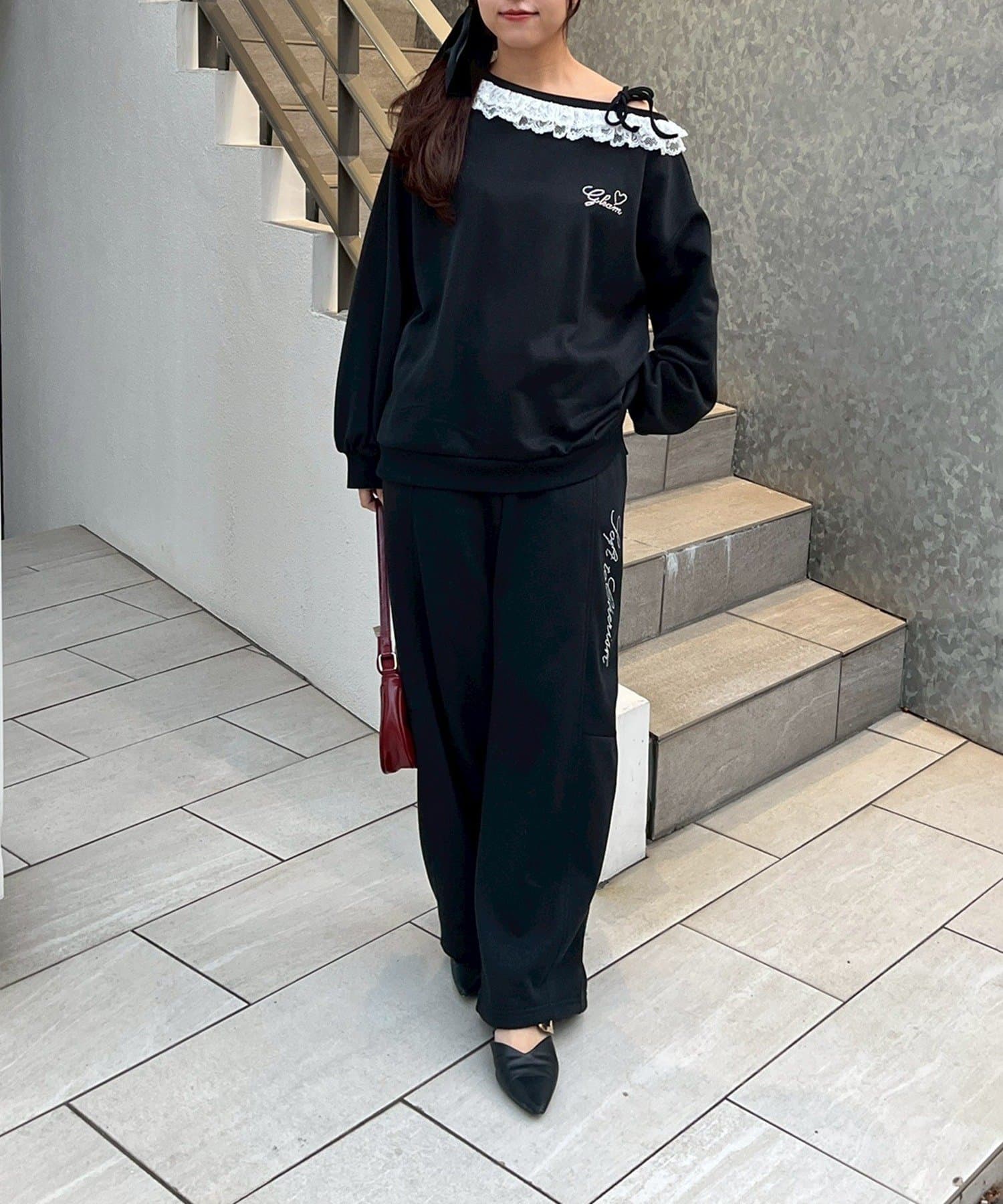 ・ラインストーンがキラキラと輝くスウェットパンツ
