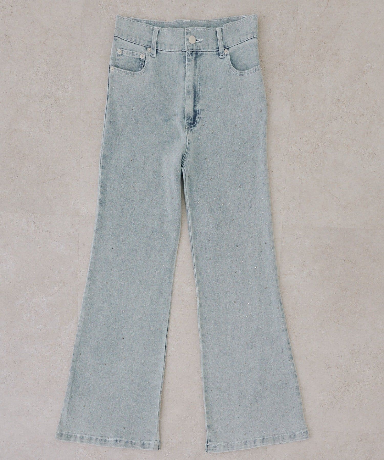 【動くたび、キラキラ輝くストーンが主役】キラキラセミフレアデニム